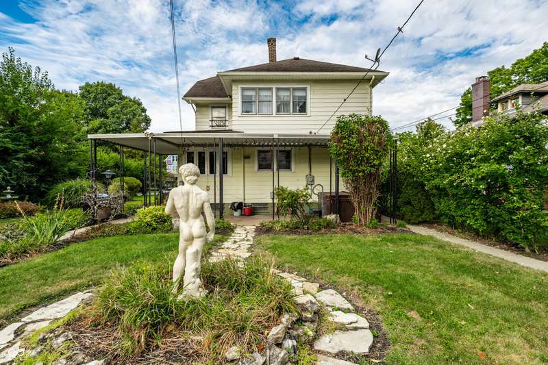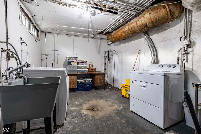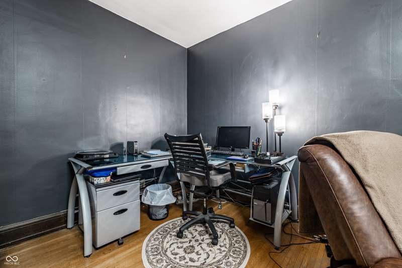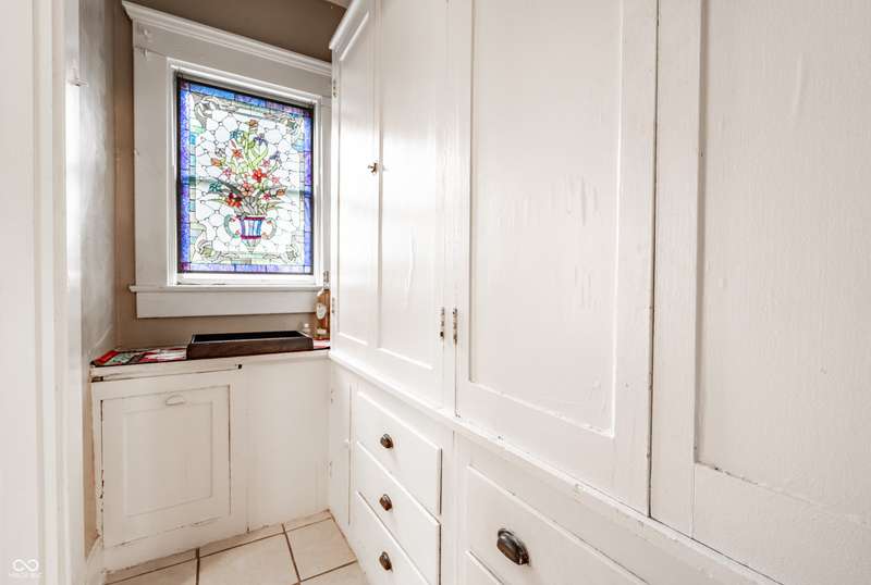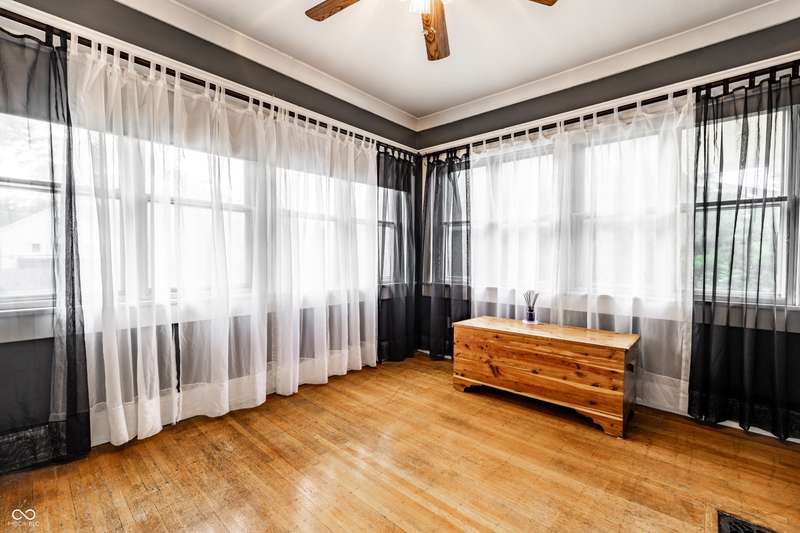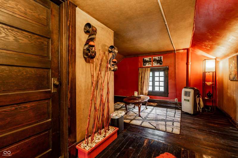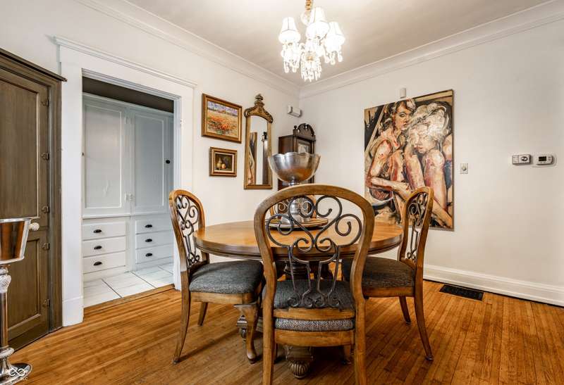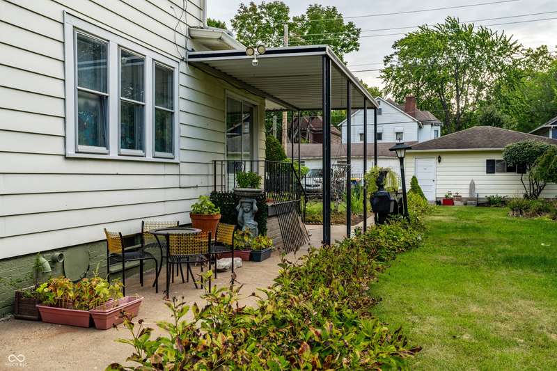 Welcome to Woodruff Place-the first platted subdivision in Indianapolis and one of the city's most beloved neighborhoods! Statuary, magnificent fountains, landscaped esplanades, and towering trees create a timeless setting less than 10 blocks from downtown. This charming residence on a rare double lot blends historic character with thoughtful updates. A glass-enclosed front porch invites you to savor morning coffee or evening wine while taking in the beauty of the neighborhood. Inside, original hardwood floors and period details set the stage. The formal living room is anchored by a striking fireplace flanked by built-in bookshelves, creating a warm, inviting centerpiece. The updated eat-in kitchen is the heart of the home, ideal for everyday living or entertaining. It flows seamlessly to a spacious covered patio overlooking the beautifully landscaped rear and side yards. The main-floor primary suite-a sought-after feature-includes a full bath and a Rookwood tile fireplace for added charm. Upstairs, you'll find three generous bedrooms and a second full bath, along with two staircases for added character and convenience. The third level offers another bedroom plus a versatile family room, studio, or creative space, along with ample storage. The lower level provides even more storage, laundry hook-ups, and a half bath. Completing this exceptional property is a two-car detached garage. As part of a designated historic district under the Indianapolis Historic Preservation Commission, this home offers not only style and space but also a place in one of the city's most treasured neighborhoods.