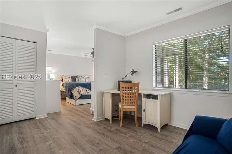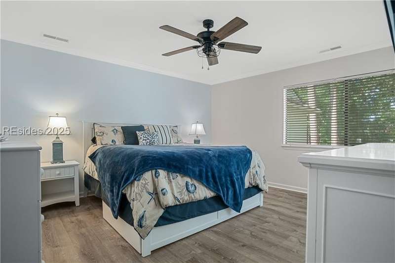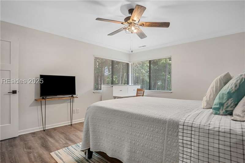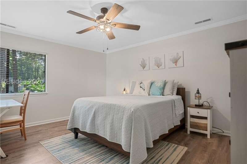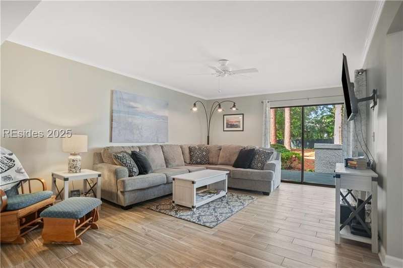 Oversized 2BR villa that lives like a home - room for everyone! This plan has the bonus of an extra room on both floors for added sleeping or "work remote" space. You'll love the updated KT complete w/ new granite, fridge & backsplash, the cozy DR & huge family room. Designer paint throughout plus new LVP upstairs for easy upkeep. Two spacious BR's plus 2 full BT's & laundry on 2nd floor. Tons of windows to take in the lush grounds all around you. Large outdoor space is perfect for entertaining after a round of golf or a day at the beach. The owners have used only as a second home but have done lots of upgrades. Shipyard is a peaceful community located at the south end of the Island. Residents enjoy 27 holes of golf, tennis, picturesque walking trails, a premier spa and wellness facility and of course the star of the show--- our world-famous beaches.