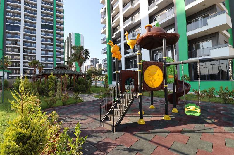 The apartments for sale in Mersin, Turkey are located 200 m from the nearest supermarket, 400 m from a pharmacy, 800 m from a hospital, 900 m from a school, 1.3 km from bus stops, 1.5 km from the beach, 6.5 km from the highway connection road, 9 km from Mersin Marina, and 9 km from Sayapark Shopping Mall, 10 km from Mersin Forum Shopping Mall, 15 km from Mersin High-Speed Train Station, and 80 km from Cukurova International Airport.