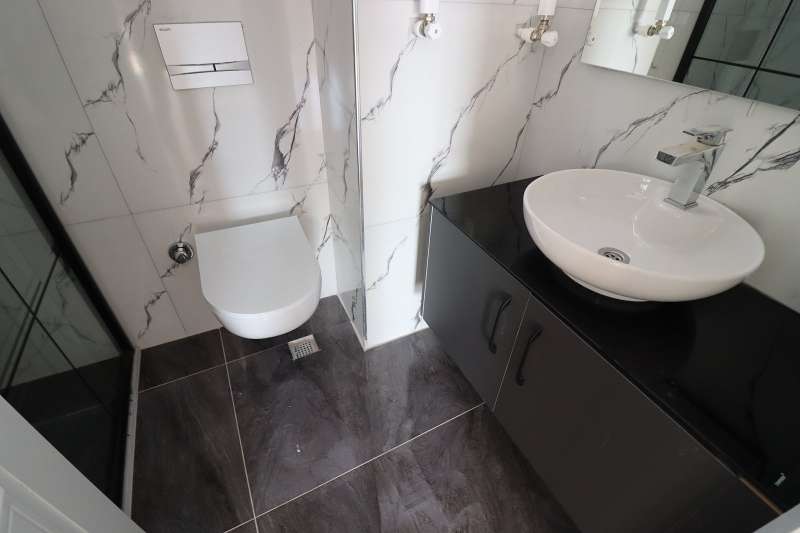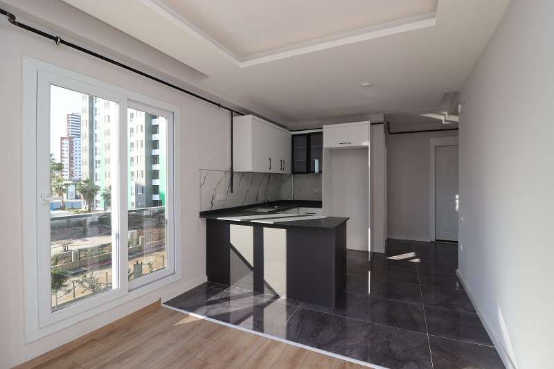 The apartments in Mersin come with ceiling floors, hallway coat racks, shower cabins, double-glazed PVC windows, satellite TVs, and balconies.