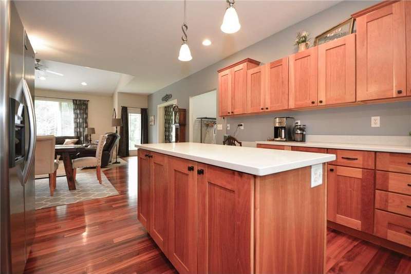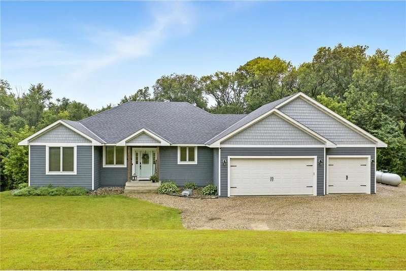 Welcome to this beautifully maintained home offering four bedrooms and three bathrooms on 1.18 private acres! Nestled in a serene country setting yet conveniently close to town, this property combines peaceful living with modern comforts. The one-story layout with a full walkout basement provides both functionality and flexibility, while thoughtful updates throughout make this home truly move-in ready. A spacious foyer opens to an inviting, open-concept dining and kitchen area. The vaulted ceilings, Tigerwood hardwood flooring, and abundant natural light create a warm and welcoming atmosphere! The kitchen is a true highlight, featuring hickory cabinets, a walk-in pantry, a center island, and a built-in desk, along with newly installed quartz countertops, sink, and faucet. A sunroom just off the living room offers additional gathering space, with potential to expand onto a deck overlooking the backyard. The main level includes two bedrooms, including a private primary suite with a large walk-in closet, jetted tub, and walk-in shower. An additional full bathroom, laundry/mudroom with quartz countertop, and Andersen windows with new blinds complete the main floor. The lower level expands the living space with a large family room (plumbed for a wet bar), two additional bedrooms – one with French-style doors and a walk-in closet, and another ¾ bath. An additional unfinished room offers equity potential for a future office or hobby space, plus excellent storage in the mechanical room and under the stairs! Outdoor living is equally impressive, with well-kept landscaping, added patio space (2020), and a private backyard setting. The 3-car attached garage, LP® SmartSide® siding (painted in 2022), and an updated roof (2023) ensure durability and curb appeal! Modern mechanicals add peace of mind, with a new furnace/AC (2025), water softener (2023), LG washer/dryer, and a compliant septic system with drain field. The home also includes fiber optic internet, 200-amp service, radon mitigation system, and an air-to-air exchanger. Located in the Dassel-Cokato school district, this home is close to parks, schools, retail, and just 56 miles from the Twin Cities. A one-year home warranty is included for added assurance! Available only due to relocation, this property offers a fantastic opportunity to enjoy the best of country living with convenience!