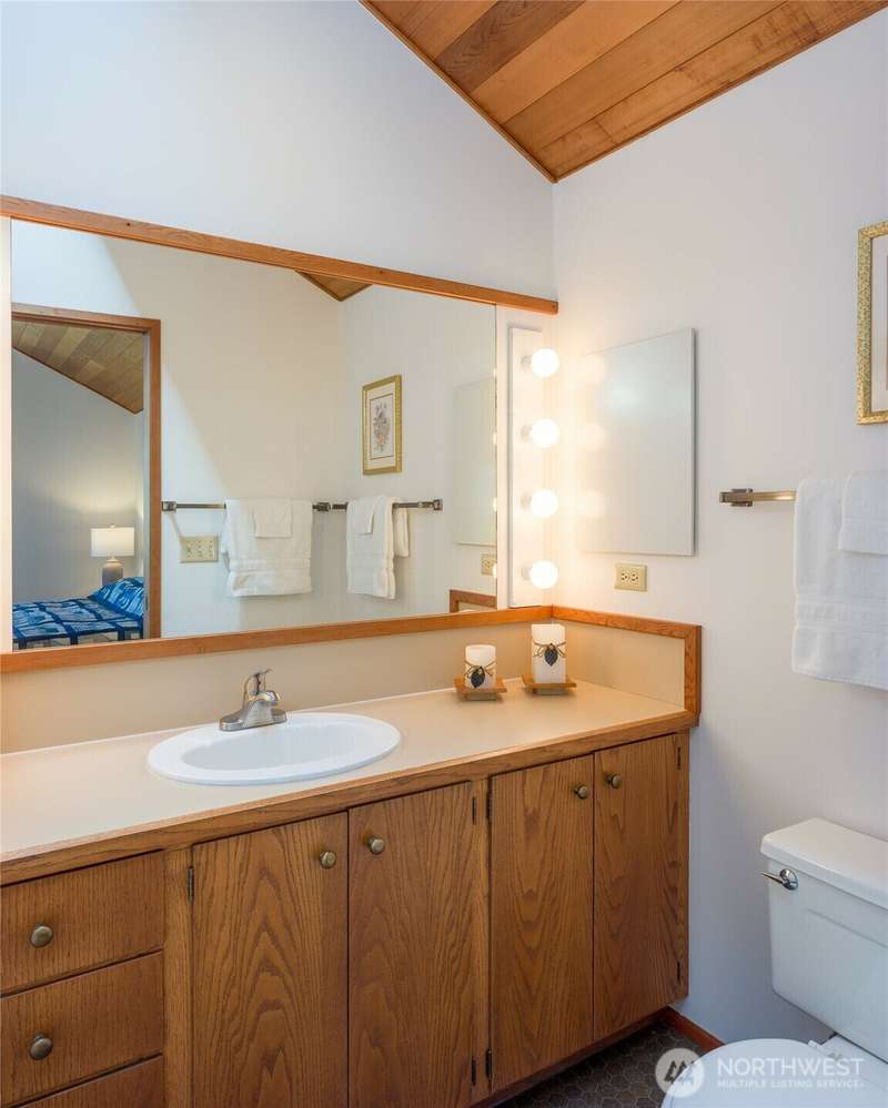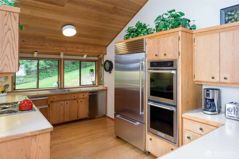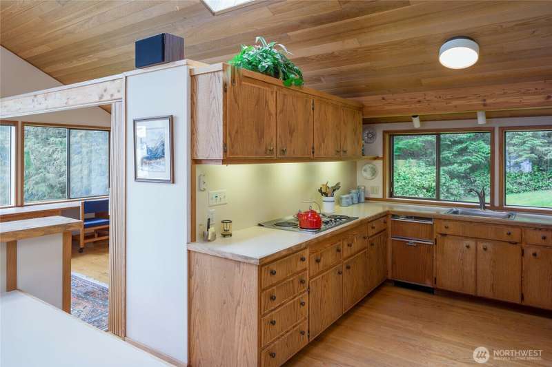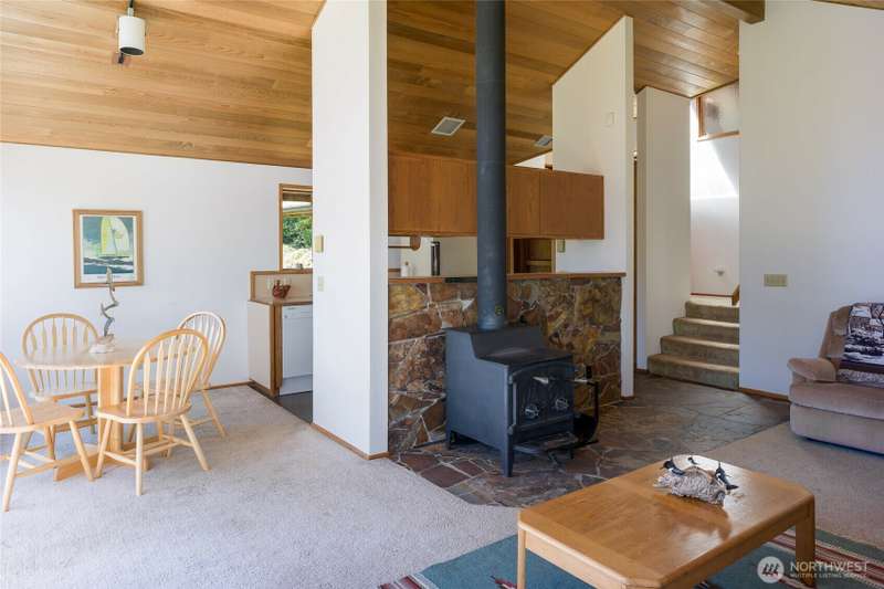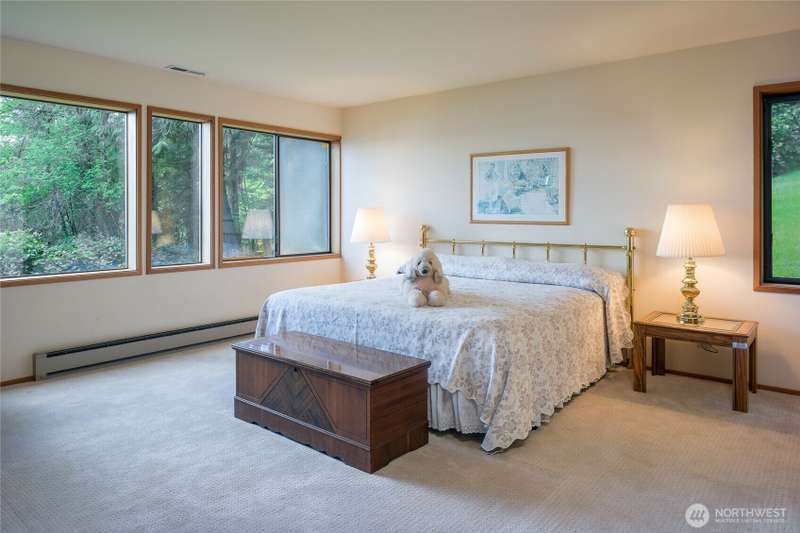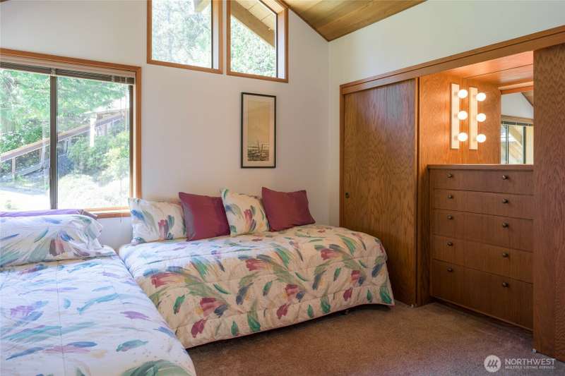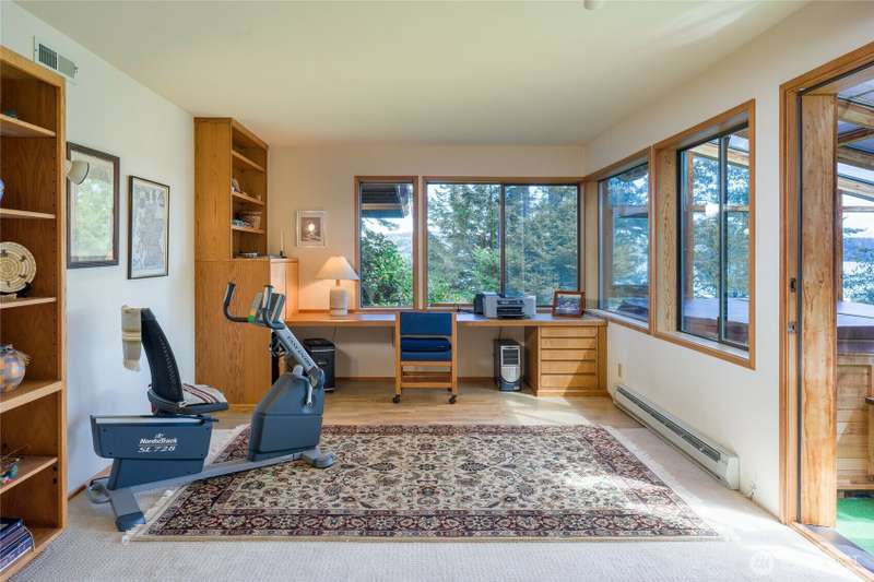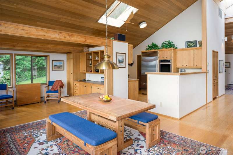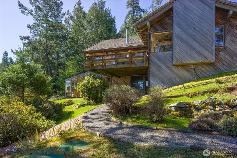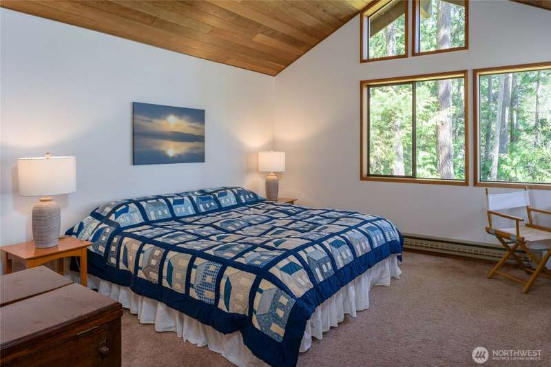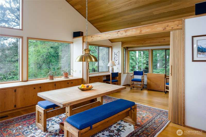 Generational Living At It's Best with 2 houses on 440+ feet of waterfront with deep water dock share & buoy. Vaulted ceilings, clear fir trim, oak floors, tons of built-ins, 2 woodstoves & flexible spaces. Downstairs spacious primary suite with office & hot tub room. Both houses have view decks with enviable panoramas to wile away an afternoon. Second home has 2 bedrooms & 2 baths. Detached 2 car garage with separate shop & wood storage. 17+ acres incl terraced waterfront, rocky outcrops, mature woods & sunny pasture. Set on 3 separate tax parcels which adds to future flexibility. Close to Lopez Hill trails.