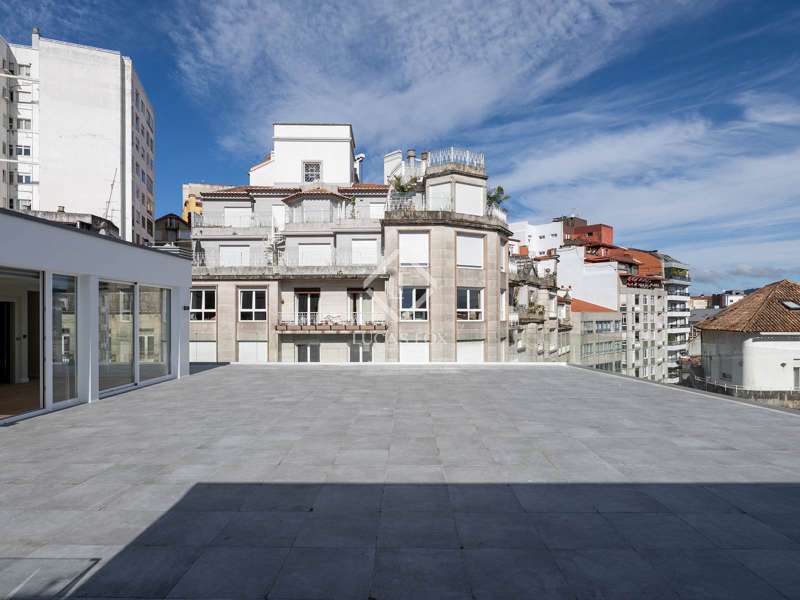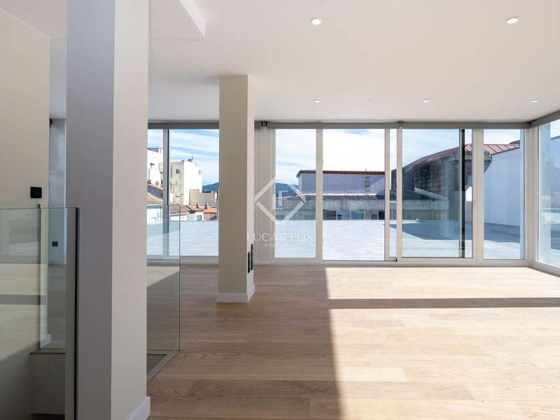 Discover an extraordinary opportunity to own a luxurious duplex apartment with an amazing terrace, presented by Lucas Fox. This exquisite third floor property boasts 186 square metres of beautifully designed space, epitomizing contemporary elegance and sophisticated living. It has an unusually large terrace measuring 273 square metres overlooking the city of Vigo. The property is distributed over two levels with the night area on the first level. Upon entering the apartment, we find a long corridor connecting three spacious bedrooms. The main bedroom with its ample bathroom and walk-in wardrobe, offers a perfect blend of modern design and premium materials. It has an adjacent room that can be used as an office. The floor-to-ceiling windows flood the entire space with natural light, accentuating the warmth of the wooden floors that stretch throughout the property. The high ceilings and clean lines of the design further enhance the feeling of spaciousness and luxury. A long balcony can be accessed from all three bedrooms. At the end of the corridor, we use a set of beautiful stairs or alternatively, we can take the lift to get to the top floor where we find the day area. The state-of-the-art kitchen, fully equipped with the best appliances, blends effortlessly with the living and dining area. From here we can step outside into an ample terrace measuring almost 300 square metres with views of the city and the surrounding landscape. Located in the heart of Vigo, this exclusive apartment offers unparalleled access to the city’s finest amenities, including gourmet restaurants, high-end shopping, and cultural landmarks. This property is not just a home; it is a lifestyle, offering the perfect balance of luxury, comfort, and urban living. Contact Lucas Fox for further details.