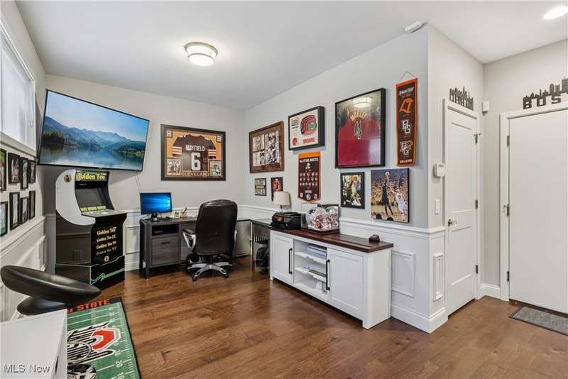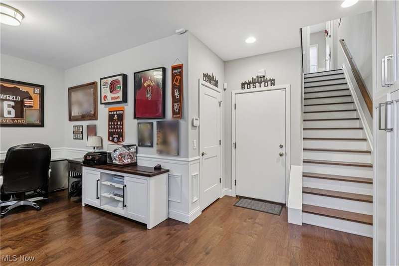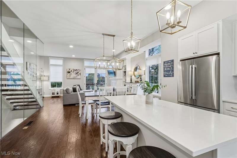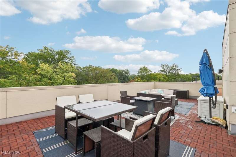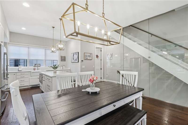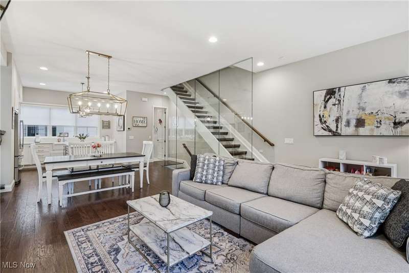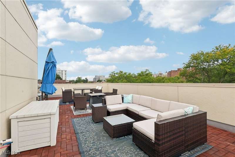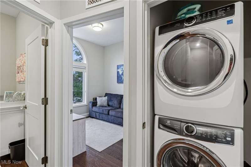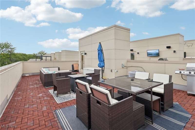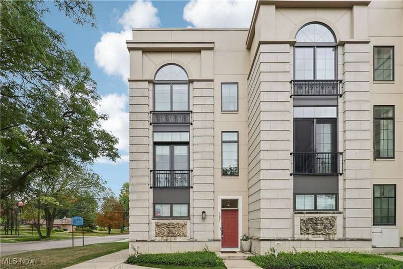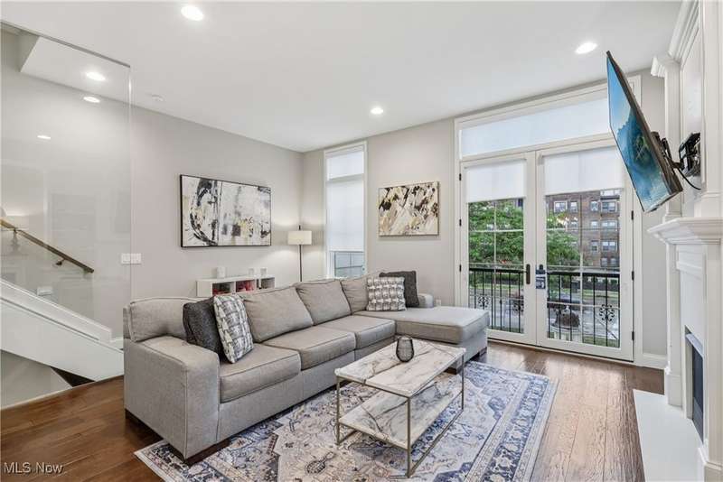 Spectacular corner townhome in the Edgewater neighborhood with many upgrades, ten-foot high ceilings on every level, and a tax abatement until 2034! The first floor entry has a built-in hall tree with cabinets and a bench, a large study/den area, and access to the two-car attached garage. The main floor has an open floorplan, a stunning floor to ceiling glass stairway wall and floating staircase, a kitchen with quartz counters, an island and breakfast bar, and high-end appliances. A large dining area, a full bathroom, and a large living area with a fireplace, oversized windows, and custom blinds finish off the main floor. The third floor offers a primary living suite with a walk-in closet and full bathroom, two additional bedrooms, an additional full bath, and a laundry closet. The fourth floor rooftop patio provides spectacular views of the city as well as the occasional airshow flyovers! Close to so much including Edgewater Park, The Shoppes on Clifton, and many restaurants, bars and other retail shops.