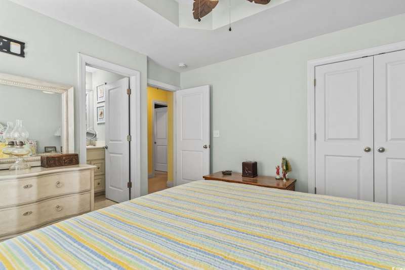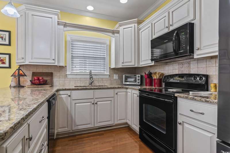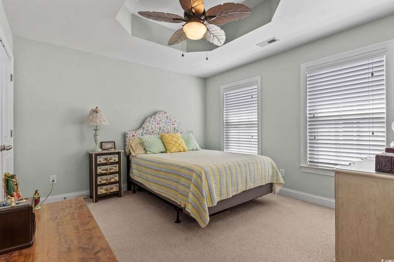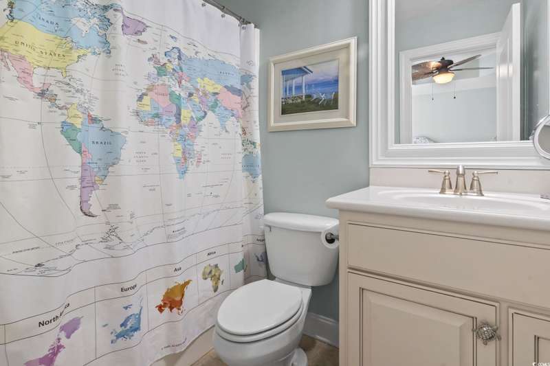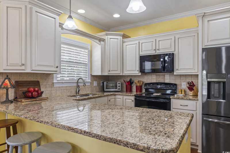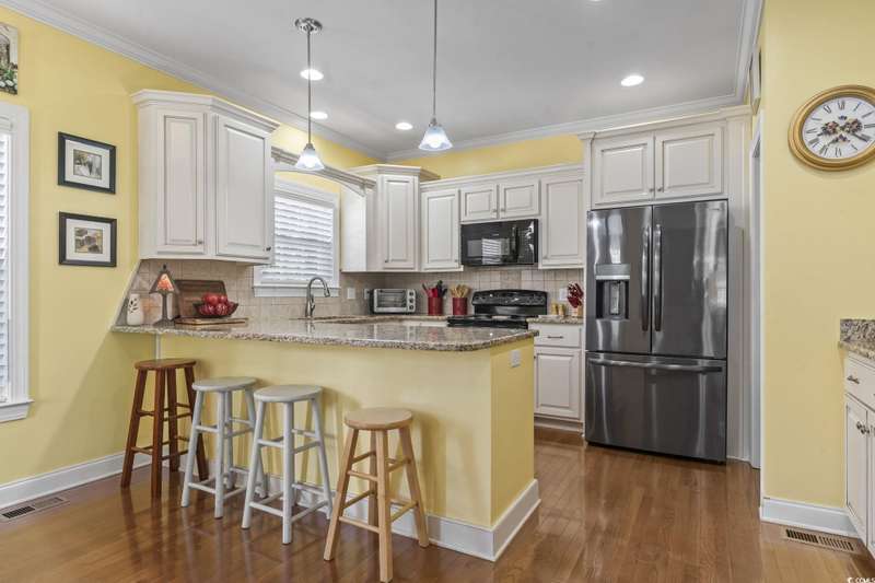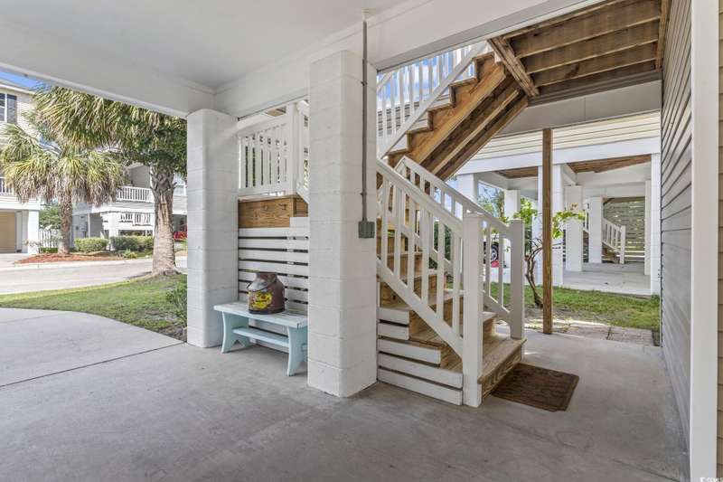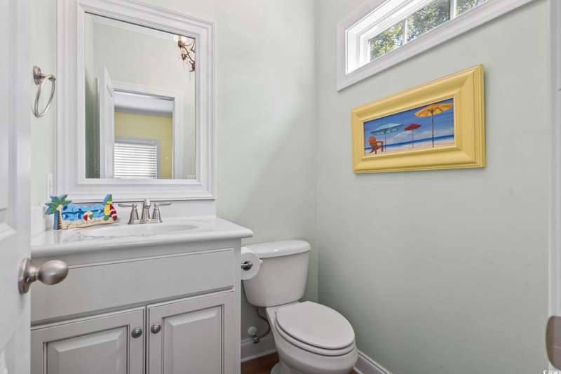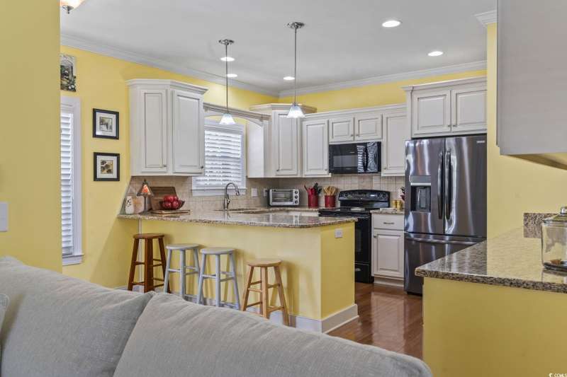Location, Lifestyle, and Laid-Back Coastal Living! This beautifully maintained raised beach house sits east of Hwy 17 Business—just one mile or a 2-minute golf cart ride to the beach, Surfside Pier, and local festivals! Featuring 3 spacious bedrooms, each with its own private bath, plus a convenient half bath on the main level, this home blends comfort and function with coastal flair. The open-concept living area showcases engineered hardwood floors and a gourmet kitchen with upgraded granite counters, walk-in pantry, and a butler’s pantry for extra prep and storage space. Relax or entertain on the screened-in porch with sunshades, or enjoy the covered space under the home—perfect for outdoor gatherings and beach-day storage. The primary suite is oversized with a tray ceiling and ample room for a sitting area. Located in a quiet, 10-home community with a sparkling pool, this property is being offered fully furnished (excluding select personal décor/items). No short-term rentals allowed, preserving the peaceful neighborhood feel. Whether you’re seeking a full-time coastal residence or a serene second home, this Surfside Beach gem offers the best of beach living—comfort, quality, and convenience just moments from the sand!