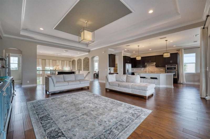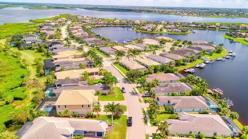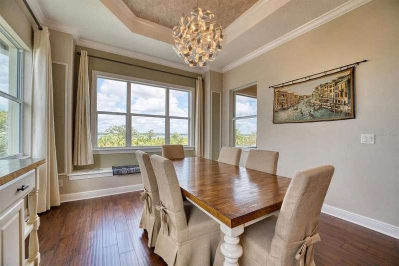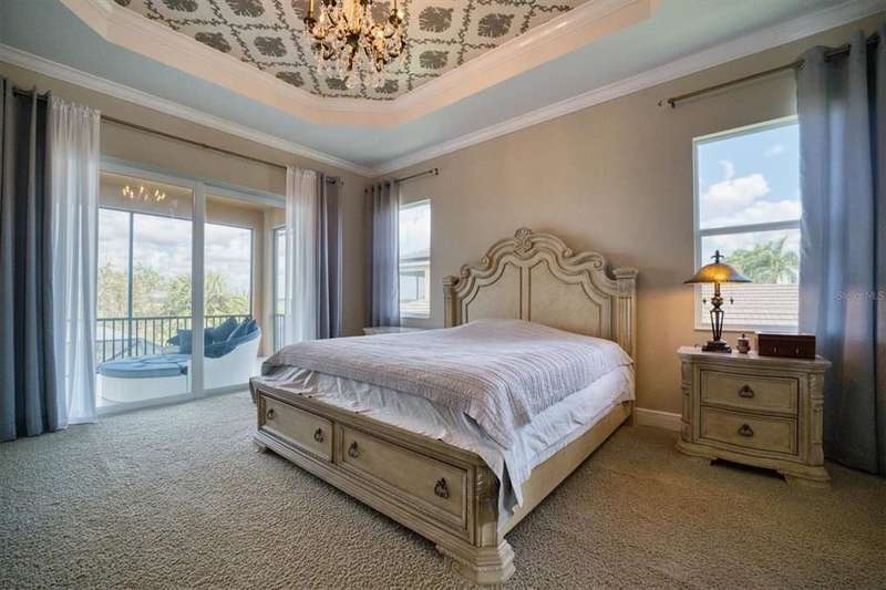 Spectacular coastal RIVERFRONT ESTATE commands endless water views. This gorgeous Savannah offers a modern spin on split-level living with stunning dual entry staircases opening up to a spacious foyer. The first level is perfect for a multi-gen family with 2 bedrooms, 2 bathrooms, and living area. Step through the sliders to one of the largest pools and lanais in the neighborhood. This massive 45x50ft, outdoor paradise space has new screens, outdoor kitchen hook-ups, and a huge 22x30ft cloud shaped, heated, pool with spa for entertaining all your loved ones. Also on the lower level, a laundry room with storage space and a 3-car split garage. Second level offers breathtaking river views of glistening water from every room that will 'WOW you. The open and inviting great room with tray ceiling and crown molding throughout has large sliders bring in natural light and leading to a second screened in lanai. Adjacent from the living room, a professional chef's kitchen with new refrigerator, SS appliances, gas cooktop, wall oven, oversized walk-in Butlers pantry, and granite island. Enjoy glorious mornings, breathtaking evenings, tropical breezes, manatees, dolphins & boats from this breathtaking vantage point. Around the corner, you enter a large office with built in bookshelves and large windows offering plenty of natural light. On the other side of the second level is the primary suite with walk-in closets and bathroom that includes large walk-in shower, water closet, and garden tub. This home is full of quality craftsmanship, fine finishes, and 2 new (2024) high efficiency A/Cs. Tidewater Preserve offers maintenance free resort-style living, a private marina, 2 clubhouses, resort-style pool, fitness center, community room w/kitchen, grill area, playground, dog park, canoe & kayak launch w/storage, and a full-time lifestyle director. Low HOA fees, NO CDD fee, and near world class beaches, shopping, and fine dining. Make your appointment to see this amazing home today!