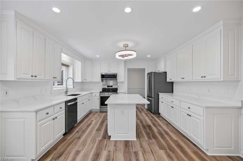Spacious 5BR/3BA all brick home in the highly sought-after Cheshire Forest neighborhood! Bright, open floor plan with a stunning 2-story family room. Numerous 2025 updates include a remodeled primary bath with large walk-in shower and double vanity, updated baths throughout and a refreshed kitchen featuring refaced cabinets, quartz countertops, new stainless sink and stainless appliances. Quartz countertops also in the primary and first-floor baths. Whole-house custom paint, new LVP flooring on the 1st floor and new carpet upstairs. Roof replaced in 2018; all windows replaced in 2015. HOA amenities include pool, clubhouse, tennis courts, sand volleyball, playgrounds, and scenic parks. Conveniently located in the Great Bridge area of Chesapeake. TURN KEY READY!