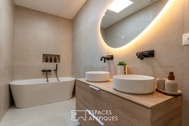 Perfectly optimized and functional, a hallway distributes two bedrooms, a magnificent bathroom and a laundry room with its access to the garage. A third bedroom and a master suite with its dressing room and its bathroom, tastefully designed, complete this property and perfect this refined ensemble.
