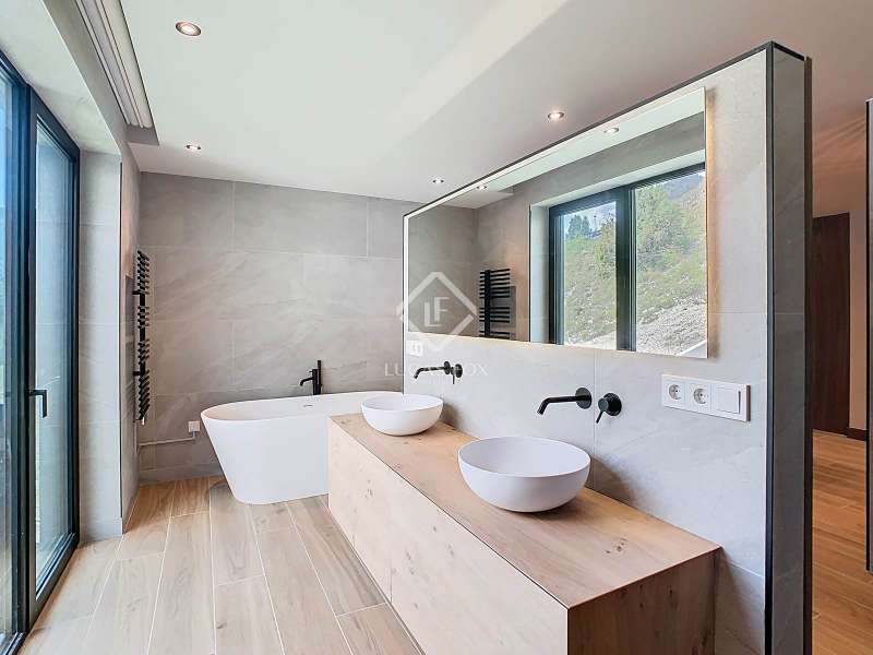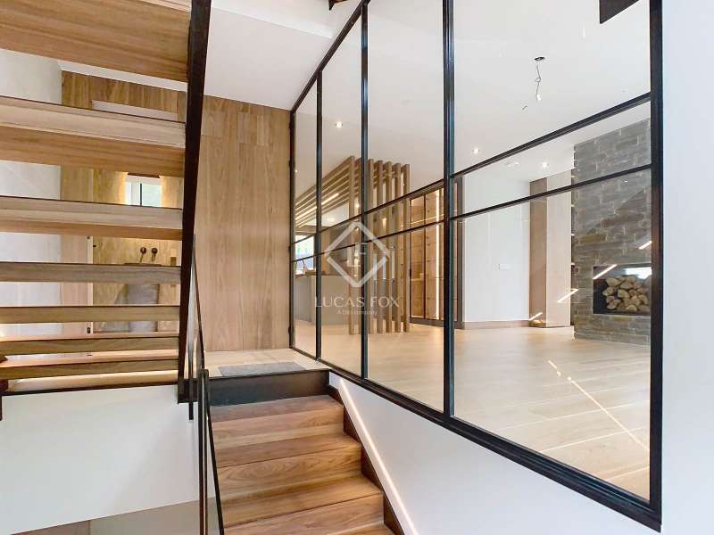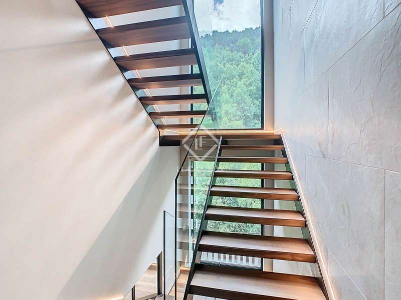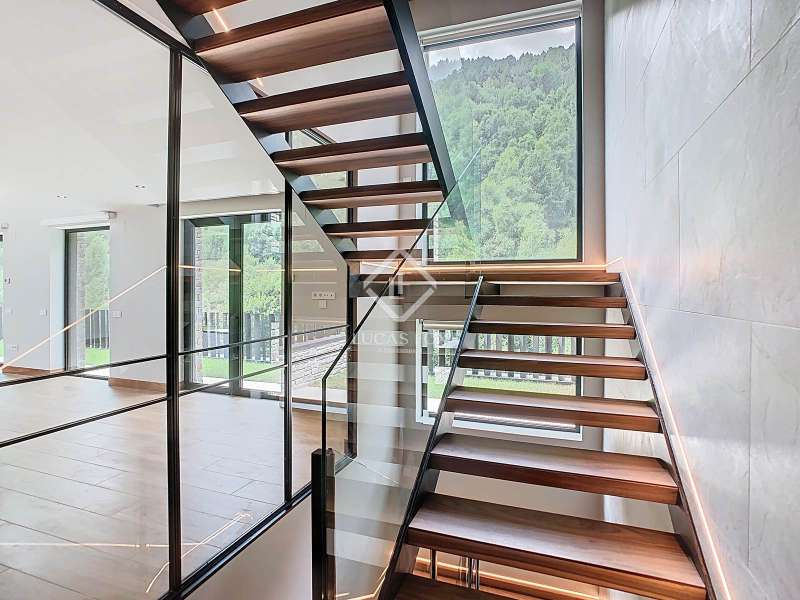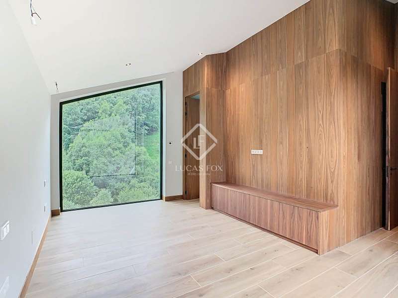 Lucas Fox presents this exclusive detached house with exceptional design, features, and location for sale in Pal, Andorra. The property has a constructed area of 429 m², with a 177 m² private garden surrounding three of its four facades, allowing for sunny outdoor spaces. We enter the property through a spacious entrance hall that connects directly to the private garage, which can accommodate five cars. At one end of the garage is the 28 m² wellness area, which includes an integrated gym, a dry sauna, and a full bathroom . From this same entrance hall, there is also access to a large utility room area. The property has a private elevator and interior stairs that connect the four floors. On the first floor is the day area, an open-plan space that integrates the kitchen, dining room , and living room, with direct access to the garden. The kitchen is fully equipped with semi-professional appliances from the prestigious Steel brand, two separate pantries, two refrigerators, and a central island with a breakfast bar. The living-dining room stands out for its high ceilings and natural light thanks to the large, two-way windows. It also features a designer fireplace . There is also a guest toilet on this floor . The second floor houses the main bedroom , featuring a spacious dressing room with built-in wardrobes , integrated LED lighting, and a custom-made central shoe rack. To one side of the dressing room is the bedroom area, with a large window overlooking the landscape. On the other side, there is an elegant private bathroom bathroom with abundant natural light, equipped with a bathtub, separate shower, double sink, and high-quality finishes. The third and top floor houses three double bedrooms, all with built-in wardrobes and plenty of natural light. Two of these bedrooms have private bathroom. One of the bathrooms is access from the hall, so it could be shared with the third bedroom. The entire house is equipped with a underfloor heating system with hot/cold air conditioning, ensuring maximum comfort year-round. Don't miss the opportunity to visit this exclusive property. Contact us for more information or to arrange a viewing.
