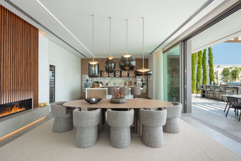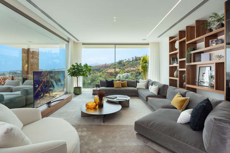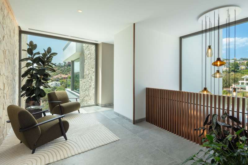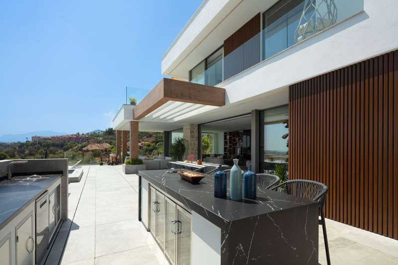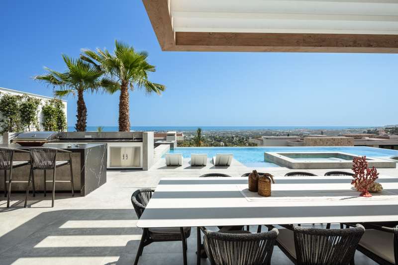 The Hills, El Herrojo, La Quinta. Located majestically in the hills of La Quinta, within the prestigious and secure gated community of The Hills, "Big Daddy" stands as a modern architectural masterpiece that embodies the pinnacle of luxury living. The design and construction of the villa have been executed with unparalleled attention to detail and an unwavering commitment to excellence, ensuring that every aspect of this property exudes opulence and sophistication. One of the most captivating features of this exceptional villa is the breathtaking panoramic views it offers, stretching from the Mediterranean Sea to the picturesque African coast. From the moment you set foot on the property, you are greeted with incredible views that extend beyond the horizon. Big Daddy's contemporary design encompasses spacious and open areas, seamlessly blending the interior with the exterior. The centerpiece is a stunning infinity pool that appears to merge with the surrounding landscap