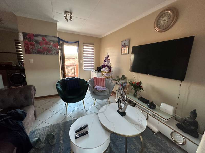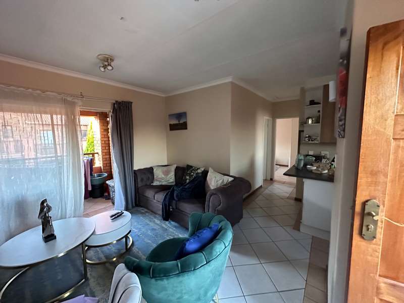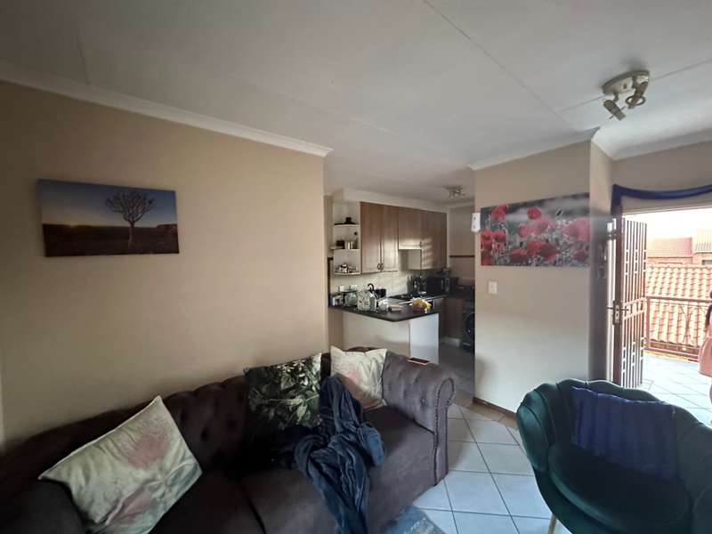Excellent value for money! This townhouse includes: 2 large bedrooms and a full bathroom with bath and shower, A Large open-plan kitchen, Dining and lounge area that goes out onto a balcony, that can be closed of as an extra room or study and a lock-up garage. This Estate has the Best security, 24hour patrolled in complex , electric fencing and Double access controlled, only with owners permission. Beautiful green park and walkways, Braai, Clubhouse ,tennis, Pool and Soccer-field, go for a walk or exercise within the Estate. This is the perfect long term investment and hard to come by. Make an appointment now to view, remember when you snooze you loose....