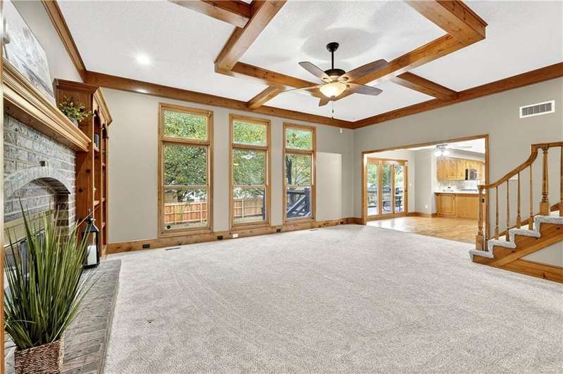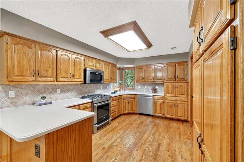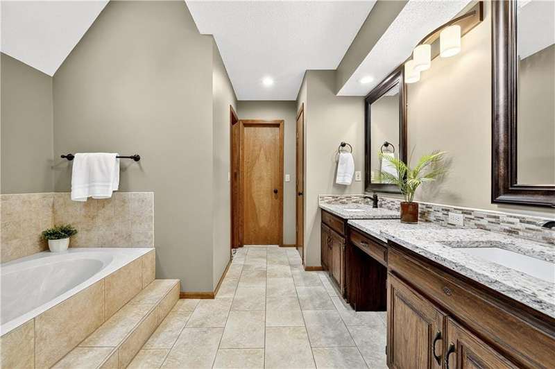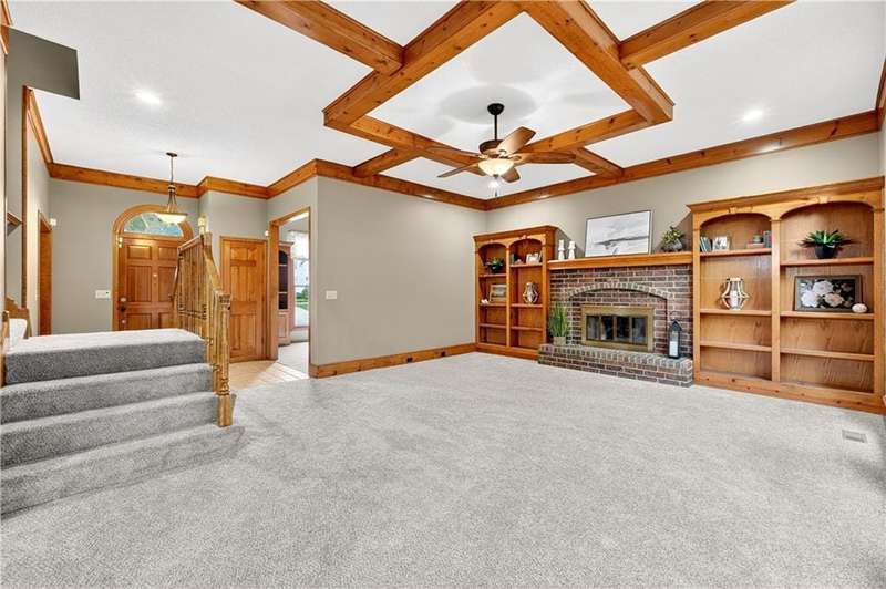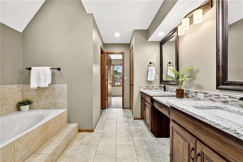 Welcome to this beautifully maintained 2-story home in the desirable Homestead subdivision offering over 3,500 sq ft with 5 bedrooms, 3 full baths, 2 half baths, and a 3-car garage with epoxy floors and an extra-deep bay. Sitting on a level 12,355 sq ft lot, the home features a fully fenced backyard, storage shed, sprinkler system, newly stained deck, and a covered walk-out/walk-up patio - perfect for outdoor living. Inside, you'll find new carpet throughout the main and upper levels, a formal dining room, private office with built-ins, and a spacious living room with brick fireplace, exposed beam ceiling, and wall of windows overlooking the yard. The kitchen offers hardwood floors, wood cabinets, stainless steel appliances including a gas range, tile backsplash, and easy access to dining, laundry, garage, and deck. The primary suite boasts vaulted ceilings, walk-in closet, dual granite vanities, whirlpool tub, walk-in shower, skylight, and updated fixtures. Secondary bedrooms include ensuite and Jack & Jill bath access, plus a loft with built-ins. The finished lower level provides new LVT flooring, a rec room with wet bar, 5th bedroom, half bath, and walk-out to the covered patio. Updates include newer lighting, partial driveway replacement, and central vac. Conveniently located near highway access, shopping, schools, and dining, this home blends space, comfort, and prime location.