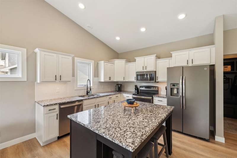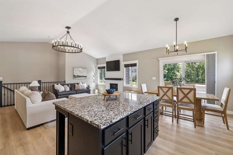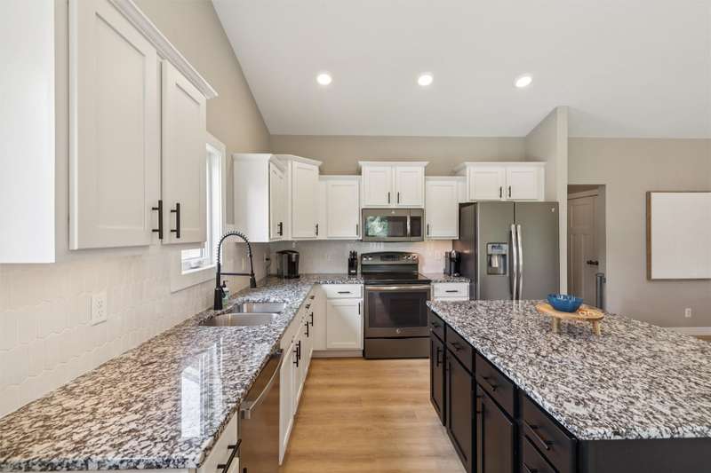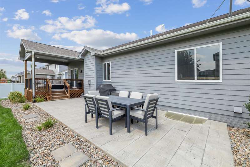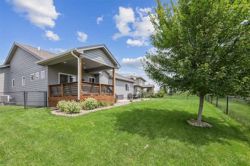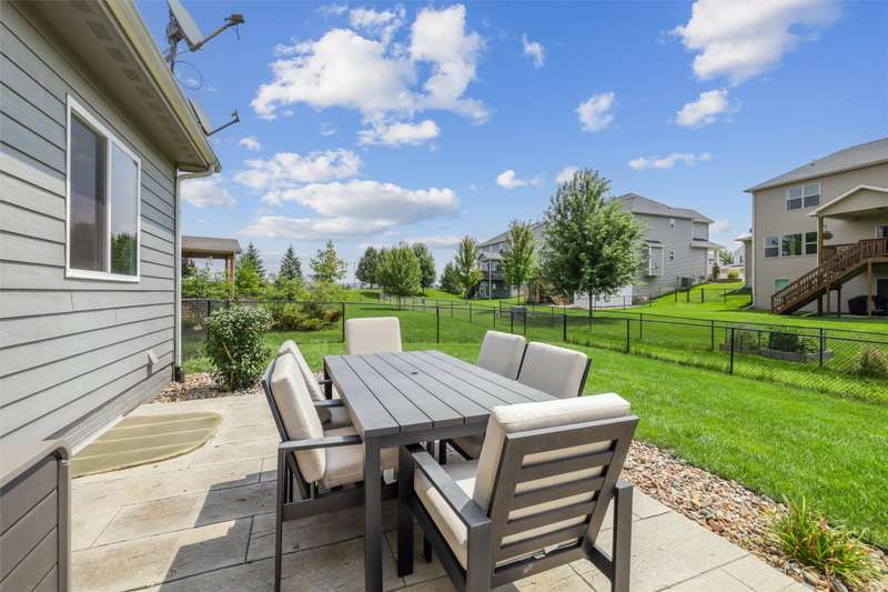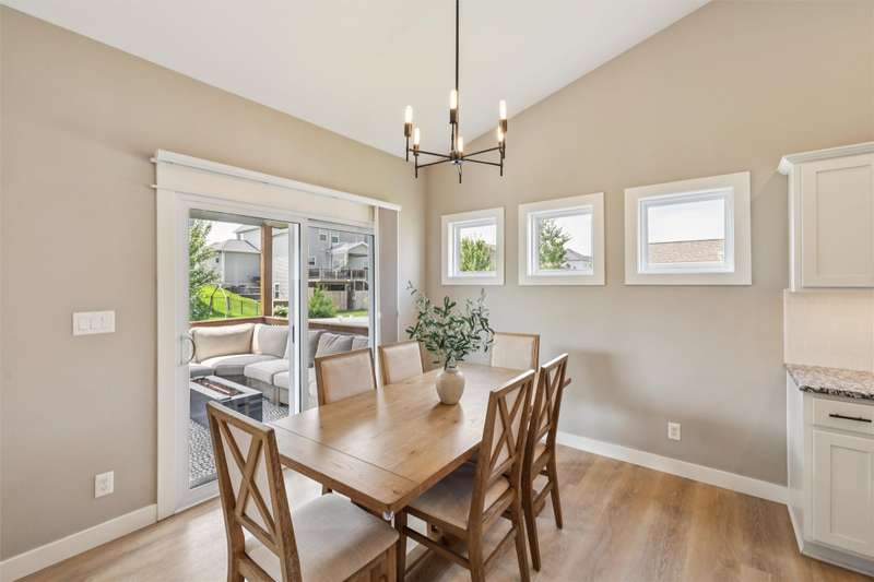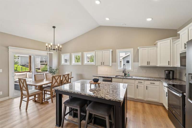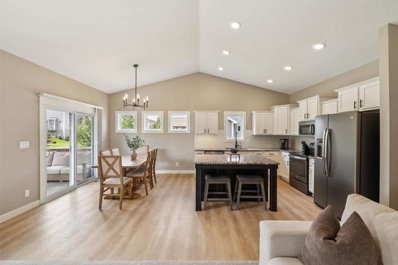 This beautiful ranch home blends modern updates with relaxed, comfortable livingall in a prime location within walking distance to Trails, Park and School. Fabulous curb appeal welcomes you with a charming front porch & wide walkway. Inside, vaulted ceilings and an open floorplan create a bright, inviting atmosphere perfect for everyday life and nearly 2350 sq ft to enjoy. Fabulous new wood floors flow through the main living, kitchen, and dining areas. The spacious kitchen features a center island, updated backsplash, generous storage, and pantry. The large living room impresses with a remodeled fireplaceideal for entertaining or cozy nights in. Enjoy meals in the spacious dining area with sliders that open to a fenced backyard, covered deck, and stamped concrete patio great for summer fun or a quiet summer night. The primary suite showcases a custom accent wall with sconce lighting, walk-in closet, bath with walk-in shower and dual vanities. 2 additional bedrooms and a full bath complete the main level. The lower level finish offers the perfect hangout space-whether its movie night, game day, or just relaxing with family and friends + complete with a one-of-a-kind Speakeasy room! Additional highlights include first-floor laundry, mudroom, and a location close to Waukee's best amenities. Move-in ready and filled with charm!