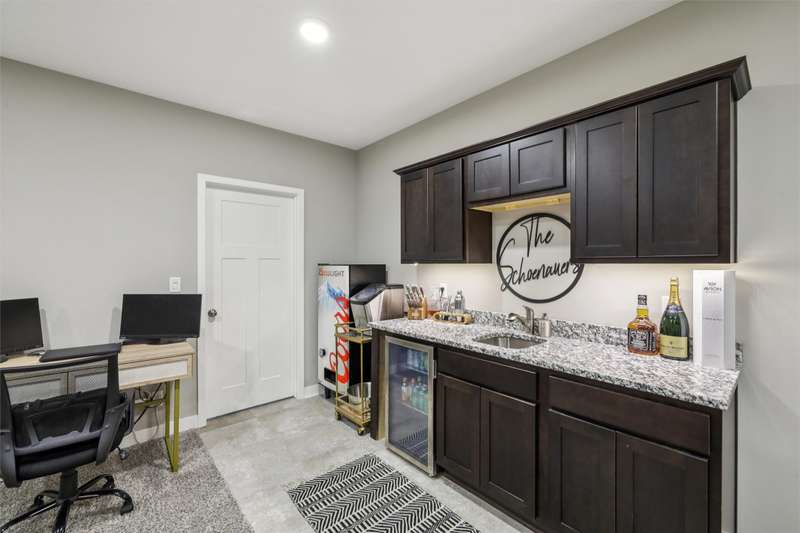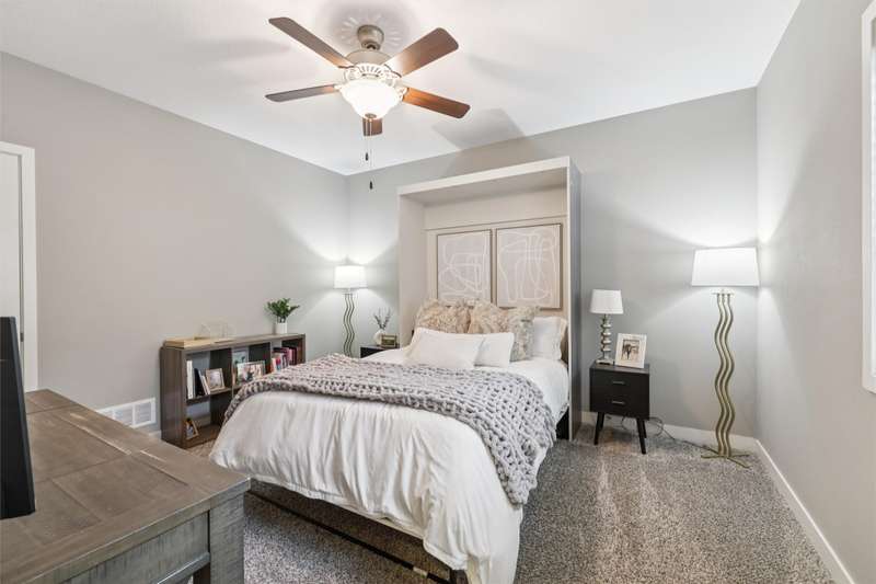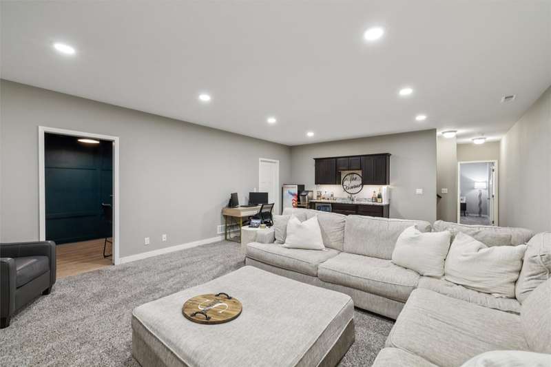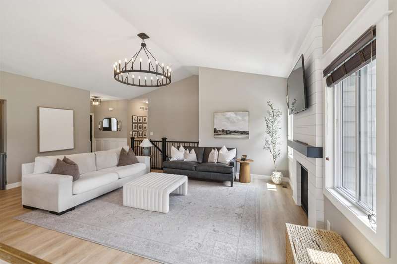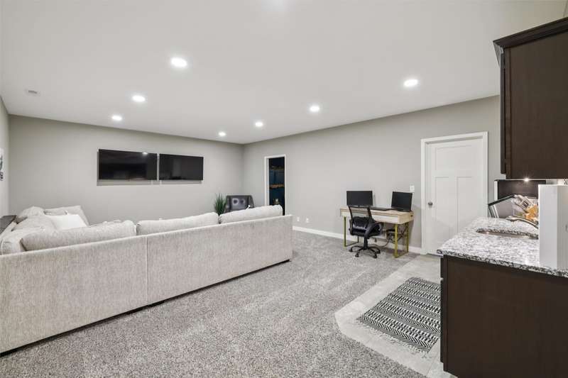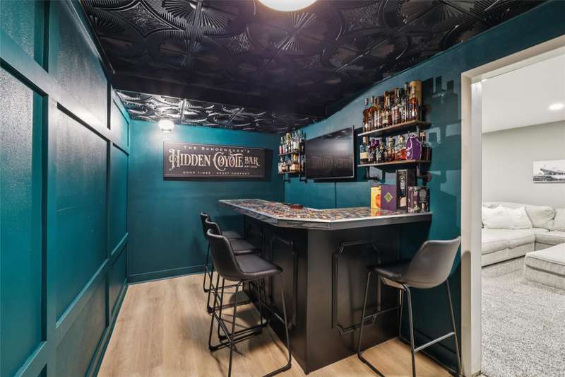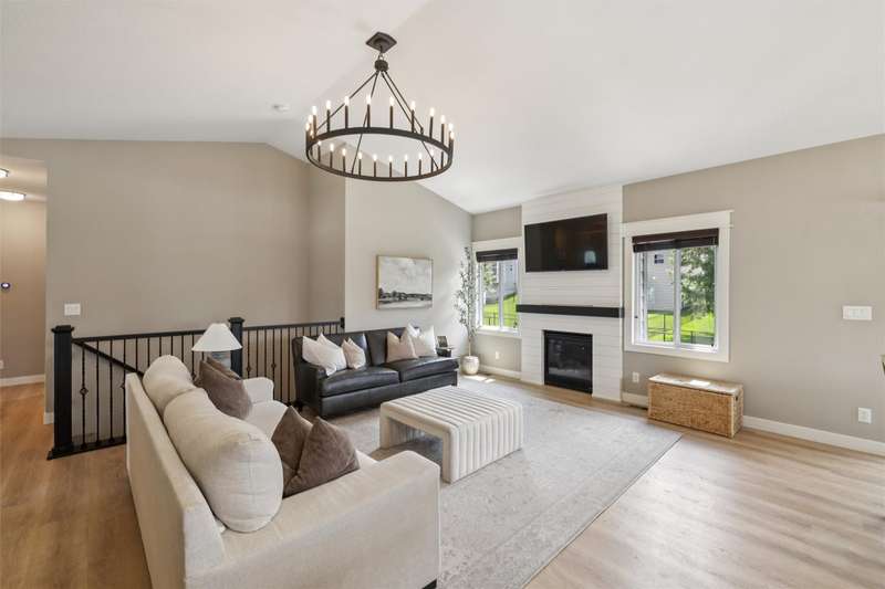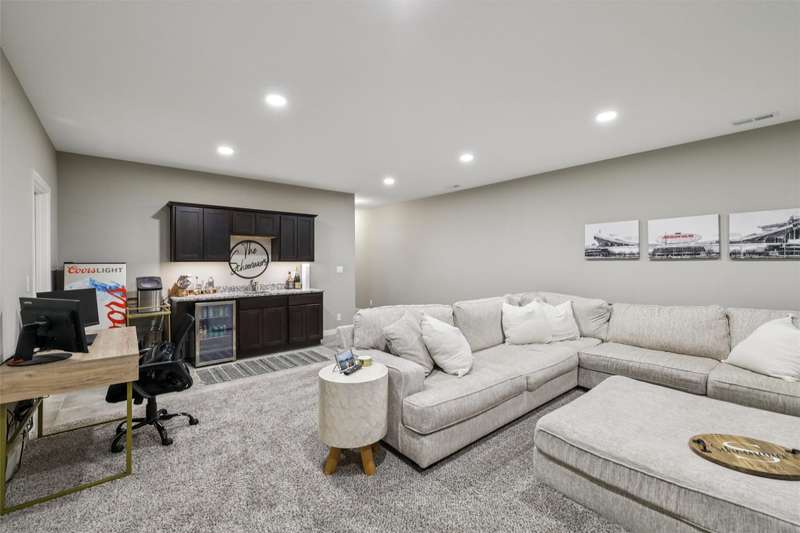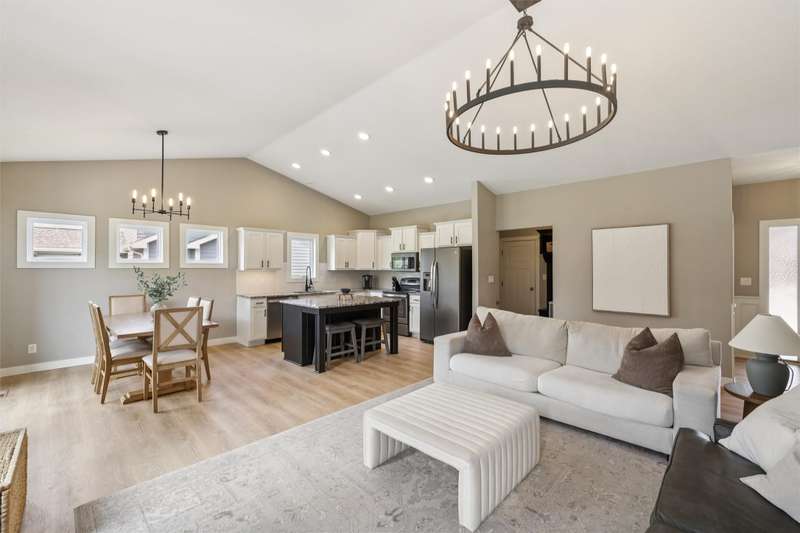 This beautiful ranch home blends modern updates with relaxed, comfortable livingall in a prime location within walking distance to Trails, Park and School. Fabulous curb appeal welcomes you with a charming front porch & wide walkway. Inside, vaulted ceilings and an open floorplan create a bright, inviting atmosphere perfect for everyday life and nearly 2350 sq ft to enjoy. Fabulous new wood floors flow through the main living, kitchen, and dining areas. The spacious kitchen features a center island, updated backsplash, generous storage, and pantry. The large living room impresses with a remodeled fireplaceideal for entertaining or cozy nights in. Enjoy meals in the spacious dining area with sliders that open to a fenced backyard, covered deck, and stamped concrete patio great for summer fun or a quiet summer night. The primary suite showcases a custom accent wall with sconce lighting, walk-in closet, bath with walk-in shower and dual vanities. 2 additional bedrooms and a full bath complete the main level. The lower level finish offers the perfect hangout space-whether its movie night, game day, or just relaxing with family and friends + complete with a one-of-a-kind Speakeasy room! Additional highlights include first-floor laundry, mudroom, and a location close to Waukee's best amenities. Move-in ready and filled with charm!