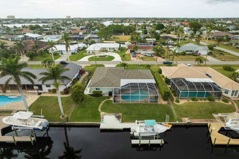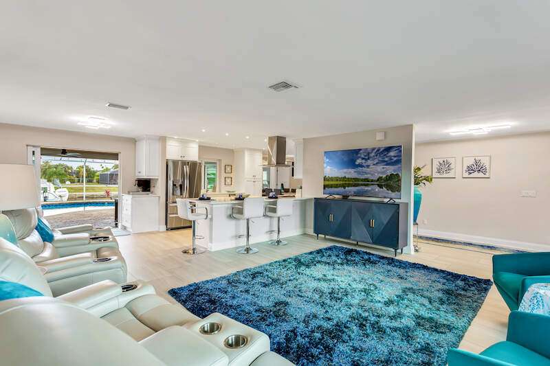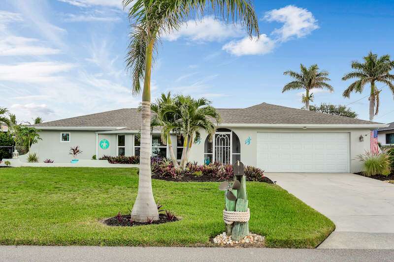 Welcome to your dream Gulf-access pool home in the coveted sailboat-access no bridges of Southwest Cape Coral! This exquisitely remodeled 3-bedroom, 2-bath retreat with a spacious 2-car garage with hurricane rated doors and windows perfectly balances luxury and practicality, ready for you to move right in. The moment you step inside, the expansive open floor plan captivates you, with three grand sliders seamlessly merging indoor and outdoor spaces for an unrivaled entertaining experience or simple relaxation. The kitchen is a culinary masterpiece, gleaming with brand-new quartz countertops, state-of-the-art appliances, pantry and pull-out cabinetry for ease and elegance. Revel in the opulence of newly remodeled bathrooms, featuring stylish vanities with quartz countertops and newly tiled showers. The interior is beautifully updated with new flooring throughout, complemented by fresh interior paint, upgraded interior doors, and trim for a sophisticated touch. Every corner of this home speaks of comfort and convenience, with updates in 2023 & 2024 of new roof, modern new HVAC, new water heater, both garage-door and new double glass front entry door meets wind mitigation standards. The irrigation system and lush, updated landscaping with new palm trees enhance the home's curb appeal. Step outside to your private oasis, where a sparkling, resurfaced pool invites year-round relaxation on oversized paver patio. Enjoy the luxuries of the new pool pump, a pool heater that heats or cools the water to the perfect temperature. A complete newly screened pool cage. Boating enthusiasts will appreciate the dock equipped with a versatile boat lift and either fishing boat or pontoon based on how you configure, water, electric and kayak lift will allow hassle-free access to open water in ten minutes or less. Additional highlights include a chic coffee bar, abundance of storage, a convenient cabana bath, and is Perfectly located near top shopping, dining, bike or walk to Park and entertainment venues. Immerse yourself in the vibrant lifestyle that awaits in this meticulously upgraded, move-in-ready home-offering unmatched Gulf access in a community renowned for its appeal. Seize the opportunity to call this remarkable residence yours and embrace both luxury living and water-bound adventure.