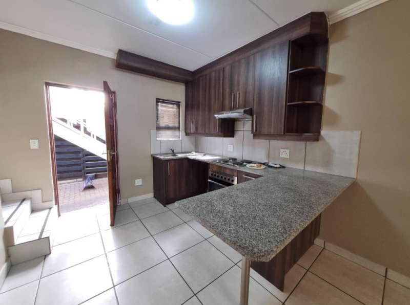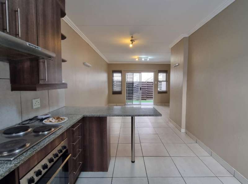 This duplex unit features an open plan design lounge and kitchen with electric stove, oven, extractor fan and built in cupboards. Sliding doors from the lounge lead out to a private patio where you can enjoy a braai with loved ones. A downstairs guest toilet is an added convenience. Upstairs is where you will find 2 bedrooms with built-in cupboards and 1 full bathroom. Allocated parking space and plenty visitors parking, remote controlled gate access and pet friendly. Perfectly situated near main transport routes, renowned schools, shopping centres, and various amenities. Contact me to set up a viewing appointment!