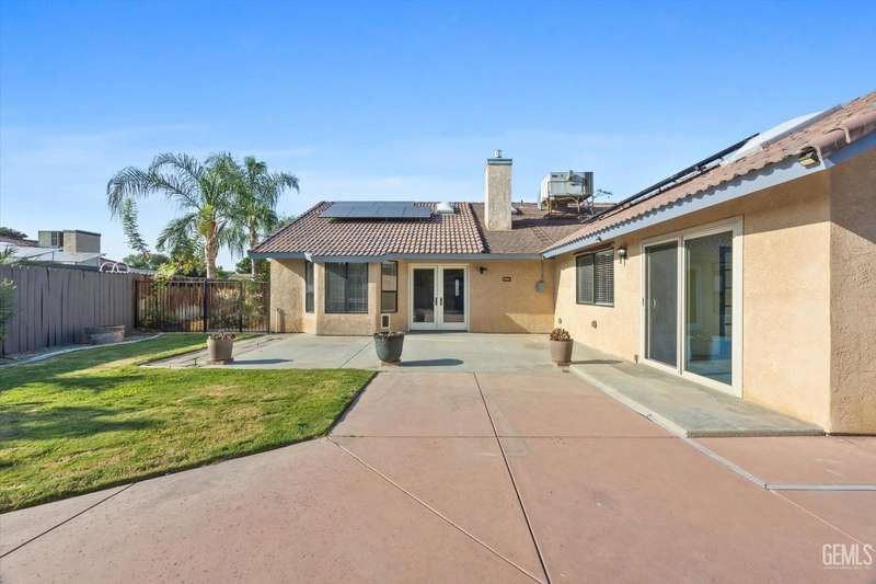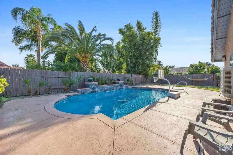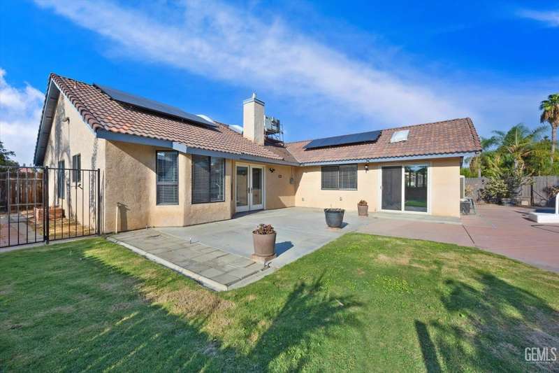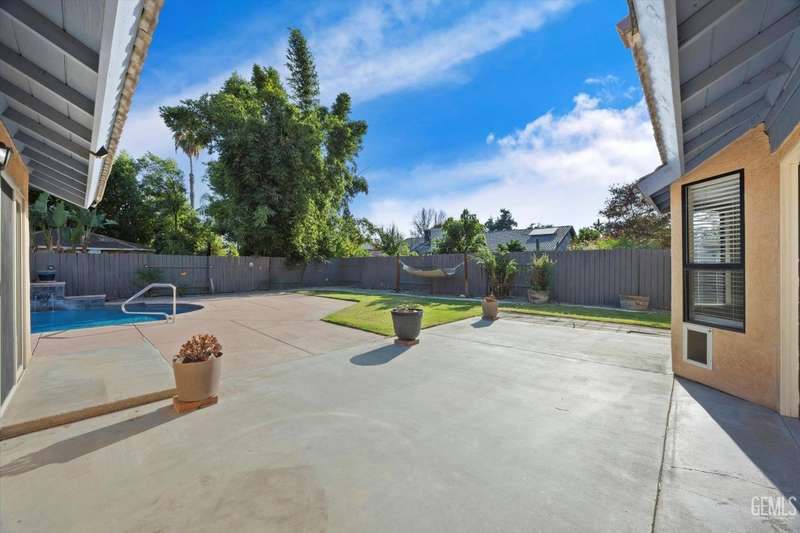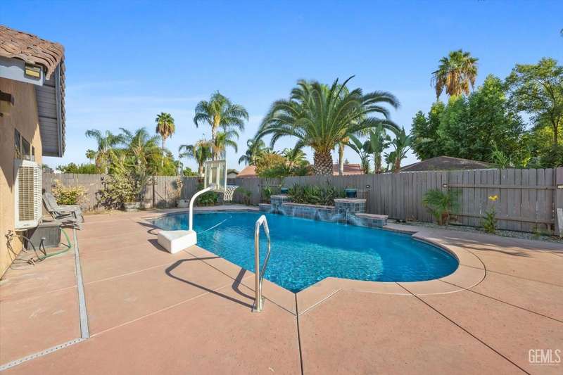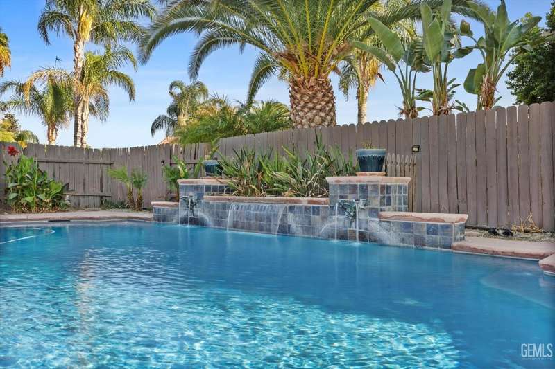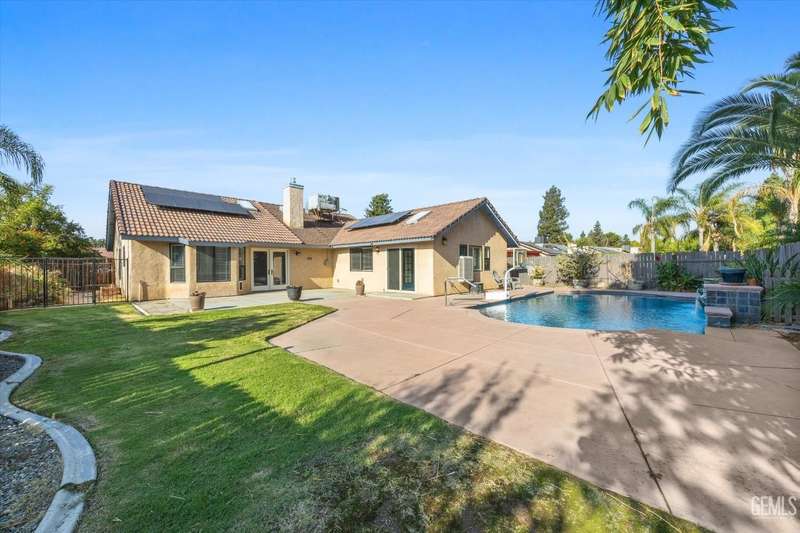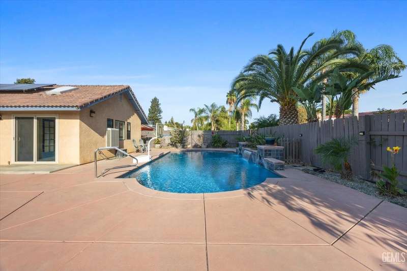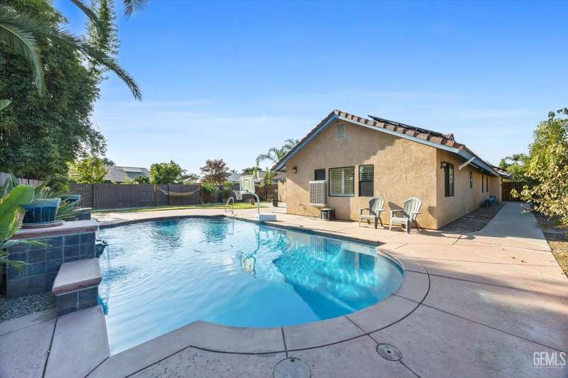 Move-in ready and full of charm, this beautiful home in The Oaks offers the perfect blend of style, comfort, and functionality. Inside, enjoy vaulted ceilings, abundant natural light from skylights in the living room and office, and a classic brick fireplace that adds warmth and character. The kitchen is well-equipped with a gas range, built-in oven and microwave, spacious island, swan-neck pull-out faucet with spray, and filtered water via a soft water system. A doggy door off the breakfast nook adds convenience for pet owners. With 3 bedrooms, 2 full baths, and a dedicated office, the flexible floor plan suits a variety of needs. The primary suite boasts dual walk-in closets and a spa-like bath with a walk-in shower featuring dual shower heads. The office connects to the suite, opens to the patio, and includes its own cooling system. Step outside to a private backyard oasis with a sparkling pool, garden area, and plenty of space to relax or entertain. Vacant and easy to show.