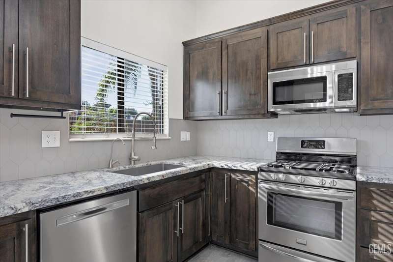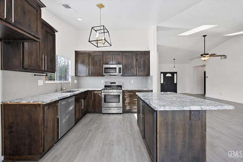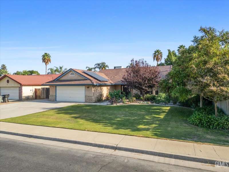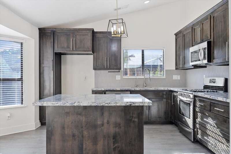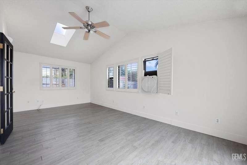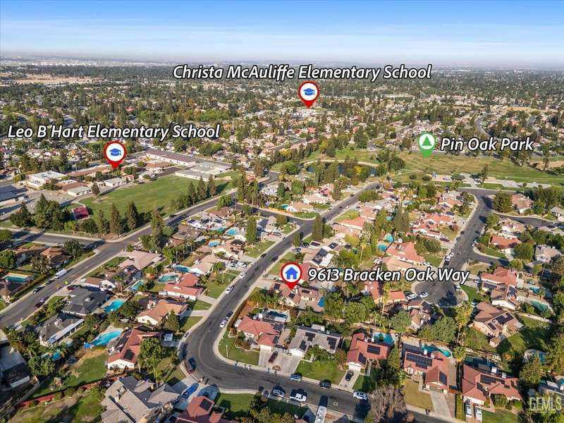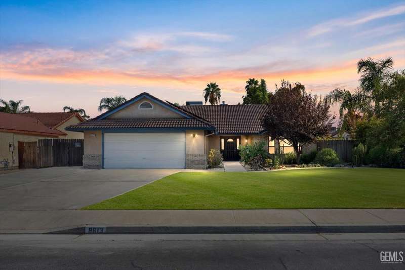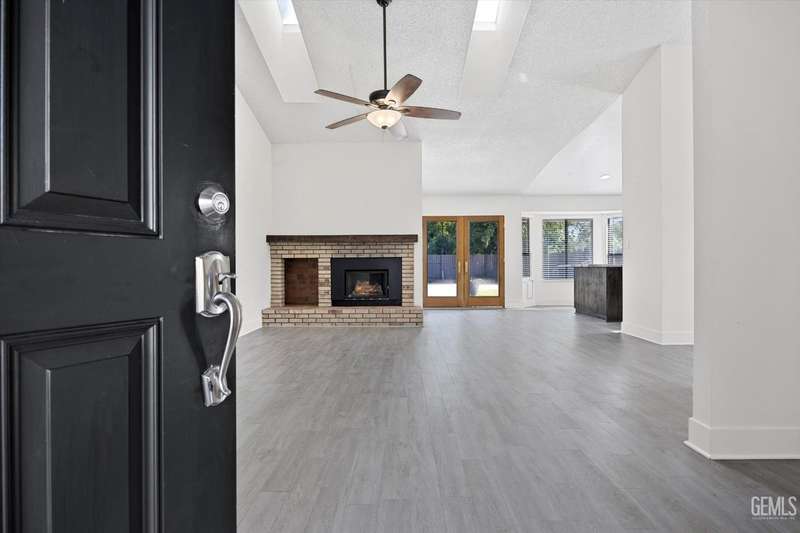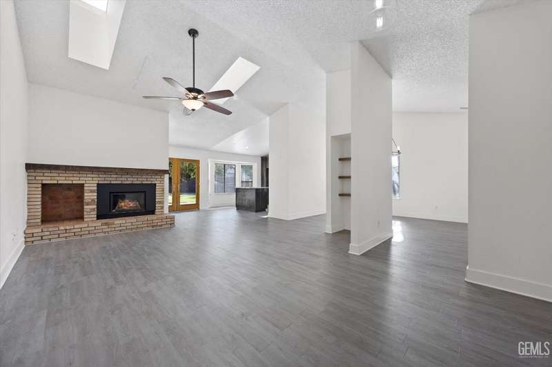 Move-in ready and full of charm, this beautiful home in The Oaks offers the perfect blend of style, comfort, and functionality. Inside, enjoy vaulted ceilings, abundant natural light from skylights in the living room and office, and a classic brick fireplace that adds warmth and character. The kitchen is well-equipped with a gas range, built-in oven and microwave, spacious island, swan-neck pull-out faucet with spray, and filtered water via a soft water system. A doggy door off the breakfast nook adds convenience for pet owners. With 3 bedrooms, 2 full baths, and a dedicated office, the flexible floor plan suits a variety of needs. The primary suite boasts dual walk-in closets and a spa-like bath with a walk-in shower featuring dual shower heads. The office connects to the suite, opens to the patio, and includes its own cooling system. Step outside to a private backyard oasis with a sparkling pool, garden area, and plenty of space to relax or entertain. Vacant and easy to show.