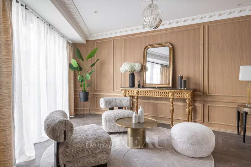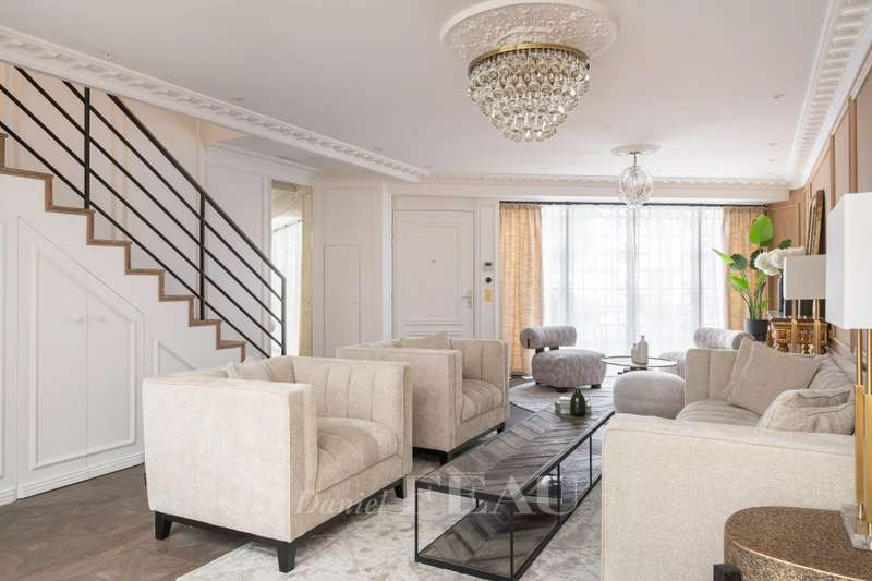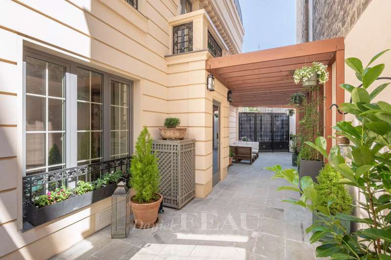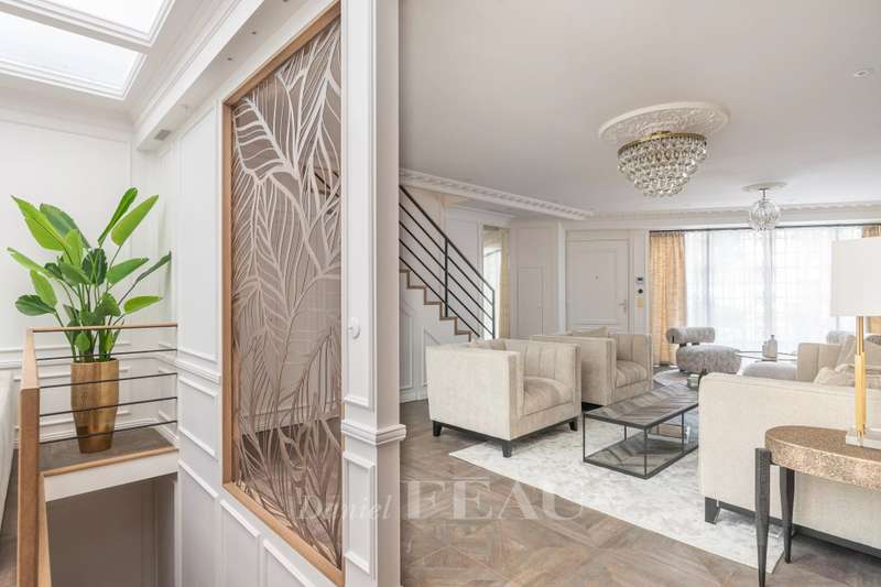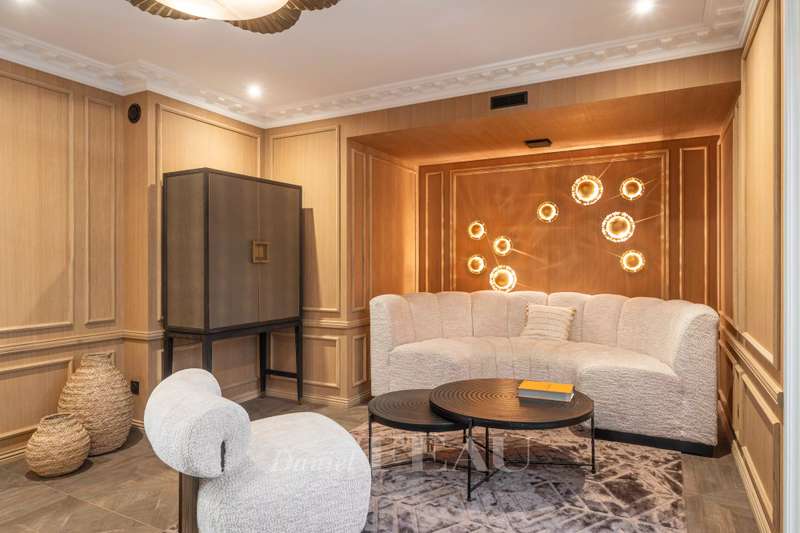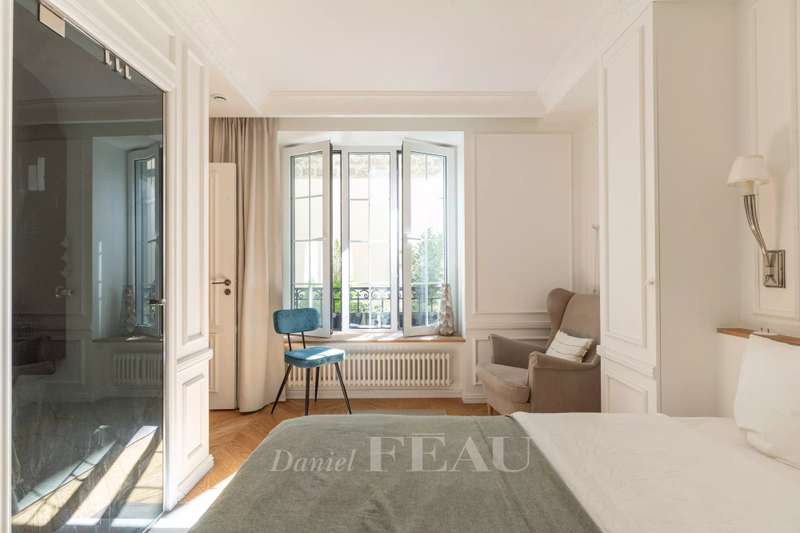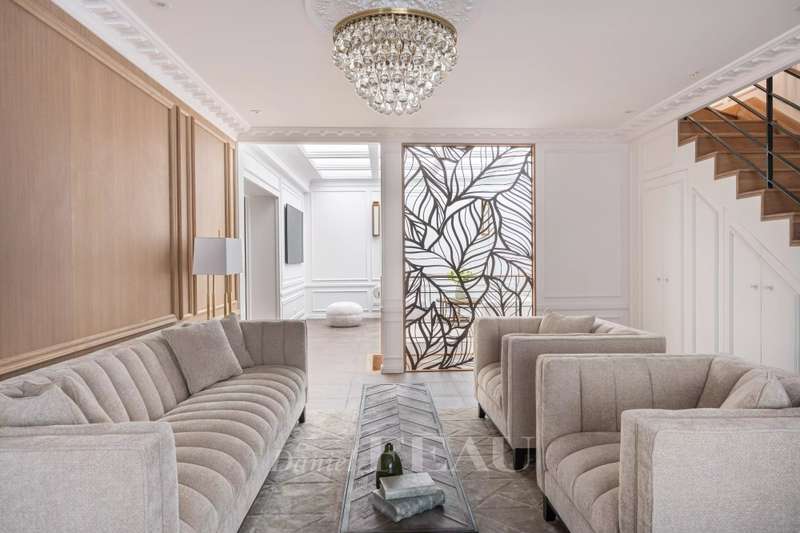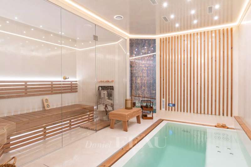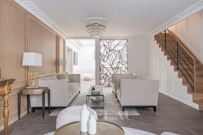 This magnificent early 20th century private mansion located five minutes from the centre of Neuilly-sur-Seine and near the shops and the transport networks has been renovated throughout by a renowned interior decorator. 400 sqm of living space on four floors includes over 85 sqm living/reception rooms, a fully equipped kitchen with dining facilities, a dining room, a terrace, six bedrooms with shower rooms/wc, an immense master suite with a shower room, a study, two dressing room opening onto a balcony, and a fitness room. The basement comprises a sauna, a spa/swimming pool, technical premises, a utility room and a wc. With a 4sqm courtyard. Vertical extension would be possible.