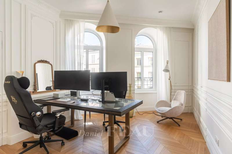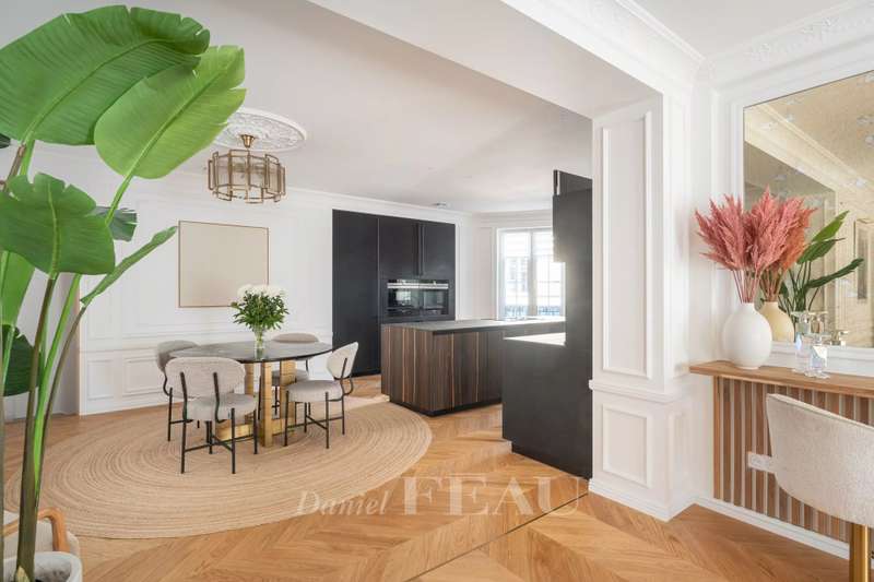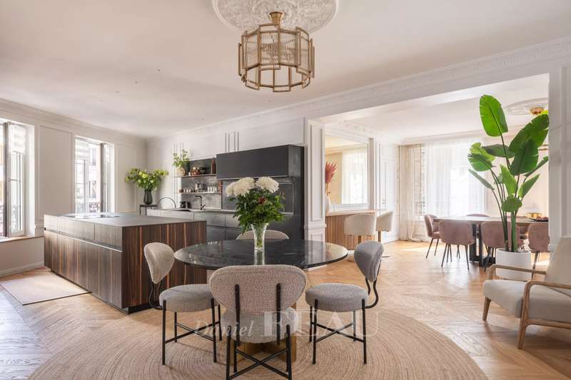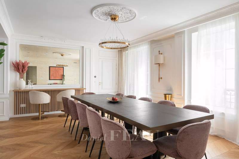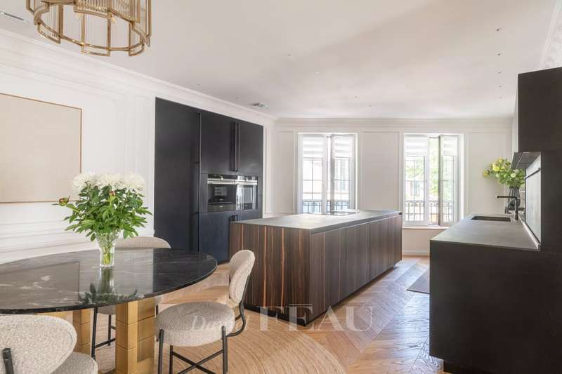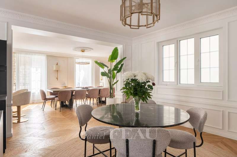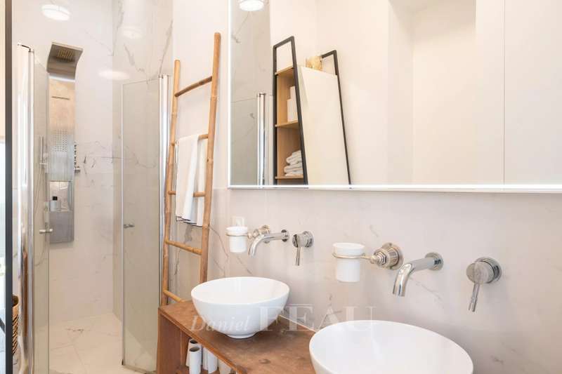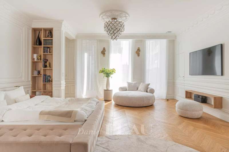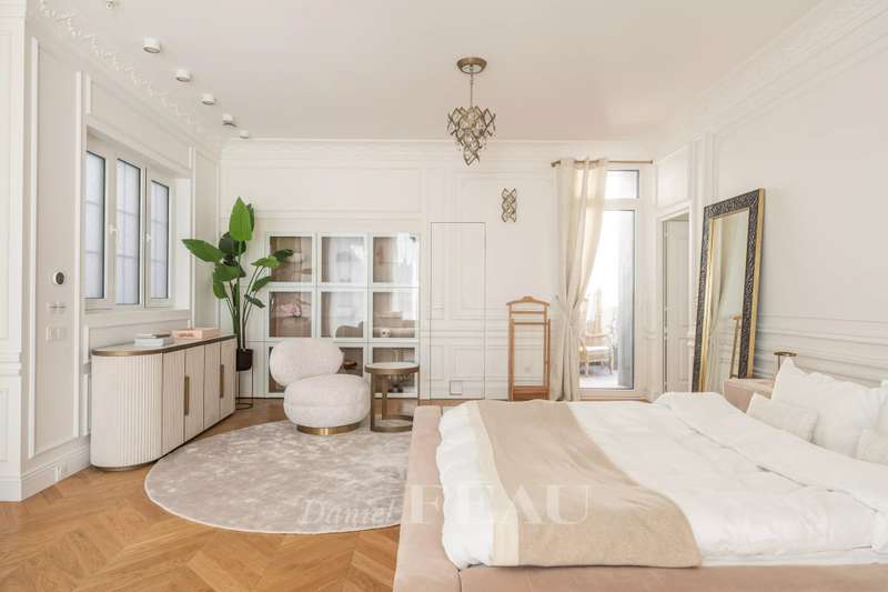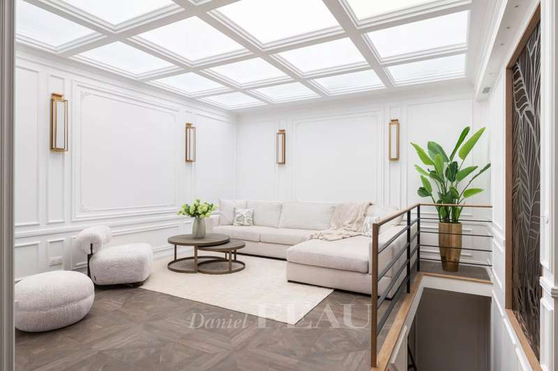 This magnificent early 20th century private mansion located five minutes from the centre of Neuilly-sur-Seine and near the shops and the transport networks has been renovated throughout by a renowned interior decorator. 400 sqm of living space on four floors includes over 85 sqm living/reception rooms, a fully equipped kitchen with dining facilities, a dining room, a terrace, six bedrooms with shower rooms/wc, an immense master suite with a shower room, a study, two dressing room opening onto a balcony, and a fitness room. The basement comprises a sauna, a spa/swimming pool, technical premises, a utility room and a wc. With a 4sqm courtyard. Vertical extension would be possible.