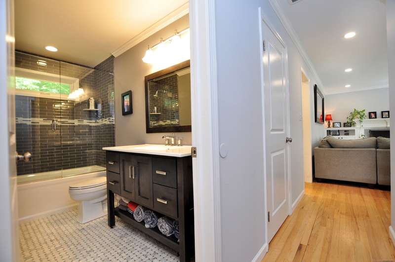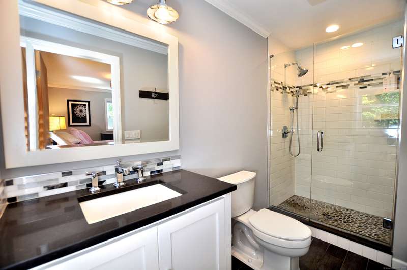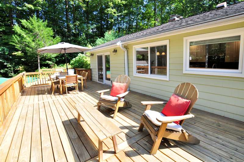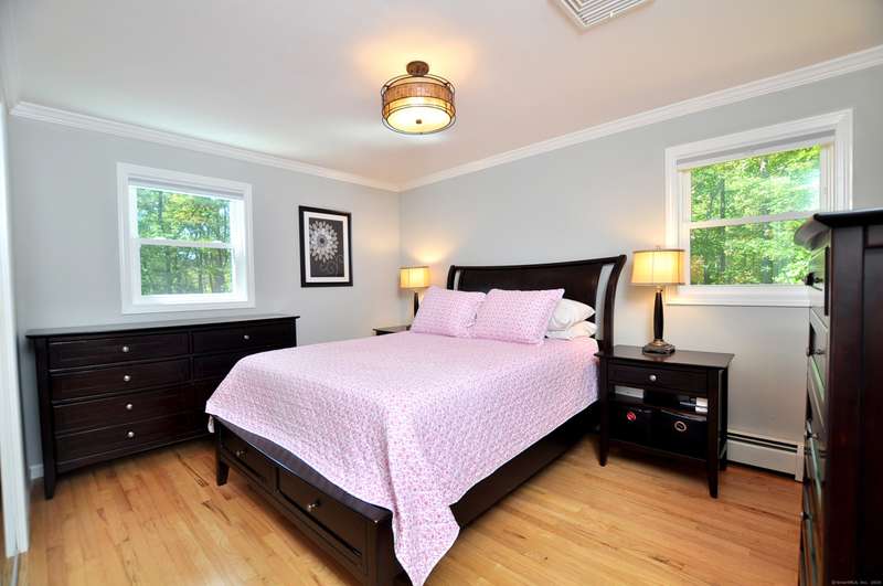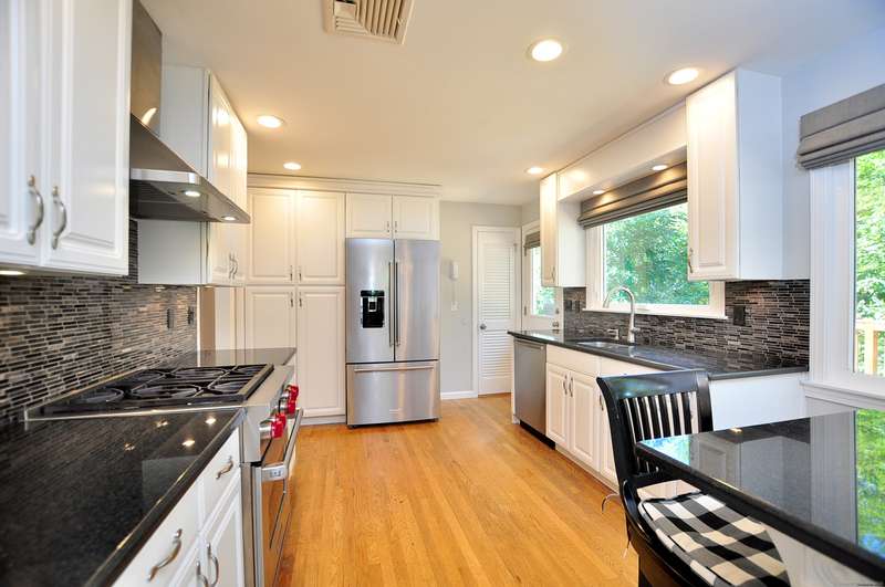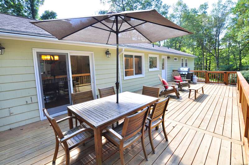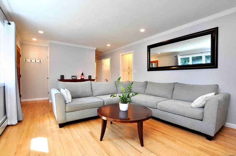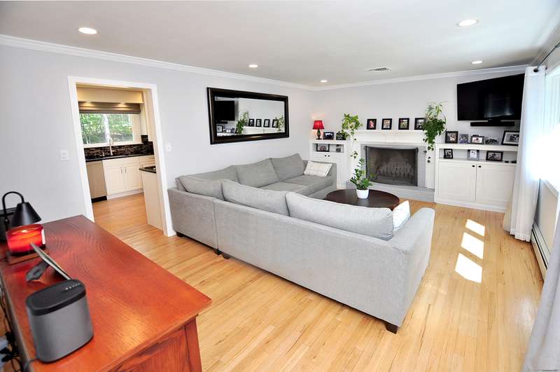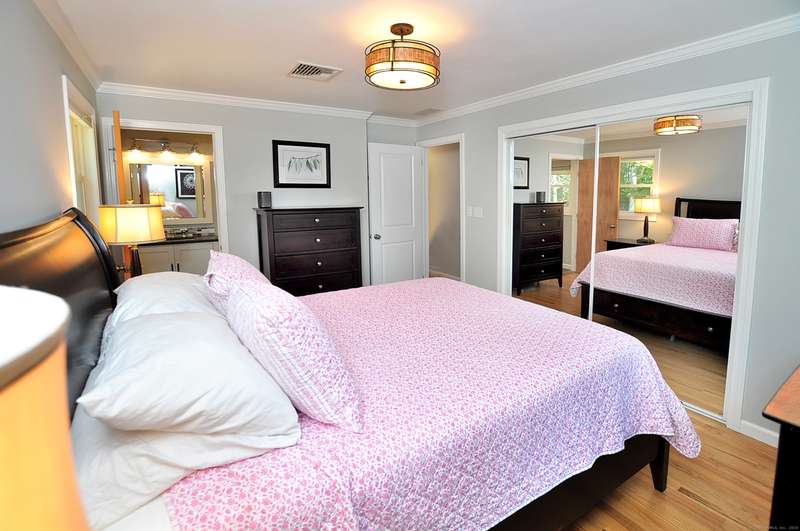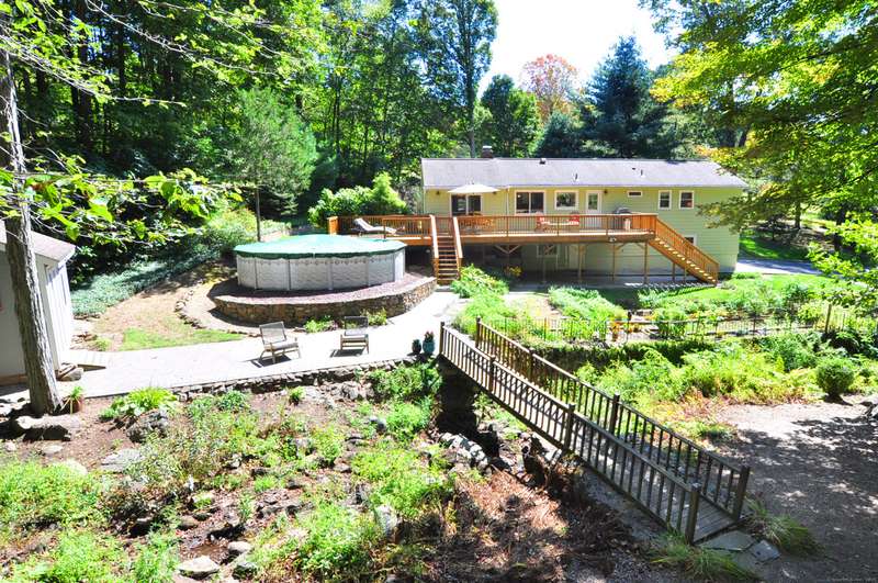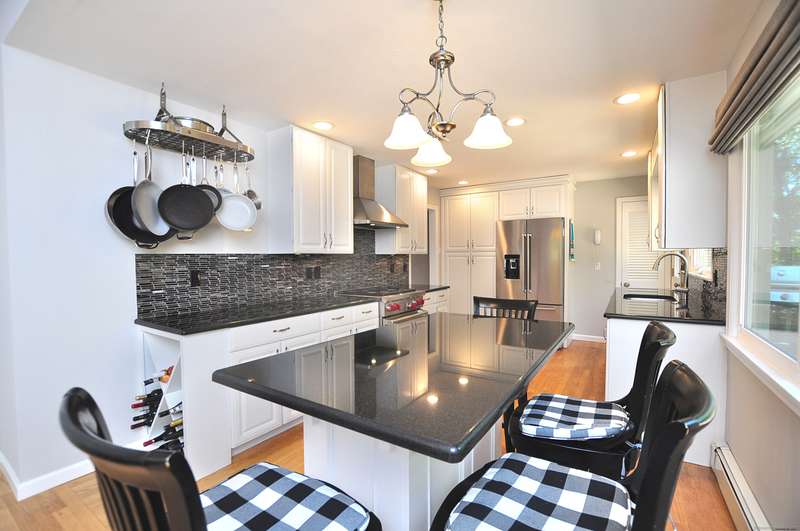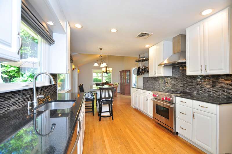 What fortune to find a home & property all fully & impeccably renovated with a commitment to quality, eye for beauty and enthusiasm for the outdoors. Sparkling new, upscale kitchen & baths highlight this skillfully improved Ranch featuring clean lines, bright spaces & modern accents. Fully open kitchen & dining areas feature brilliant white cabinetry, rich granite & high-end appliances. The kitchen, well-designed for cooking and hosting, features a built-in island/dinette, perfect for informal gatherings and an adjoining DR with vaulted ceiling. Fronted by huge picture windows and sliders, there's a full-on view and access to the engaging outdoor landscape. Open to the DR is a delightful, skylit den/office. Inviting LR with custom millwork, FPL & bow window; equally beautiful BRs & exquisite baths. Recreation-ready walk-out finished LL FR. Newer upgraded doors, windows, mechanicals. And, then, there's the outdoor living spaces, which rival the beauty & lifestyle advantages of the insid