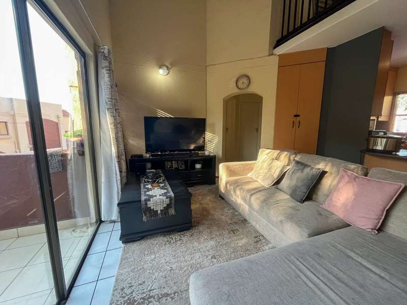 Stunning 1st floor apartment with 180 degree views from a huge entertainment patio. 2 good sized bedrooms (loft serves as optional 3rd) with 2 bathrooms (main en suite). Open plan kitchen onto spacious lounge opening onto private balcony. Loft can be used as additional bedroom or tv room. Lovely pool in the complex as well as 24 hour guarded access. All close to good schools, shopping centres and easy access to Sandton