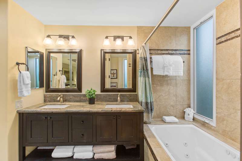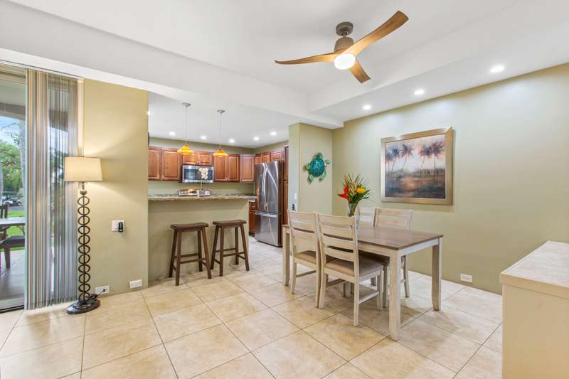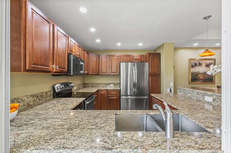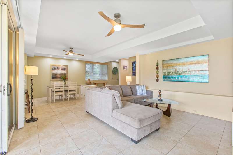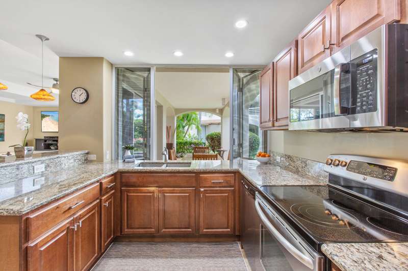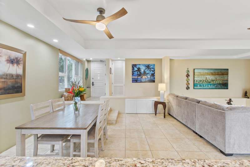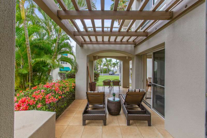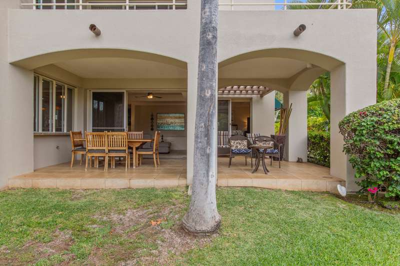 Nestled on the top row of The Palms at Wailea and tucked away from road noise, Palms 307 offers a peaceful slice of paradise—with a bit of ocean view... Whether you're looking for a vacation escape or an investment in Maui’s coveted resort community, this unit is clean, stylish, and move-in ready—offering comfort, value, and a touch of luxury. This light-filled unit welcomes you with an open floor plan and a spacious sunken living area that functions beautifully as a great room. The layout is ideal for relaxing or entertaining, with room to gather and a pullout sofa for practicality. Step out onto the private lanai and take in a peek of the ocean—just enough to remind you how close you are - and that you are living the island dream. The kitchen is well-equipped with granite counters, stainless steel appliances, and a brand-new refrigerator. The pass-through window to the lanai is perfect for serving pupus or a full island feast. The primary suite is a true retreat, featuring a king-sized bed, a new split a/c, and the attached bathroom with dual sinks, and a whirlpool tub. The guest bathroom is equally impressive, finished in travertine tile with a gorgeous walk-in shower. Surrounded by lush tropical landscaping, The Palms at Wailea is a beautifully maintained, low-density complex that's just a short stroll to the beach and world-class amenities. Spa, dining and island activities are all at your fingertips. Priced attractively compared to others in the complex, this unit is an invitation to live your Maui legacy—embrace the lifestyle, the warmth, and the aloha.