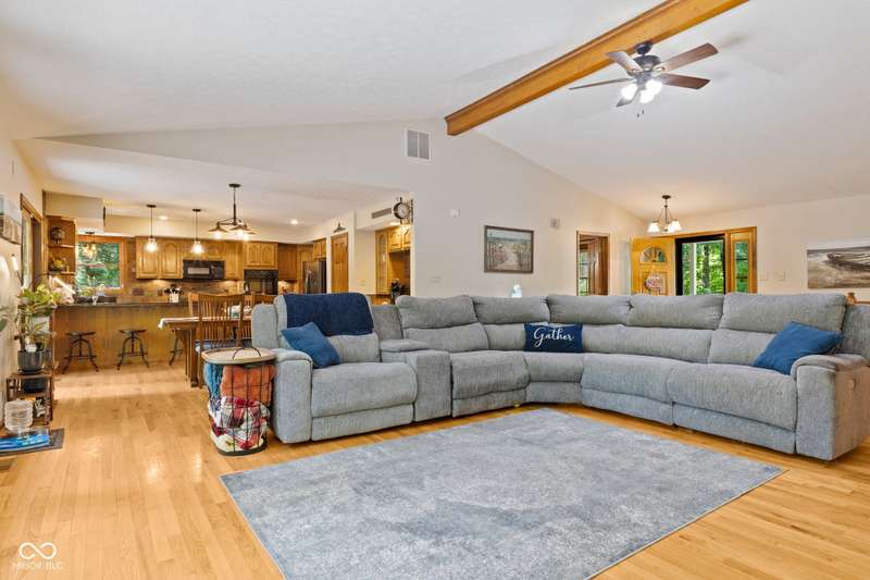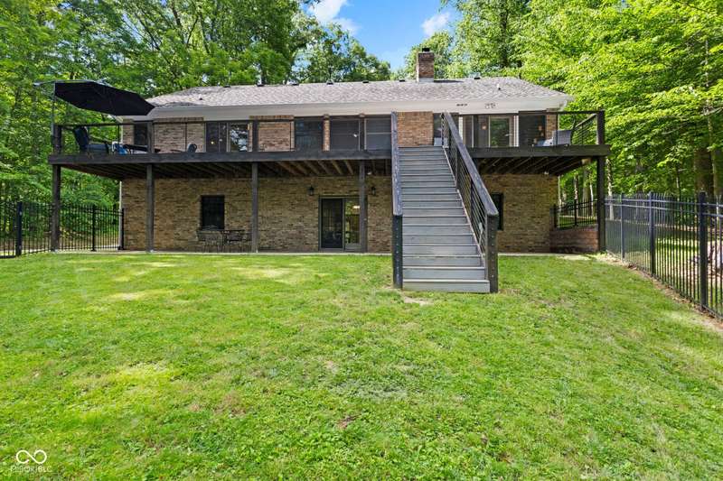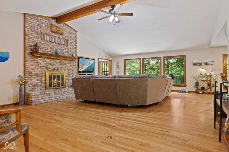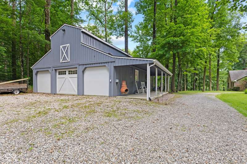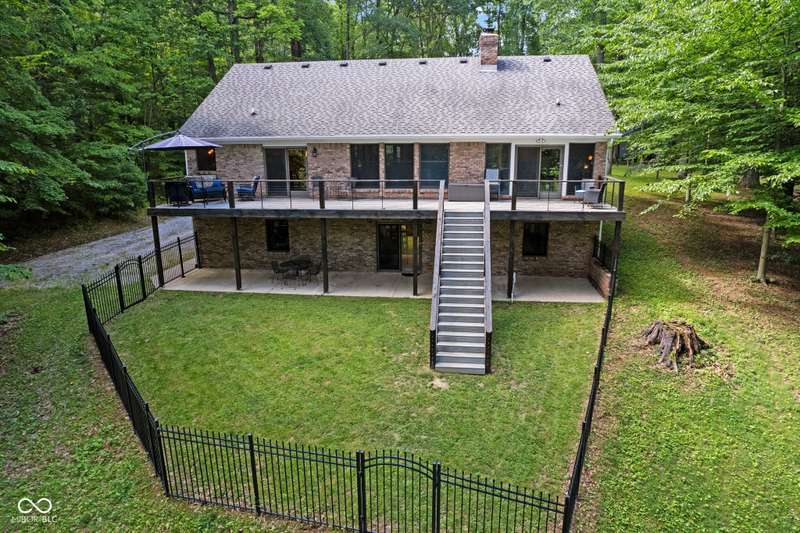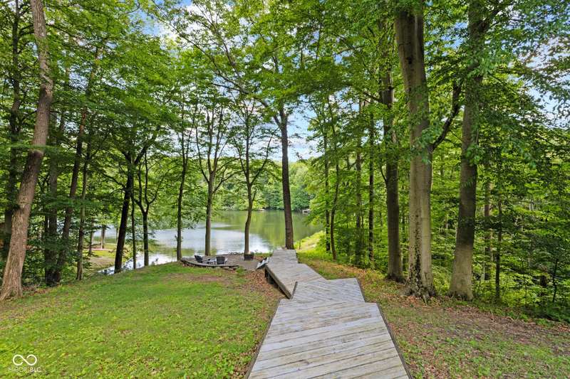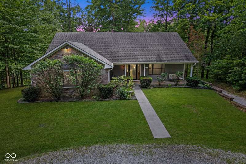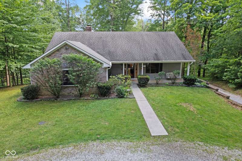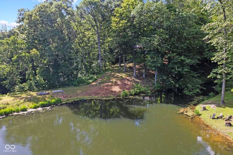 Welcome to your lakefront dream retreat! This stunning 3-bedroom, 3-bathroom brick ranch home offers an unparalleled blend of comfort, and natural beauty. Nestled on over 6 acres of pristine land, this property provides ultimate privacy and serene views, making it the perfect sanctuary. As you step inside, you'll be captivated by the vaulted ceilings throughout the main level, creating an airy and spacious ambiance. The heart of the home features an inviting living area with windows that flood the space with natural light and offer breathtaking views of the surrounding landscape. The chef in the family will appreciate the updated kitchen equipped with a built-in double oven, prep sink and ample counter space, making meal preparation a joy. The main level also includes two generously sized bedrooms with in-suite, well-appointed bathrooms, ensuring comfort and convenience. The finished walkout basement is an entertainer's dream, boasting a second kitchen ideal for hosting gatherings or providing separate living quarters. This versatile space opens up to a patio area, perfect for enjoying peaceful evenings while overlooking the tranquil waters of the 8-acre lake. Car enthusiasts and hobbyists will be delighted by the 2-car attached garage and the additional 3-car detached garage, which includes extra storage space for all your needs. The outdoor amenities are just as impressive, featuring a covered front porch for relaxing mornings, an updated deck and wooden stairs leading to the lake, and a mature tree-lined patio area that offers a picturesque setting for outdoor activities. New roof 8/17/2024! Whether you're savoring the stunning lake views, exploring the lush wooded surroundings, or simply enjoying the privacy this exceptional property affords, you'll find this home to be a haven of comfort and style. Don't miss this rare opportunity to own a piece of paradise in a highly desirable, secluded hideaway in Morgan County-schedule your private showing today!