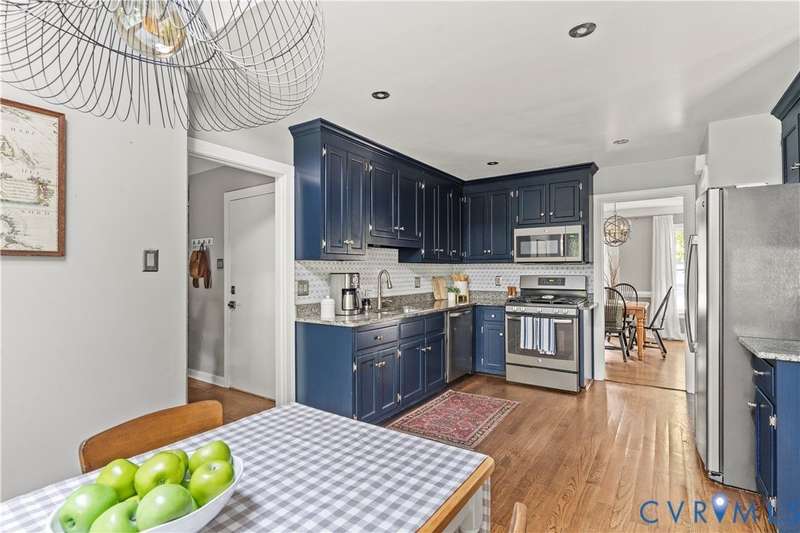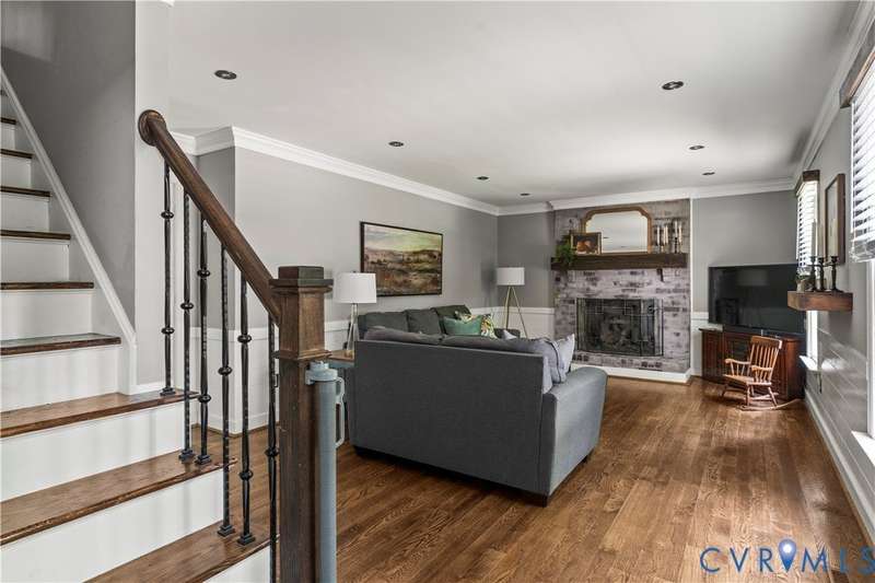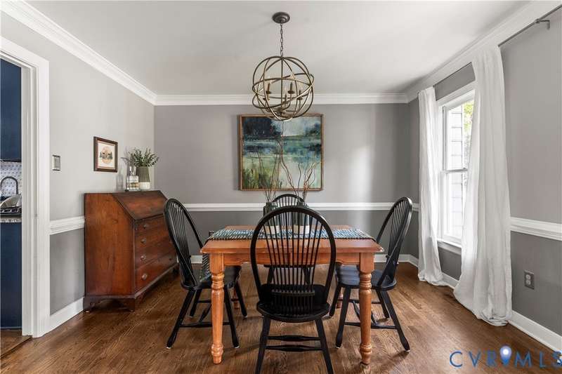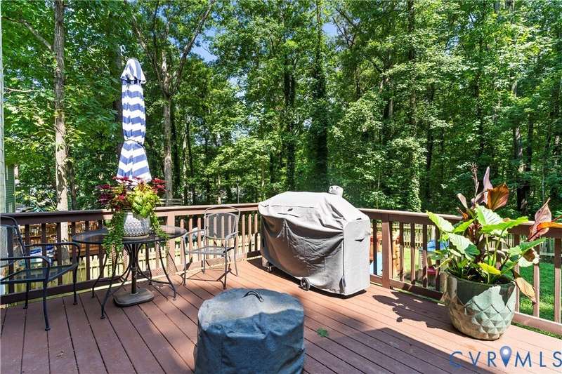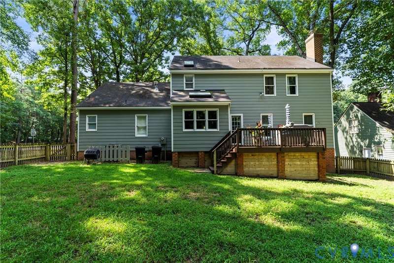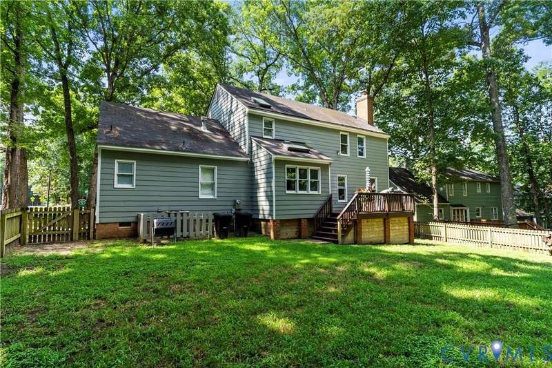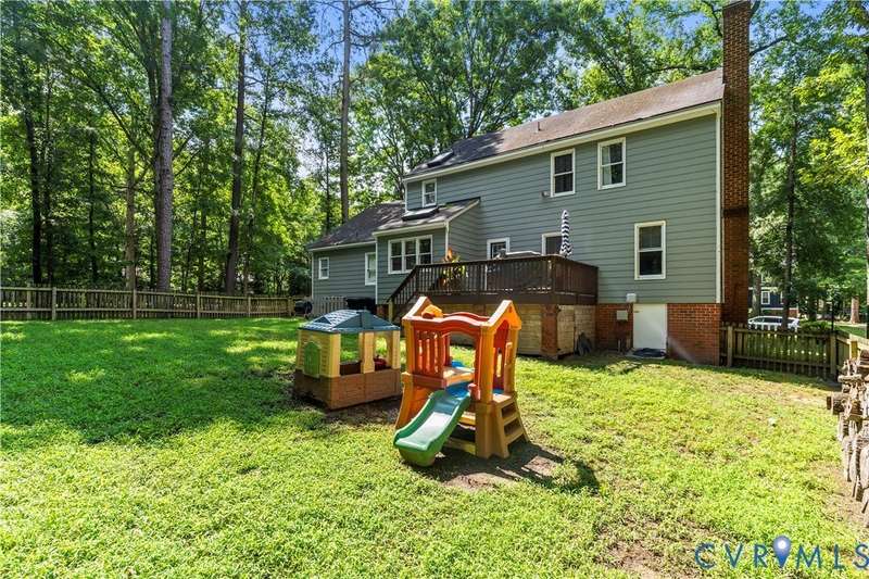 You will fall in love with this darling house on a corner lot with a big fenced back yard. You enter a spacious foyer with an extra large living room (presently being used as a fun filled play room) on one side and the light filled dining room on the other. Straight ahead is the lovely family room that opens to the deck and fenced back yard. A gas fireplace will make those cold winter nights cozy. The kitchen has striking blue cabinets with under counter lighting, granite counters and a pretty tile backsplash. Stainless steel appliances and a gas stove with gridle cooking will make Saturday morning breakfasts fun to whip up! Off the kitchen is the mudroom and half bath. This was the original laundry room and still has the option to put your washer and dryer here if you prefer a 1st floor laundry room. Both floors have hardwood flooring. Upstairs you will find a large Primary bedroom with a huge walk in closet and an updated bathroom. Through the closet you will see a marvelous 2nd floor laundry room with plenty of storage and counter space making it a great hobby area too! 3 more bedrooms and an updated hall bath round out the 2nd floor. The walk up attic has plenty of space for storage. Brandermill has tons of walking trails, parks and pools, golfing and access to the lake make this a beautiful place to call home. Easy access to 288, Powhite, excellent Chesterfield County schools, shopping and great restaurants!