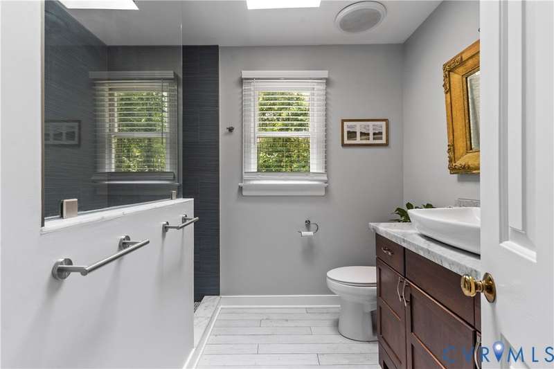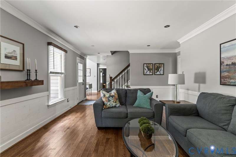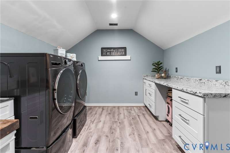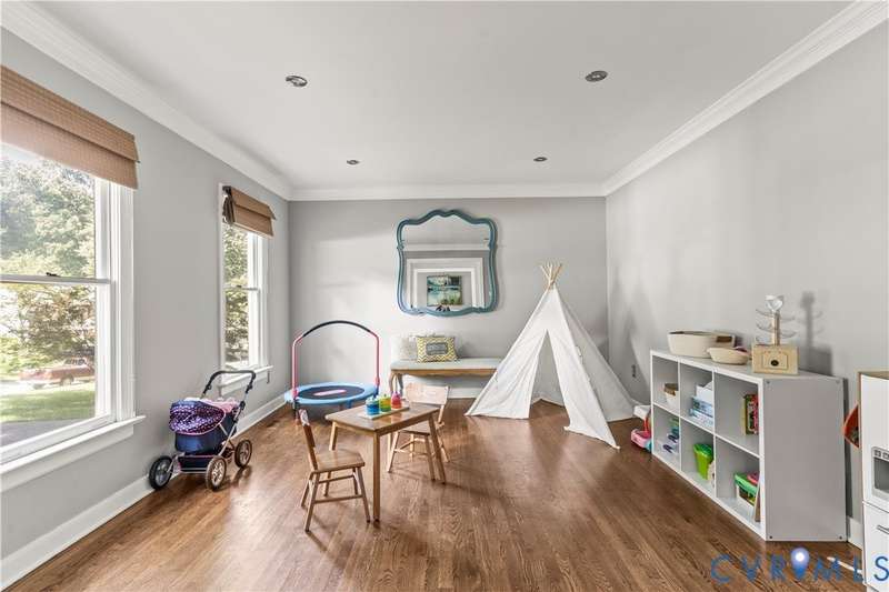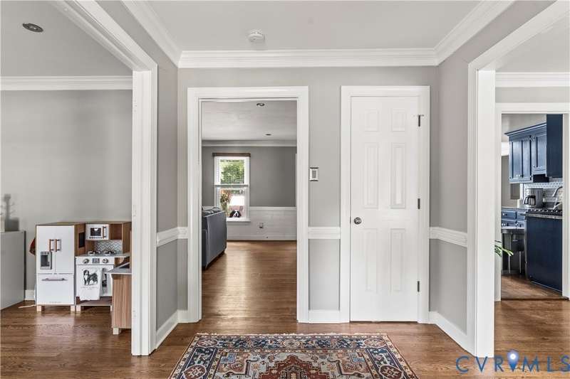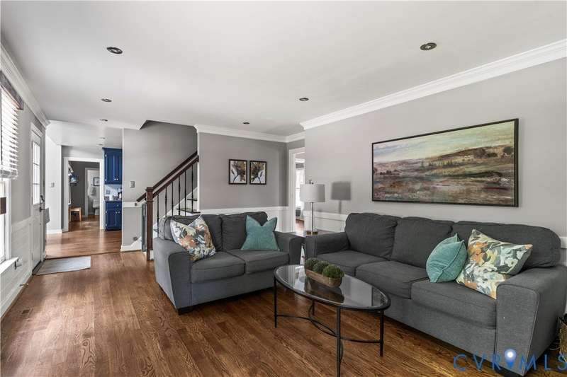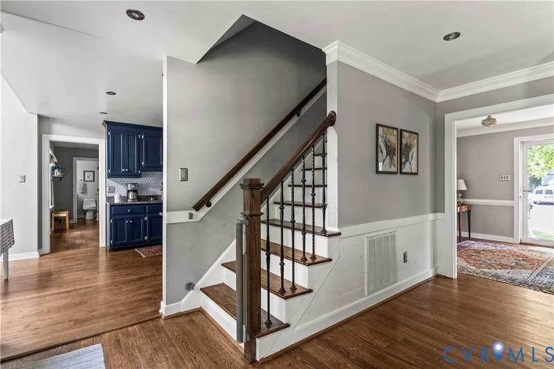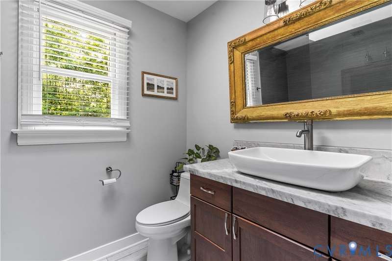 You will fall in love with this darling house on a corner lot with a big fenced back yard. You enter a spacious foyer with an extra large living room (presently being used as a fun filled play room) on one side and the light filled dining room on the other. Straight ahead is the lovely family room that opens to the deck and fenced back yard. A gas fireplace will make those cold winter nights cozy. The kitchen has striking blue cabinets with under counter lighting, granite counters and a pretty tile backsplash. Stainless steel appliances and a gas stove with gridle cooking will make Saturday morning breakfasts fun to whip up! Off the kitchen is the mudroom and half bath. This was the original laundry room and still has the option to put your washer and dryer here if you prefer a 1st floor laundry room. Both floors have hardwood flooring. Upstairs you will find a large Primary bedroom with a huge walk in closet and an updated bathroom. Through the closet you will see a marvelous 2nd floor laundry room with plenty of storage and counter space making it a great hobby area too! 3 more bedrooms and an updated hall bath round out the 2nd floor. The walk up attic has plenty of space for storage. Brandermill has tons of walking trails, parks and pools, golfing and access to the lake make this a beautiful place to call home. Easy access to 288, Powhite, excellent Chesterfield County schools, shopping and great restaurants!