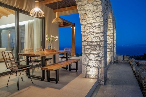 Located in Elatio, Zante, this luxurious 129 sqm seafront villa sits on a 1000 sqm plot and was constructed in 2014 to the highest standards. The villa offers three bedrooms, a living room, a modern kitchen, and two bathrooms. It features spacious interiors with wood flooring, and enjoys stunning sea views from its balconies.