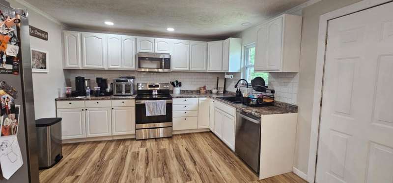 This beautifully updated home has 3-bedroom, 2-bathroom with a partially finished basement, a one-car garage, and an incredible backyard fully enclosed with a privacy fence. situated in the center of White Pine. It is in close proximity to parks, schools, and restaurants, just minutes from the interstate. Over the years, newer windows floors, garage door, and a roof have been installed. Additionally, a new and expansive deck has been added to the front of the house. Buyer to verify all information. MASTER BEDROOM BLACK CURTAINS AND RODS DO NOT CONVEY WITH HOME.