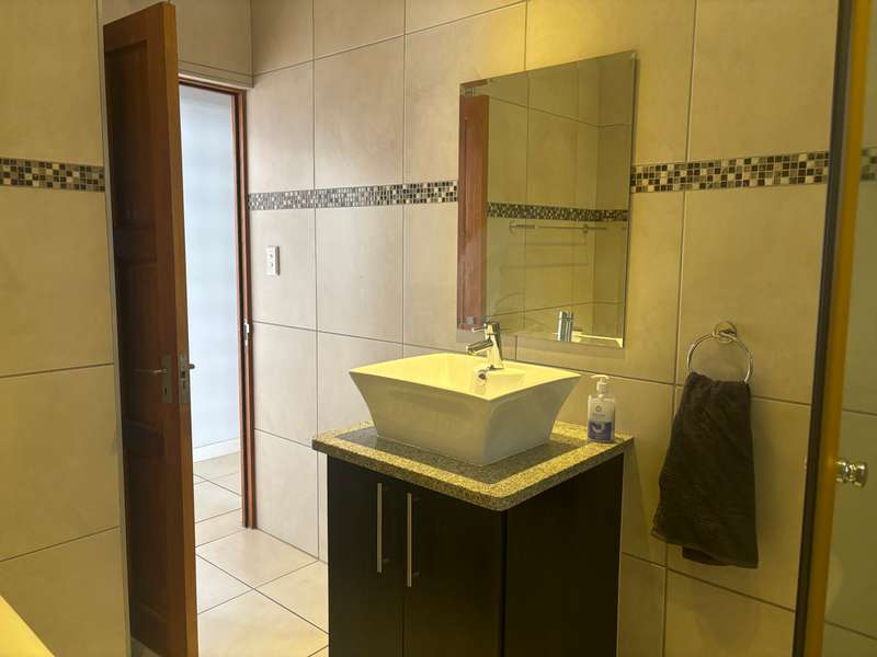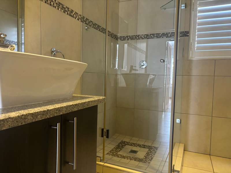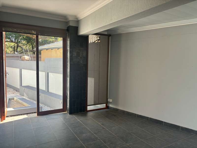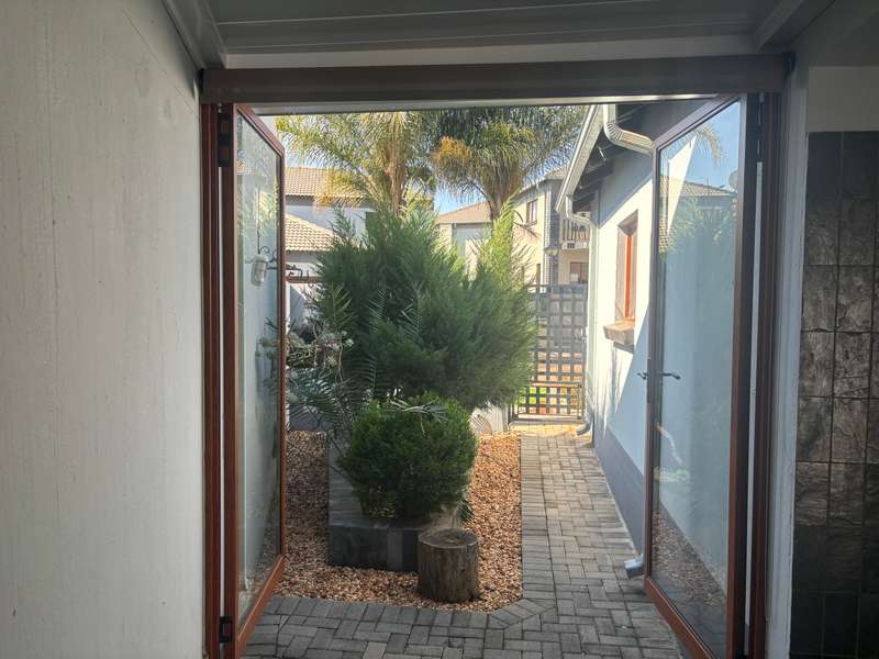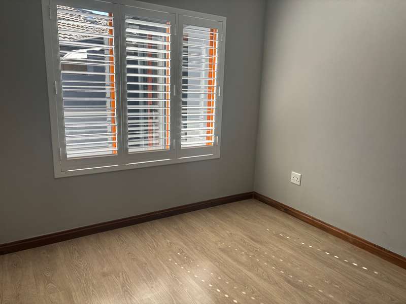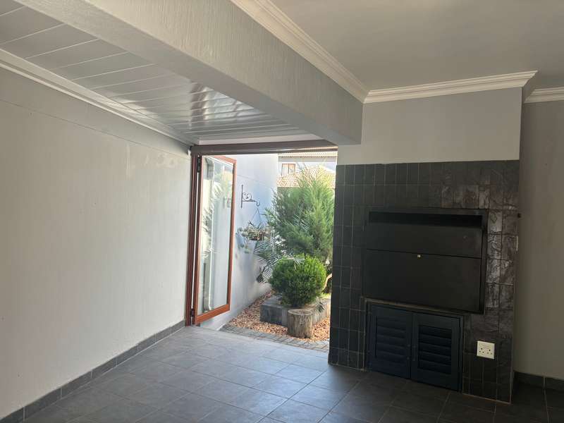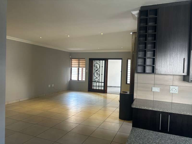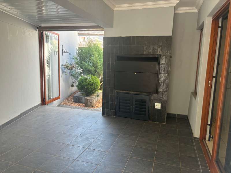 Nestled within a prestigious 24-hour security estate in Olympus, this exquisite 3-bedroom house offers spacious living at its finest. Step inside to discover a modern interior adorned with wooden blinds throughout, adding warmth and elegance to every room. The open-plan living area seamlessly integrates with the stylish kitchen, featuring a gas stove, scullery, and ample storage space. Sliding doors lead out to a closed patio, complete with a built-in braai and boma, perfect for outdoor entertaining and relaxation. The master bedroom boasts an ensuite bathroom with walk-in cupboards, providing a luxurious retreat, while two additional bedrooms offer comfort and versatility. Convenience is key with a double automated garage providing direct access to the house. Plus, the inclusion of a yo yo tank ensures water sustainability. Situated in a sought-after estate, this home offers proximity to renowned schools, major highways, and a variety of amenities, making it the ideal blend of luxury and convenience.