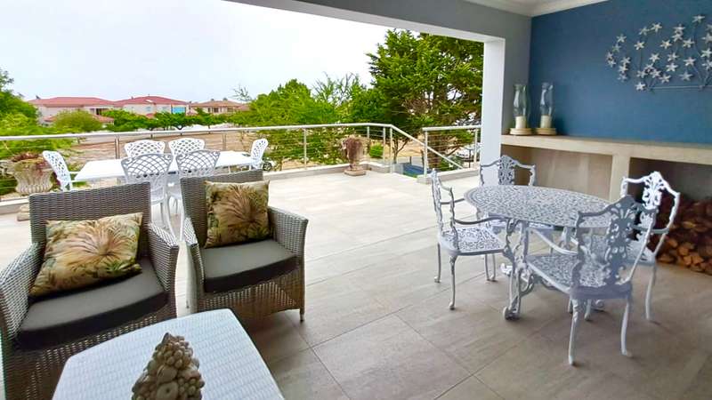 Sophisticated 4-Bedroom Home with study in Port Owen Situated within the peaceful Port Owen neighborhood, this home offers a relaxed lifestyle with easy access to local amenities such as shops, restaurants, and recreational facilities. Discover modern comfort and tranquility in this exceptional home. The home's centerpiece is the open-plan living area with a wood burner heater, dining room and fully fitted gourmet kitchen and separate scullery area designed for both relaxed family living and entertaining. Large fold away doors open up to a big undercover balcony, fill the space with natural light, enhancing the bright and airy ambiance. The study providing enough space for 2 people in a quiet, productive environment for remote work or study. This versatile space can be easily tailored to your needs as a workspace or hobby room This sophisticated 4-bedroom home with en-suite bathrooms combines modern amenities with inviting open living spaces. The generous large master bedroom features a luxurious en-suite bathroom with dressing room creating a peaceful retreat, while the three additional spacious bedrooms are all fitted with their own en-suite bathrooms perfect for accommodating family and guests. Downstairs is a domestic toilet and basin One of the home’s highlights is the outdoor sunken fire pit with surrounding seating area surrounded by a green manicured garden and a water fountain. The outdoor area is designed for relaxation and entertaining. Downstairs is a separate fully fitted laundry and a store room area in the double garage. Double automated garage with parking for 3 cars off street. This property is equipped with 2 solar geysers and a solar electricity system with 8 solar panels. The property have security beams fitted on the surrounded outside fence with panic buttons and remote control devices. This is a must see house for move in and stay!