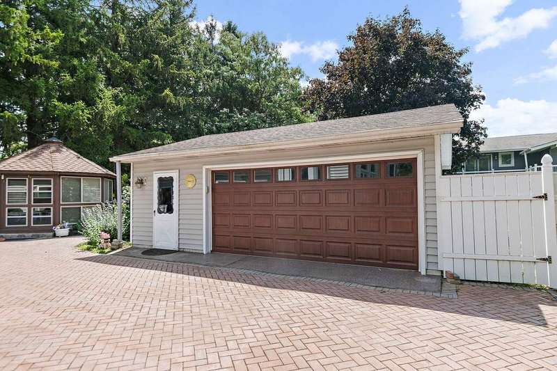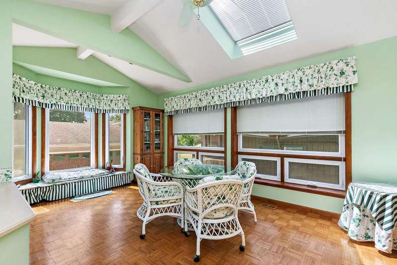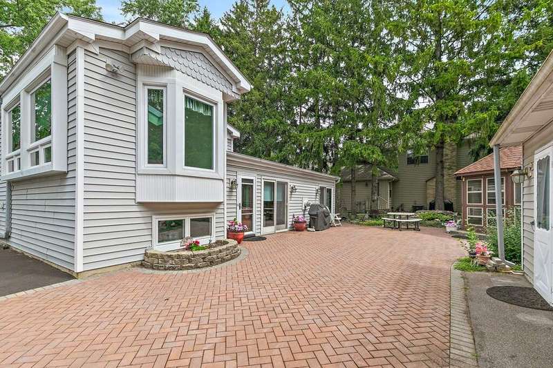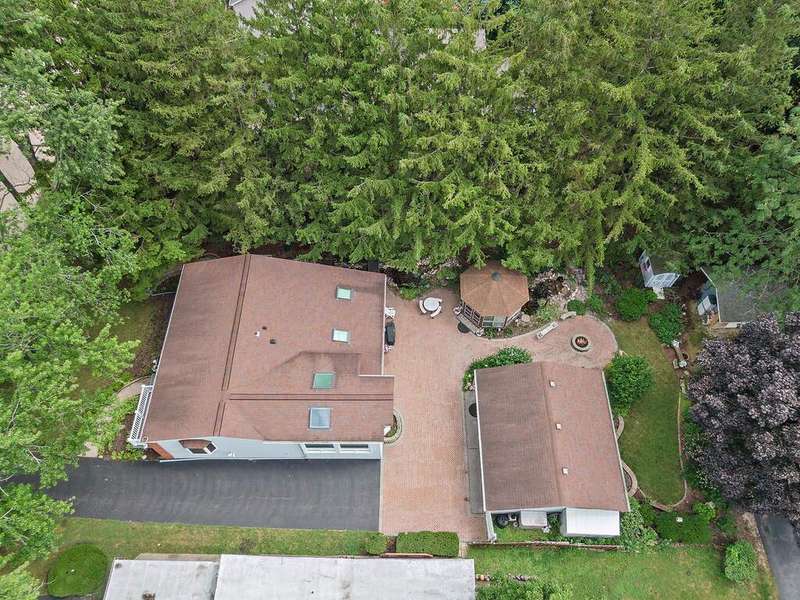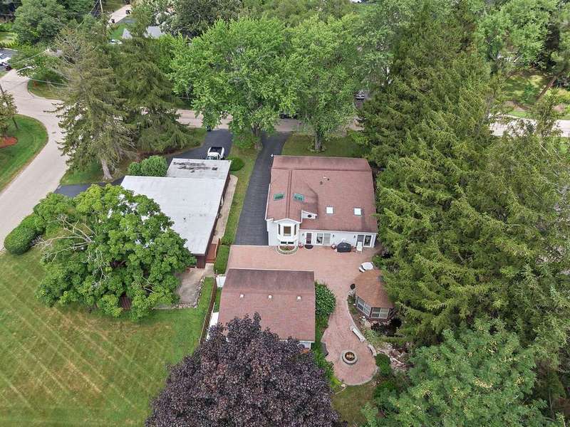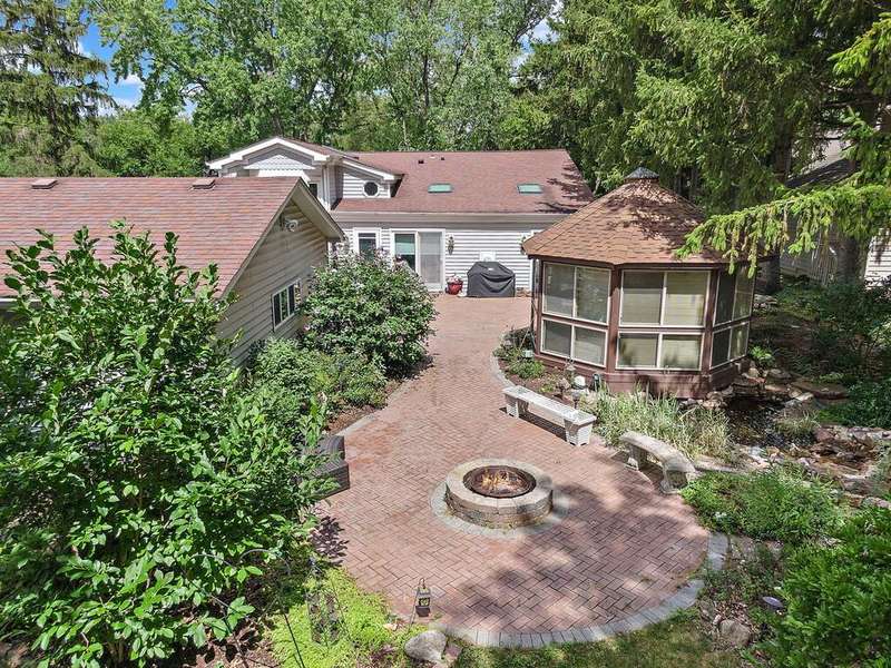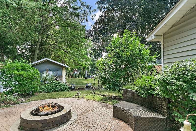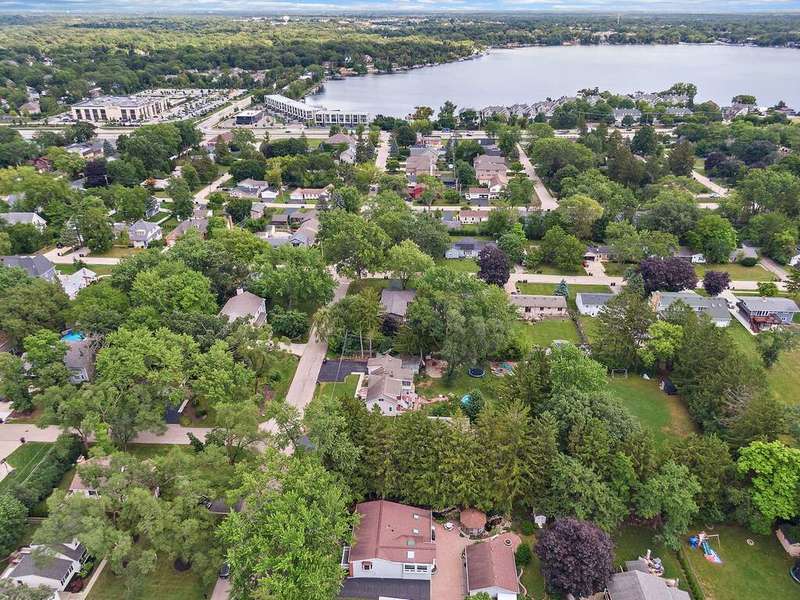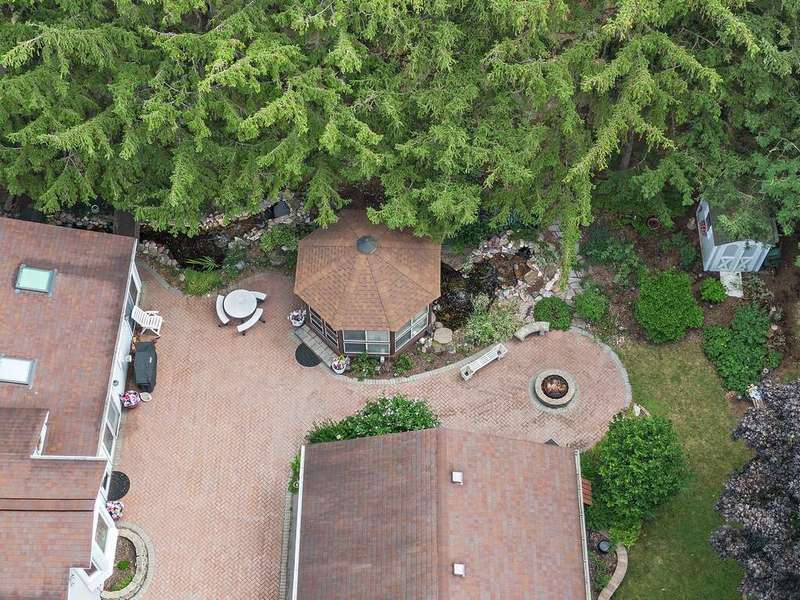 Lovingly cared for by the original owners, this home blends thoughtful updates with timeless charm in a truly beautiful neighborhood of both older and newer homes. A well-planned 1995 addition expanded the kitchen and added a bright, sunny breakfast room along with a wonderful family room featuring walls of windows overlooking the serene backyard, deck, and tranquil koi pond with a waterfall. The versatile floor plan offers four spacious bedrooms-two on the main level and two in the lower level-making it perfect for multi-generational living, teen space, in-law, and perfect for adult kids as well who want a separate space. The lower level also features a cozy gas-start fireplace in the family room, an electric fireplace in one of the bedrooms, and a beautifully updated bathroom (2015). Upstairs, the living room showcases a decorative fireplace, adding to the home's warmth and character. The updates include a new roof and all new Marvin windows in 2014, a newer air conditioner and furnace in 2021, and siding replacement in 2005. Outdoor living shines with a large brick paver patio, a welcoming fire pit, a stunning gazebo built in 2014, and vibrant, well-tended gardens. Enjoy lake and beach access, proximity to shopping and conveniences, a charming downtown area with dining options, parks, and the new Lifetime Fitness center. Highly rated District 95 schools. With its spacious layout, scenic views, and prime location, this home is a rare find.