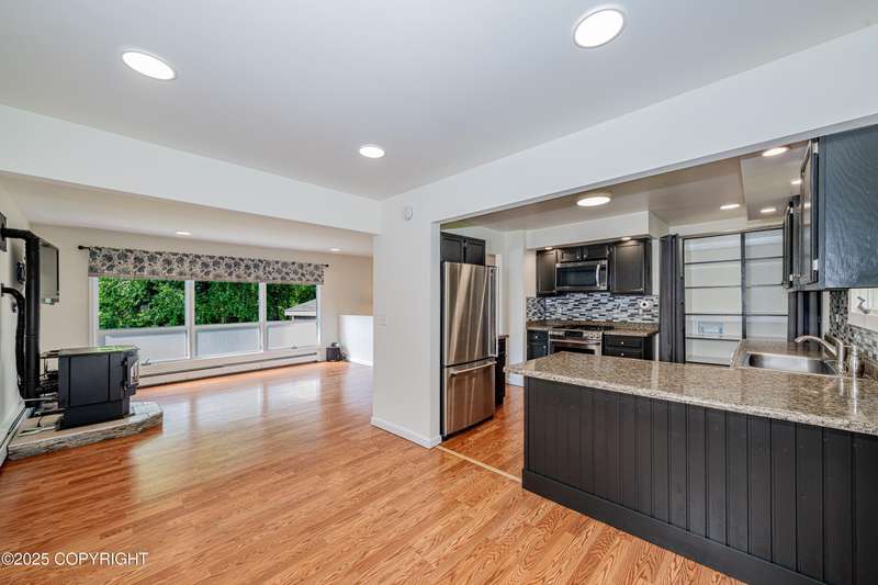 Beautifully Remodeled 4-Bedroom Home in Prime Soldotna Location! This thoughtfully updated home offers comfort, style, and privacy in one of Soldotna's most desirable neighborhoods. Enjoy the peace of no neighbors across the street and a private, fully fenced backyard perfect for relaxing or entertaining. Inside, every detail has been carefully considered from the removal of popcorn ceilings to fresh paint, modern lighting, new flooring, and updated bathrooms. The kitchen and living spaces shine with a clean, contemporary feel, and the roof was replaced in 2019 for added peace of mind. Both the boiler and pellet stove have been recently serviced, ensuring warmth and efficiency through the seasons. Outside, the landscaped yard features beautiful perennials and two varieties of raspberries. Back yard was recently leveled and hydroseeded. This move-in-ready home is easy to show schedule your tour today!