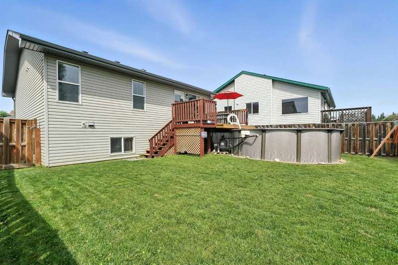 Welcome to a home where family life truly flourishes. Tucked into one of Rocky Mountain House’s most desirable neighborhoods, this 4-bedroom charmer offers the perfect blend of comfort, convenience, and community. From the moment you arrive, you’ll notice how thoughtfully it’s situated for a young family — just steps up the road you’ll find a fantastic playground where the kids can play, and out back you can step right onto Rocky’s expansive walking trail system for evening bike rides, stroller walks, or sunset jogs. The backyard is wonderfully generous in size — the kind of yard where you can host summer barbecues, set up a trampoline or garden boxes, cool off in the pool or toss a ball. Inside, the home flows beautifully with bright, welcoming spaces and four bedrooms that give everyone a place to call their own. Bringing attention to the primary bedroom, it is sure to impress with a walk in closet and large ensuite complete with your happy place to wind down- a jetted soaker tub. If you’ve been dreaming of a home where your family can grow, explore, and create lasting memories in a friendly, active neighborhood, this is the one you’ve been waiting for.