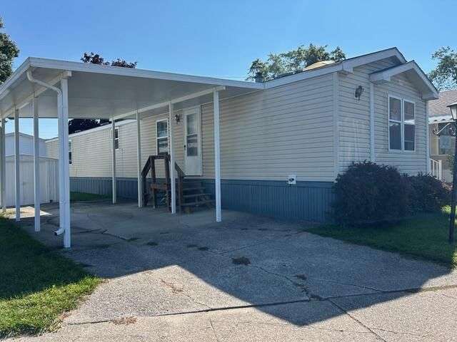 Welcome Home! Join this quiet community for 55 and over in the Glen-Aire park. This home has a great open floor plan entering the living room, eat-in dining area with large open kitchen. In the front of the home, youll find a guest bedroom and guest bathroom. Through the living room and kitchen youll find an expansive open primary suite with large tub and private bathroom with walk-in shower. Outside, a carport perfect for avoiding spring rain and winter snow. There is a convenient located shed for lawn tools and garden storage! New a/c 2025, newer water heater, roof and furnace. Newly insulated last year and new white skirting being added making the exterior updated and modern. This home is being sold with all appliances listed. Possession at closing. Listing agent is local and ready to meet you at your convenience. Call for your private showing today! Buyers agents see Agent Only Remarks for access code.