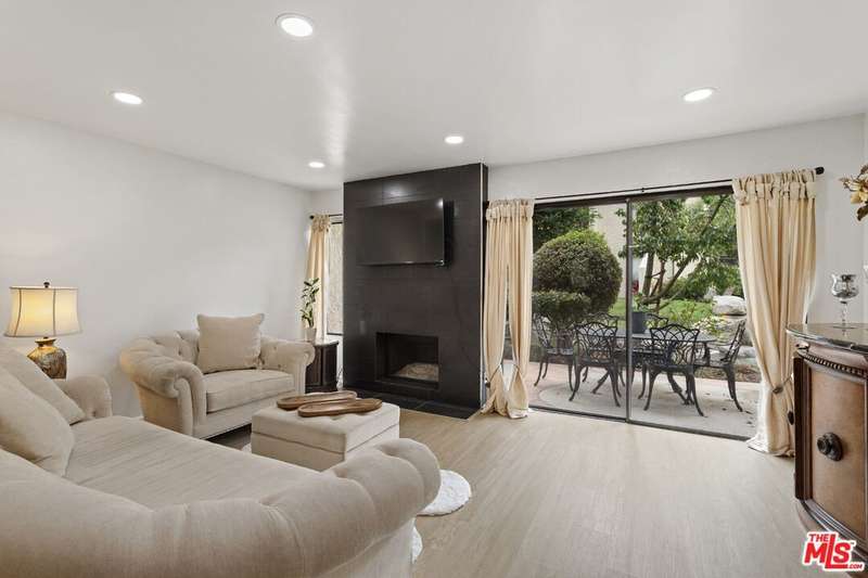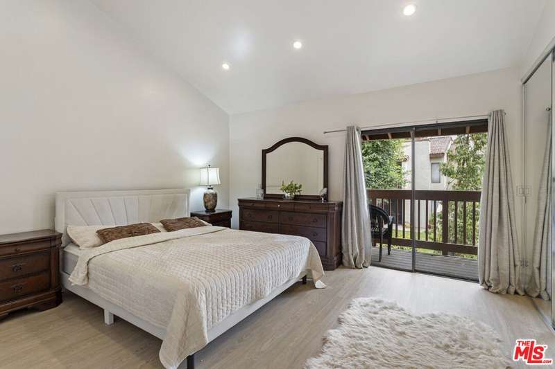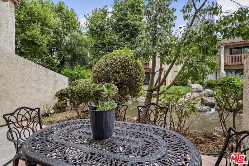 Move-in-ready townhome in the highly desirable Warner Center of Woodland Hills, where nature, comfort, and convenience meet. The updated kitchen with stainless steel appliances opens directly to the living room, which features a cozy fireplace and sliding doors to a private patio, the perfect spot to enjoy peaceful moments with the gentle sound of flowing water and nature. A guest bathroom is located downstairs for everyday convenience. Upstairs you'll find two bedrooms and a full bathroom with a shower, the primary suite offer its own separate vanity with sink. Vaulted ceilings give the home an open, airy feel, and a private balcony off the primary suite adds fresh light and breezes. Additional features include in-unit stackable laundry, central heat and air, and beautiful flooring throughout. Parking is a breeze with one space in the shared garage, an assigned spot located right in front of the unit, and plenty of guest parking nearby. This community offers true resort-style living with ponds, a pool, jacuzzi, sauna, and two tennis courts.