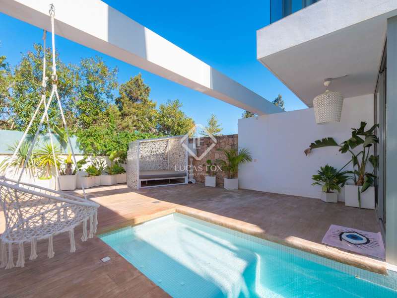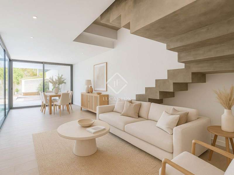 This stunning 3-bedroom, semi-detached house in Cala de Bou, Ibiza, offers a perfect blend of modern design, unique architectural features, and comfortable living space. The property is beautifully appointed with spacious rooms, sleek finishes, and large windows that allow natural light to flood the interiors. The highlight of the home is its spacious, private garden, ideal for outdoor entertaining, and a stunning private pool that offers the perfect setting for relaxation. There are lovely sea views from the property, adding an extra touch of coastal charm to this luxurious home. Situated in a secure, gated development with 24-hour security, this home provides peace of mind, privacy, and safety, making it an ideal choice for families. The layout is well-suited for family living, with ample space for everyone to enjoy. The quiet and private location ensures a serene environment, while still being close to the vibrant offerings of Ibiza. This home also makes for an excellent holiday retreat, providing the perfect setting for a relaxing getaway, with all the comforts of modern living. For families with children, the property boasts easy access to all the private schools on the island, making it an incredibly convenient choice for those seeking both luxury and practicality. Whether looking for a tranquil retreat, a modern family home, or an ideal holiday home, this property delivers the best of both worlds. With its contemporary design, sea views, private pool, and secure setting, this home offers the ultimate Ibiza lifestyle. It is the perfect place for families or holidaymakers looking for a private, safe, and luxurious home with all the amenities needed for comfortable living. Contact us today for further information. Some of the images shown correspond to an illustrative render created with artificial intelligence, for visual representation purposes