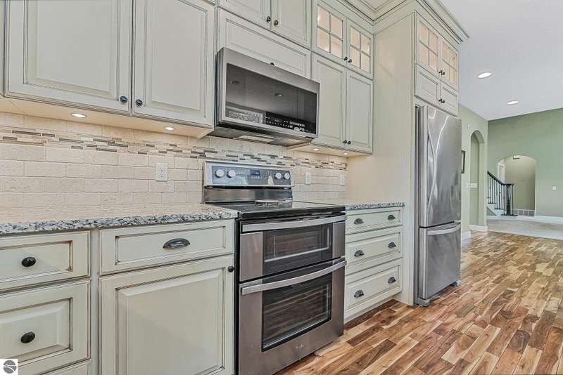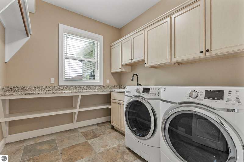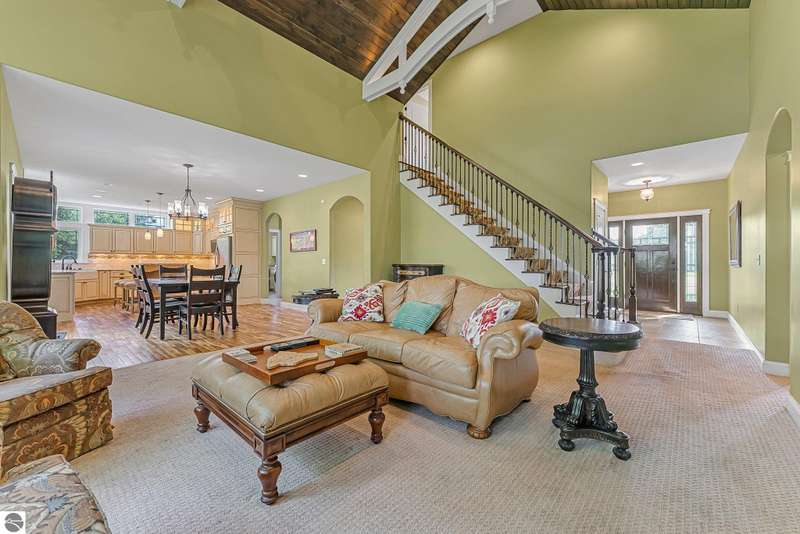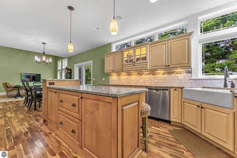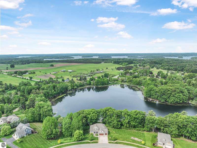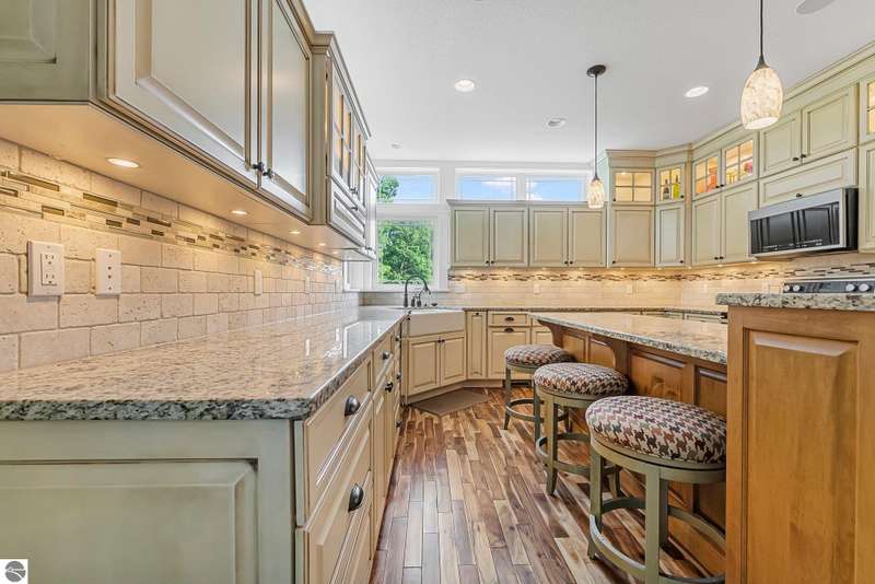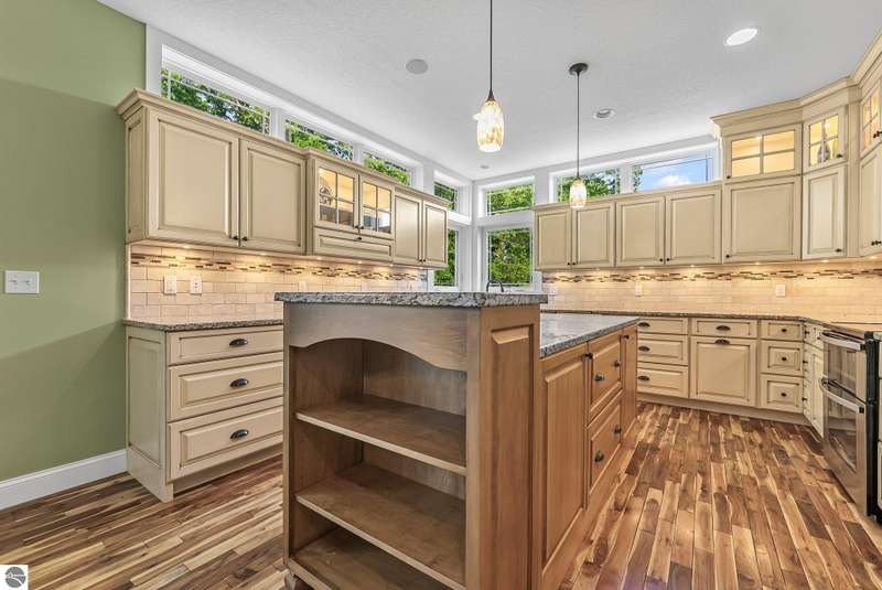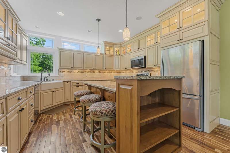 Experience luxury lakefront living in this stunning 5-bedroom, 4.5-bath home on Huellmantel Lake, featuring vaulted ceilings, breathtaking water views, and an open-concept living room. The gourmet kitchen offers top-of-the-line Wooden Hammer cabinetry, granite countertops, and a spacious island, along with an elegant foyer, mudroom, and main floor laundry. Enjoy two private office spaces, a main-level en suite, and a walk-out lower level with a large family room and wet bar. Complete with a 3-car garage and private lake frontage, this home combines comfort, style, and an unbeatable setting.