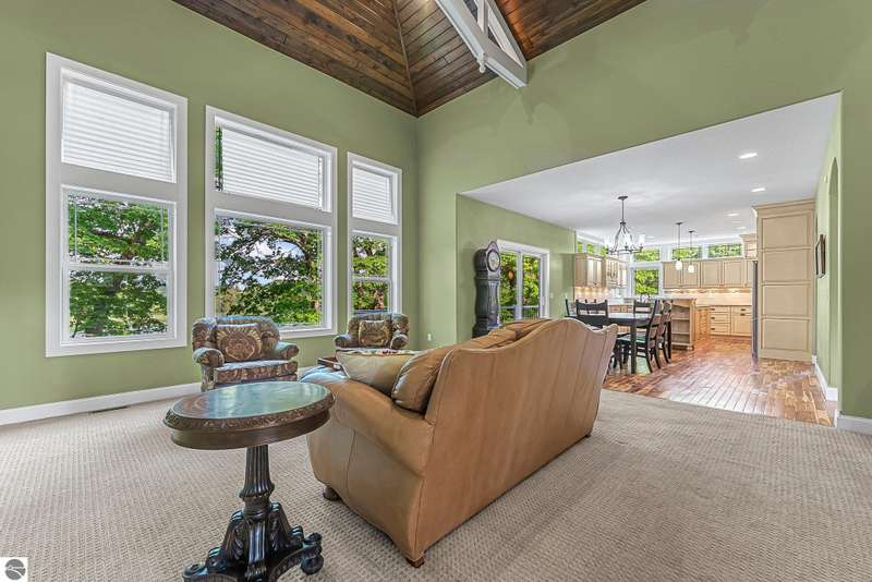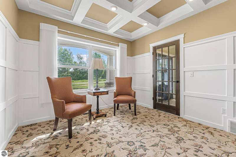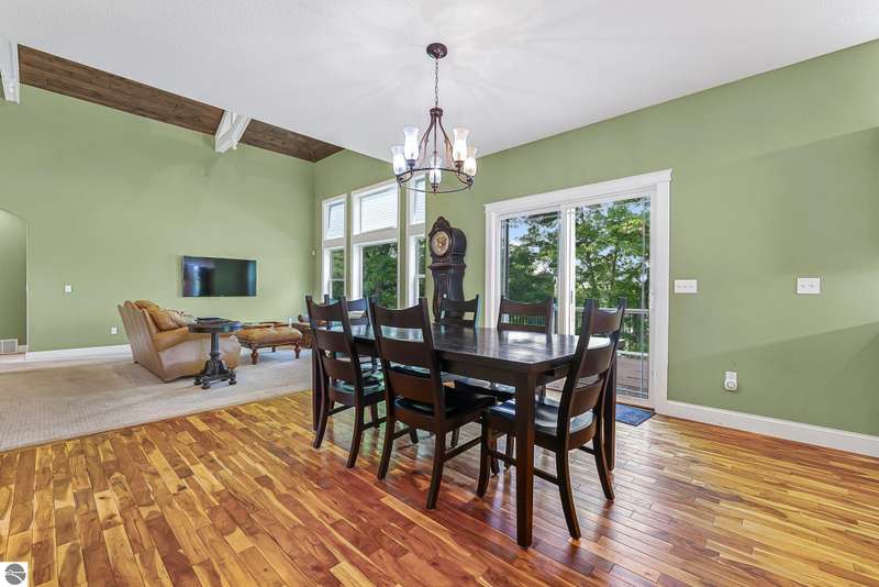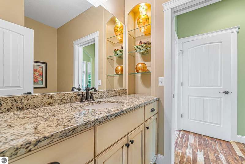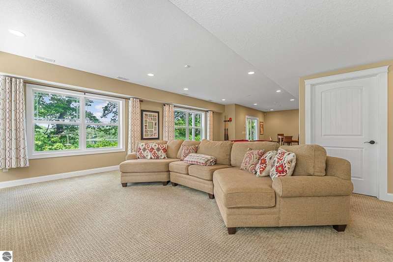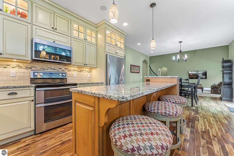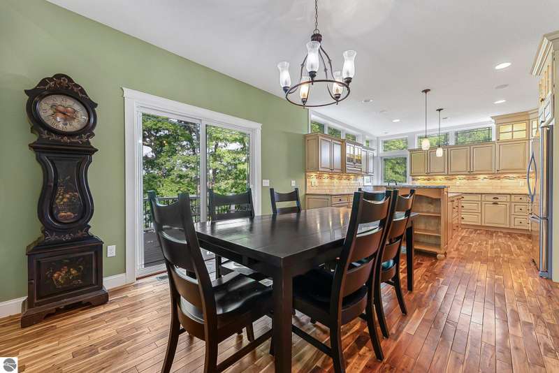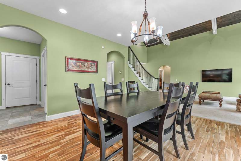 Experience luxury lakefront living in this stunning 5-bedroom, 4.5-bath home on Huellmantel Lake, featuring vaulted ceilings, breathtaking water views, and an open-concept living room. The gourmet kitchen offers top-of-the-line Wooden Hammer cabinetry, granite countertops, and a spacious island, along with an elegant foyer, mudroom, and main floor laundry. Enjoy two private office spaces, a main-level en suite, and a walk-out lower level with a large family room and wet bar. Complete with a 3-car garage and private lake frontage, this home combines comfort, style, and an unbeatable setting.