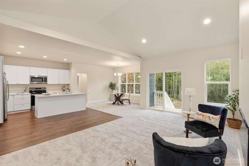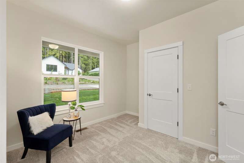 The best of single floor living in Port Ludlow's North Bay community. This brand new home is move-in ready! A fabulous floor plan with loads of flexibility for living, working and entertaining. 3 bedrooms, plus a den/office in 1,703 square feet. Open concept with vaulted ceilings in the living room and charming electric fireplace. This home lives large! The primary suite is tucked privately on one side of the home with the other two bedrooms and full bath on the other side of the great room. All appliances included, quartz countertops, heat pump, & luxury vinyl plank floors in some areas. Large, sunny, yard you can fence. Low monthly dues include membership in the North Bay Club: fitness center, pools, tennis, pickle ball & more!