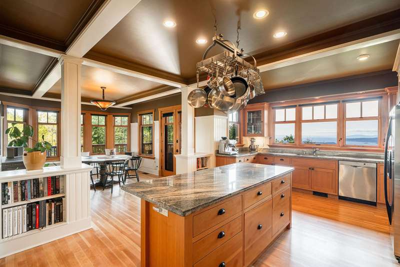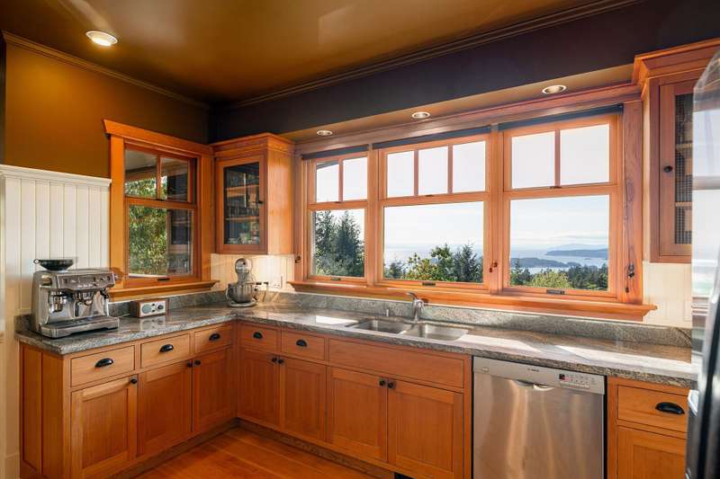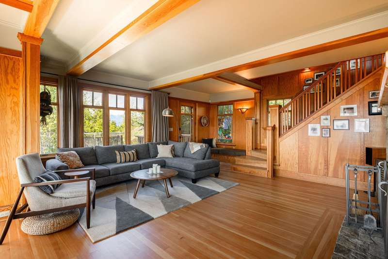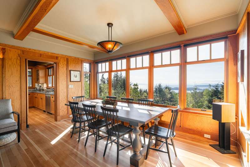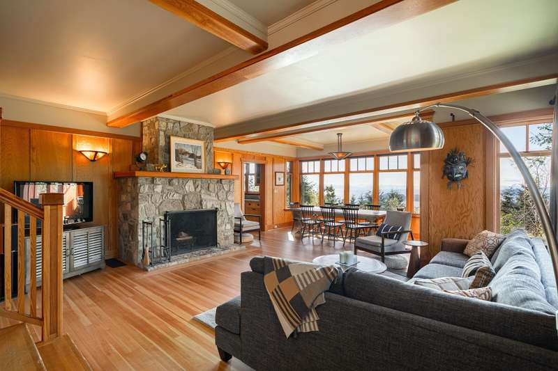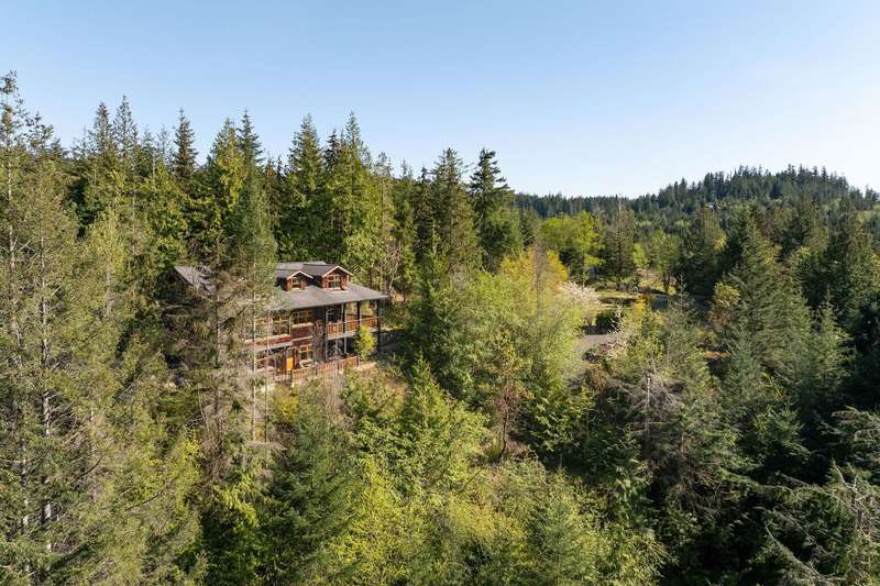 One of the most revered acreage properties on Bowen Island, priced well below assessed value. This private 5-acre elegant, rural estate features a stunning Craftsman home perched high with coastal ocean & island views from every room. The 4 luxurious bedrooms all have ensuites, and 2 bedrooms have their own entries - a perfect setup for a B&B. The kitchen is for those who entertain, with a 6-burner cooktop, double wall ovens, and a separate prep area. Craftsman homes are known for comfort, and this home is no exception with its wood-burning fireplace, warm wood paneling, coffered ceilings, and fir flooring. Outside is an established garden with apple, pear, Asian pear, quince, & cherry, plus many flowering trees & shrubs. It is an exceptional combination of nature, privacy, & luxury.