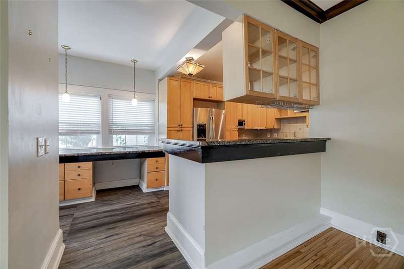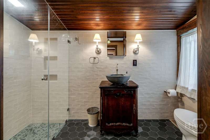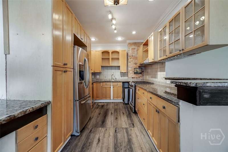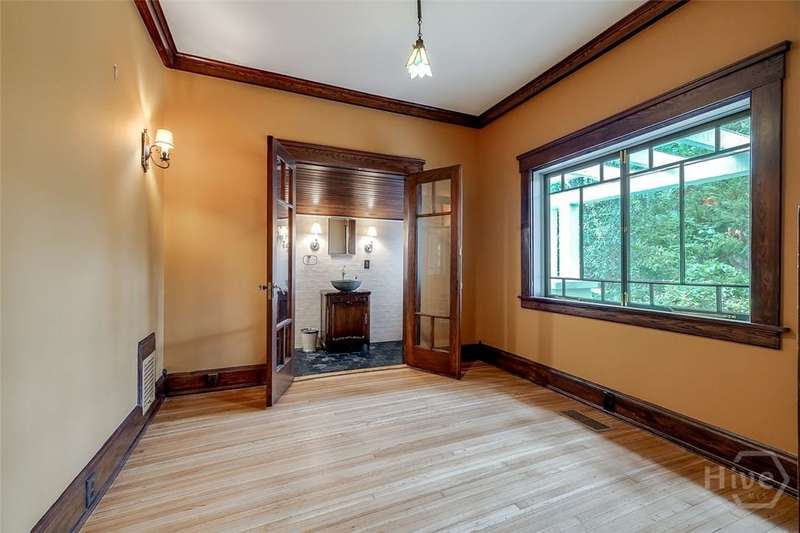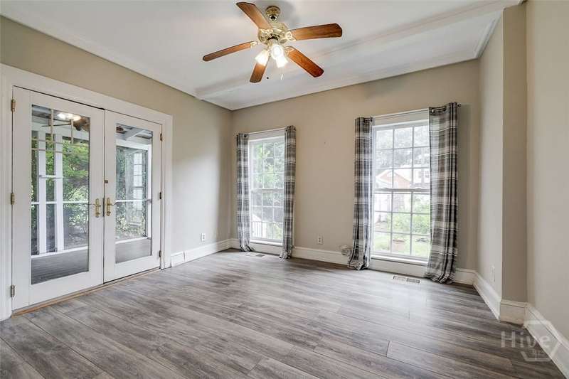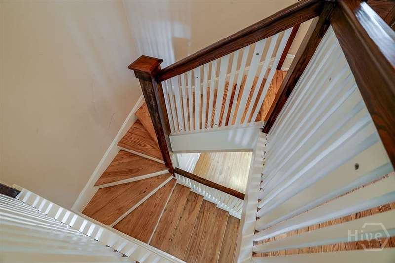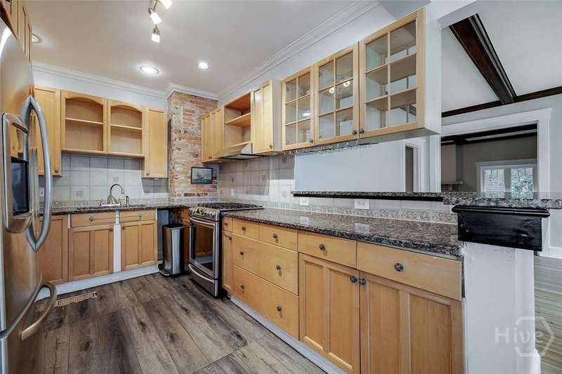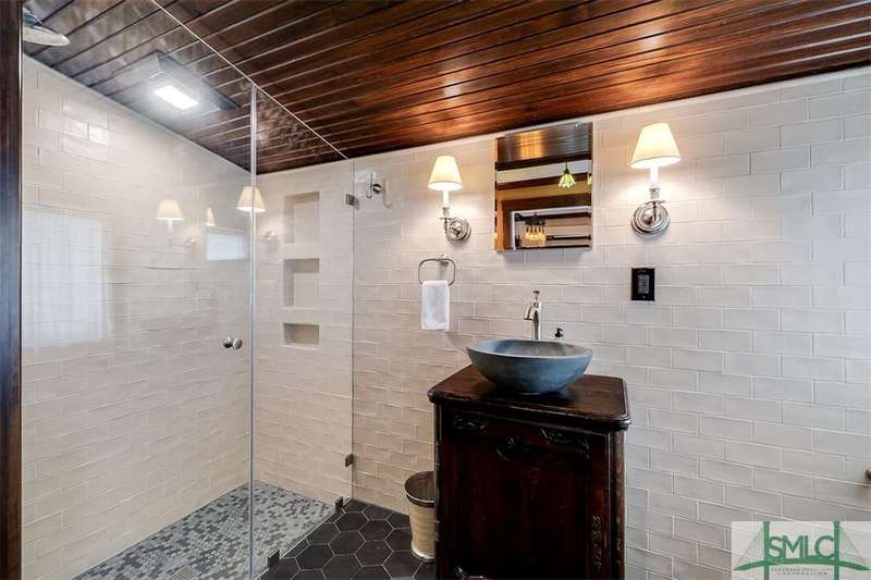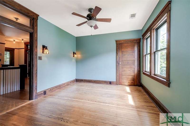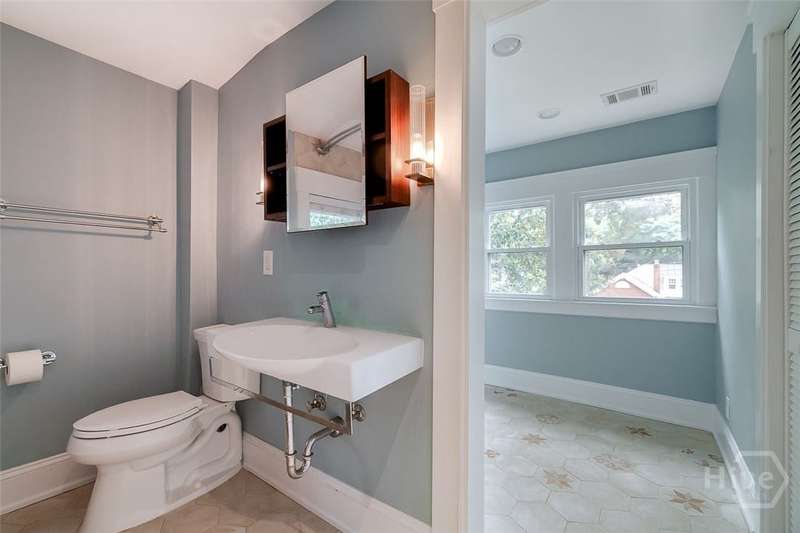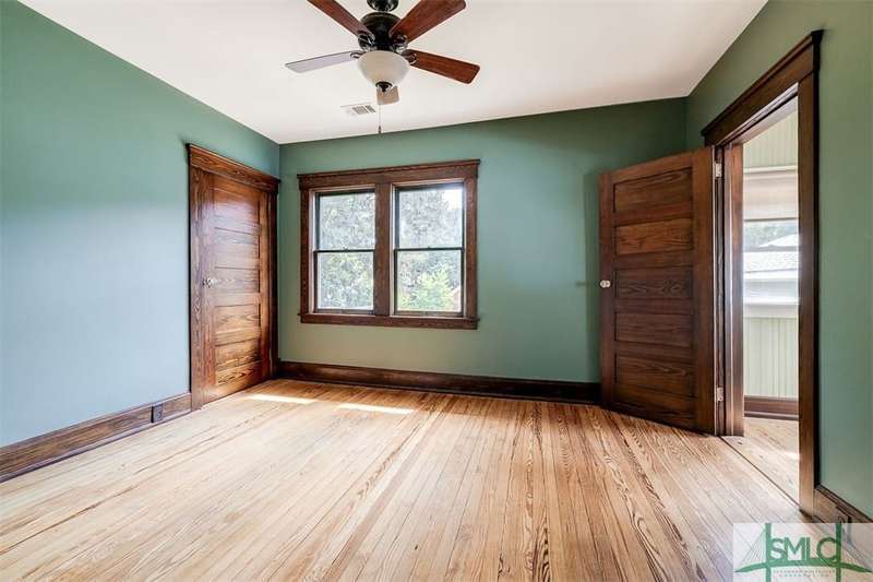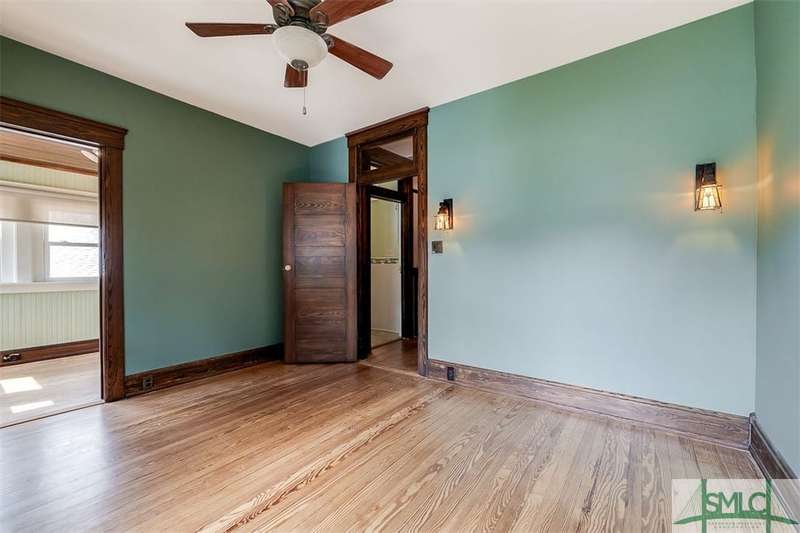 A block from Guckenheimer Park on tree-lined 45th St. this true Craftsman gem stands amidst some of the best Historic Ardsley Park homes. Featuring refinished Heart Pine woodwork, restored plaster, updated electrical & refinished Oak floors. Antique Arts & Crafts light fixtures grace the home with Quezal, Steuben & slag glass shades. A massive brick fireplace, ceiling beams & built-in bookshelves in the living room create a warm, inviting atmosphere. Two additional sitting rooms offer flexibility, and there is a new full bath with shower on the main. The kitchen has Maple cabinets & granite counters. The upstairs primary bedroom has a fireplace, an ensuite bath with a tub/shower combo, a dressing room & two closets. Two additional bedrooms feature large closets; one has a trunk room ideal for office use. The second bath is fully tiled with a tub & separate shower. A generous front porch & walk-out balcony features a new built-in copper gutter, historic railing & copper capped pergola.