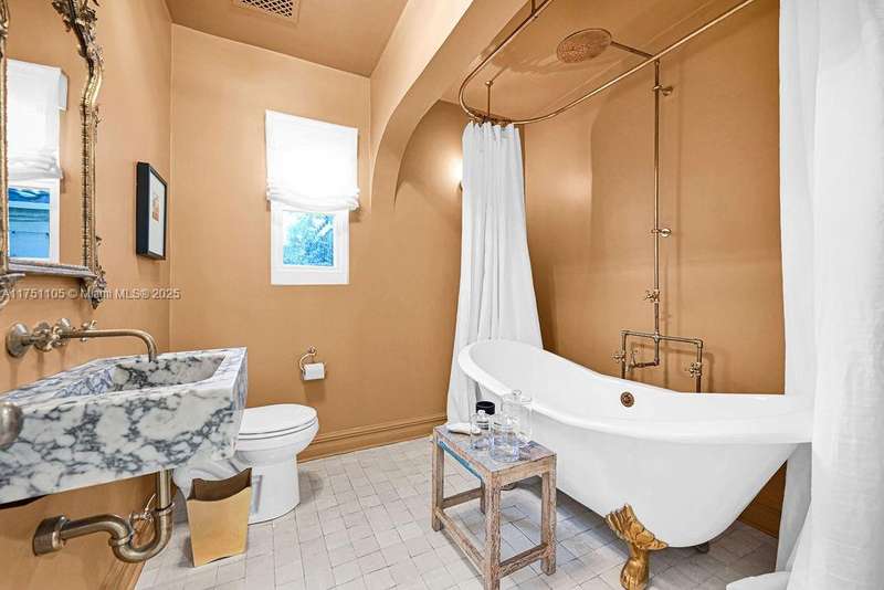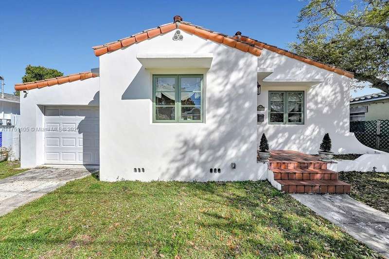 Exceptionally renovated home with luxe upgrades and new ArteZanos Hybrid Roof System! Located in a coveted area, this 2BR/1BA residence radiates an upscale aesthetic with a gorgeous stucco exterior, curved interior archways, hardwood flooring, decorative fireplace, custom baseboards, elegant dining room, chic living room, and a gourmet kitchen featuring marble floors, premium appliances, granite countertops, and custom cabinetry. Both bedrooms comfortably accommodate, while the full bathroom has a Clawfoot tub, Zellige tile floors, Violetta marble tile sink, and raw brass fixtures. Other features: 1-car garage, new W/D, new electric, new A/C and duct work, new plumbing (PVC/copper), new impact windows/doors, and a new 50-year solar-thermal roof. All work was done with required permits.