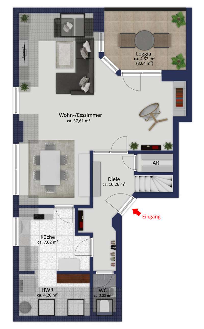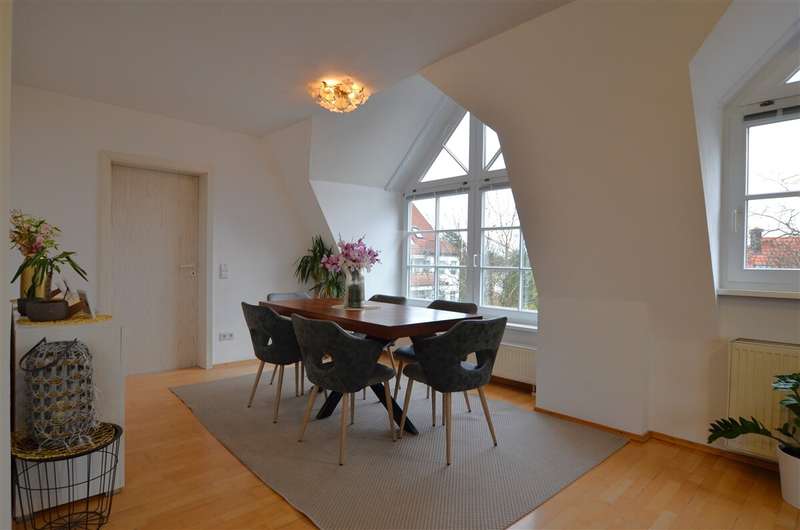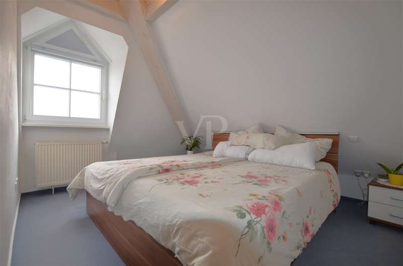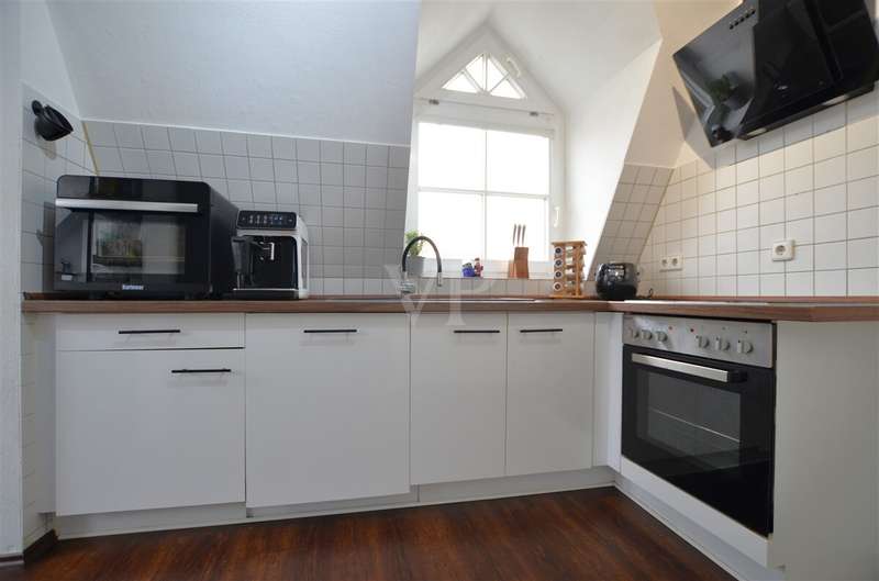 This bright maisonette apartment on the 2nd floor with a living space of approx. 97 m² is located in this well-kept residential complex built in 1994. The attractive room layout and quiet location make this property attractive for both couples and small families. The apartment extends over two floors and offers a total of three versatile rooms. On the lower floor is the spacious living/dining area, which is impressively bright. From there, you can access the south-facing balcony. This invites you to spend relaxing hours outdoors. A fitted kitchen is already available and is also rented out. A brightly tiled guest WC is also available for daily convenience and for visitors. A small storage room under the stairs offers additional storage space. Upstairs, the bedroom impresses with an adjoining walk-in dressing room with ample storage space. Directly next to it is the fully equipped, brightly tiled bathroom, which has both a shower and a bathtub. A further room, which can be used as a children's or guest room, completes the upper floor. The converted attic offers additional space, which is ideal for use as an office. The apartment is heated by an energy-efficient gas heating system, which was replaced in 2023. Electricity and gas are billed directly by the tenant to the energy supplier. An underground parking space for an additional €50/month and a separate cellar room round off the offer. The location combines quiet living with very good accessibility to all important facilities for daily needs, including shopping facilities, public transport and various leisure activities.