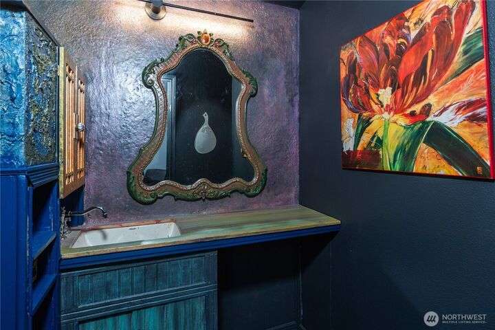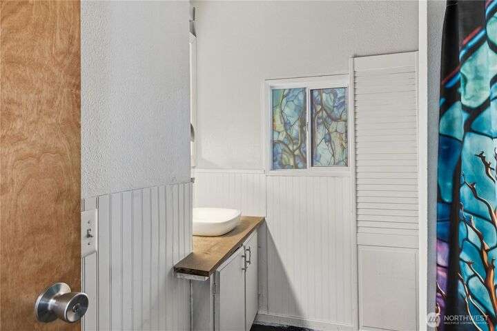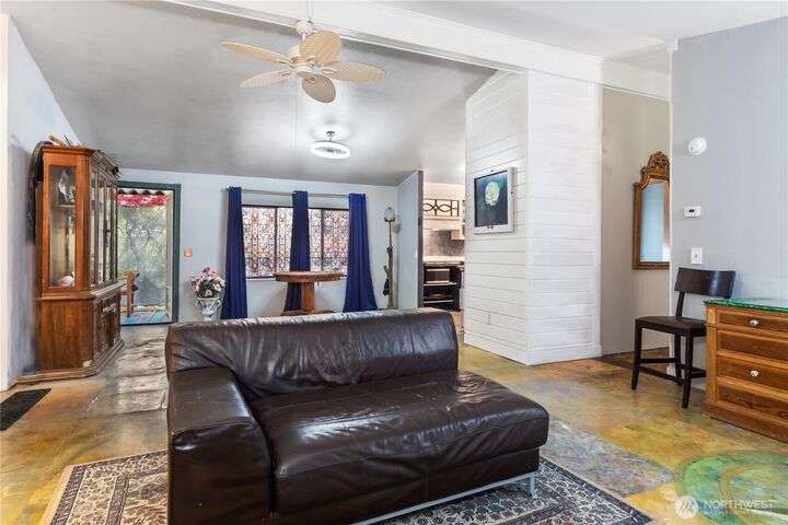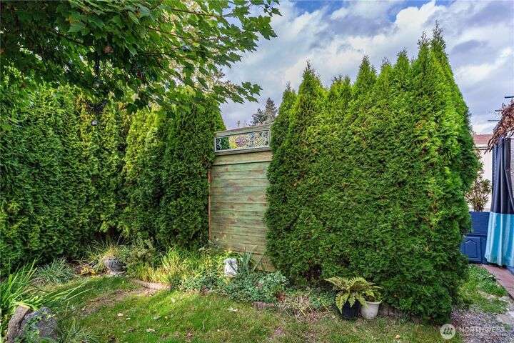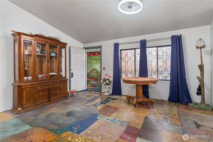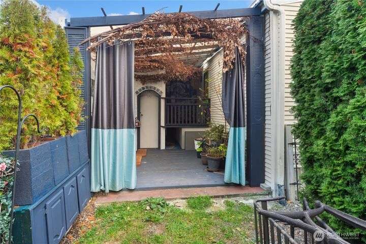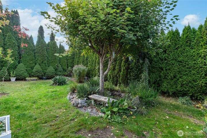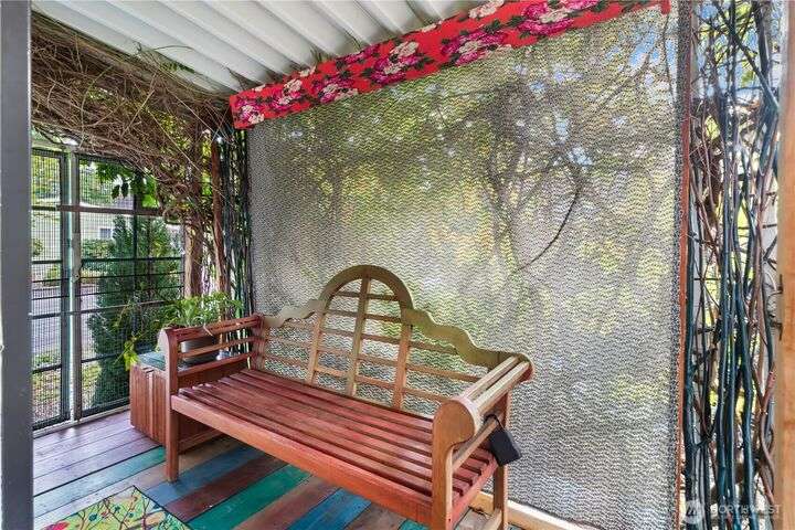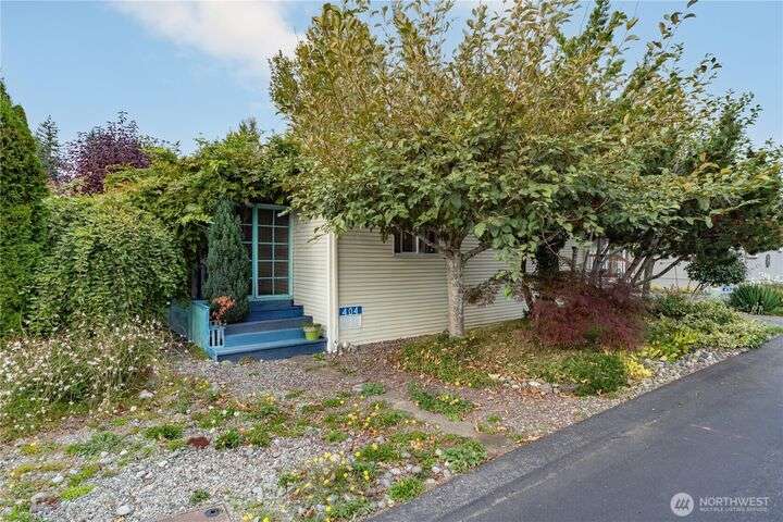 Enjoy senior living in an artist-inspired home featuring beautiful hand-painted floors, repurposed cabinets, and handmade opening sunscreens. The kitchen includes a breakfast nook overlooking yard, spacious dining/living area and a split layout; the primary bedroom has a walk-in closet and custom bath on one end and the other 2 bedrooms & bath on the other. Very private outdoor spaces: a wisteria-covered front porch, a cozy covered deck with curtains, and a pesticide free yard with mature trees, flowers, wild blackberries, apple tree, and pond-side seating. Silverdale Estates is a 55+ community with a clubhouse, indoor swimming pool, hot tub, sauna & more. Close to shopping, restaurants & medical facilities.