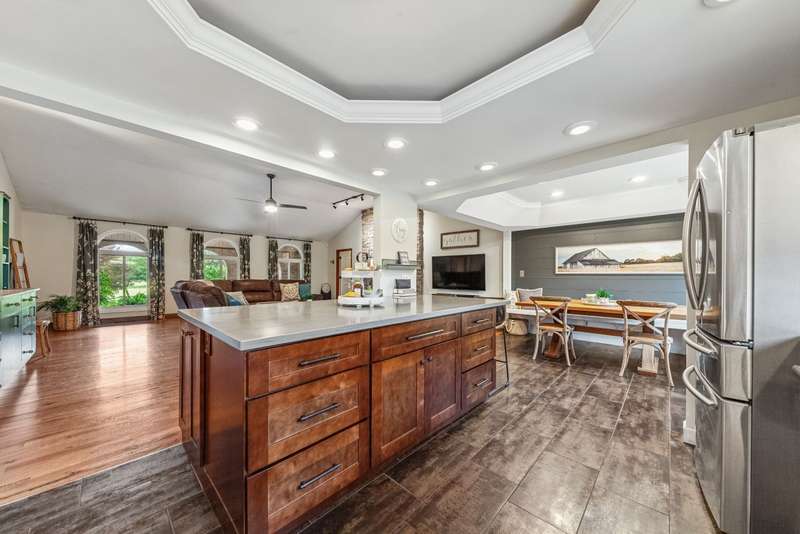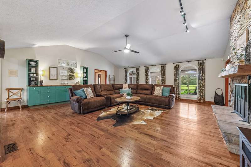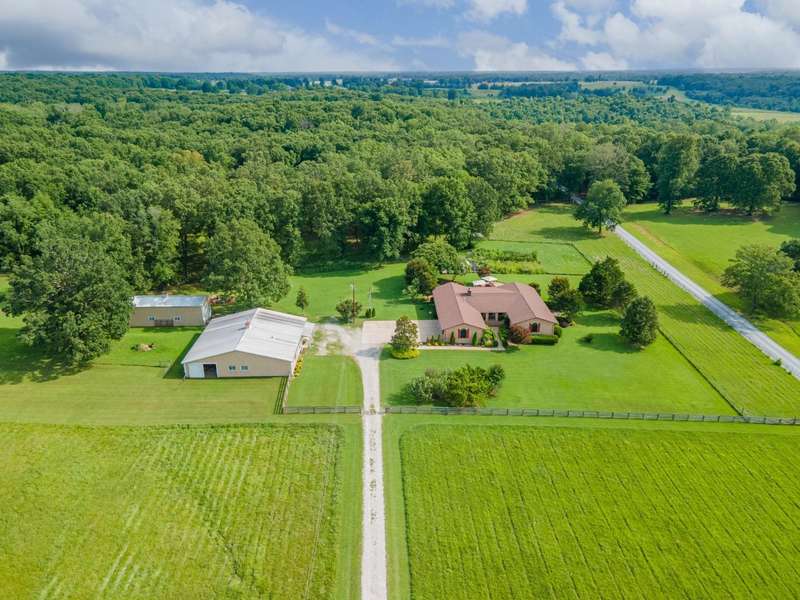 Searching for that Perfect HOMESTEAD or HOBBY FARM w/In-Law Suite & Separate AirBNB...Look No Further!! This 4bdrm/4bath (4622sqft) BRICK Ranch sits on 39 Acres of Fenced Pasture w/Stocked Pond & Forestland. The Multi Generational Options that this Property Offers is Amazing! Imagine a Home where your aging Parents & your Growing Family had Multiple Choices and Their Own Space! FEATURES & UPDATES...~Hrwd, LVP & Tile Flooring ~Large Open Living Rm w/Vaulted Ceiling & Stone Fireplace (wood) ~Kitchen Reno (2017)...Cabinets, Counters, Floors, Island, Banquette Seating ~Attached In-Law Suite Reno (2016) ~Primary Suite & Bath Reno (2020) ~Inviting Sunroom w/big Custom Windows ~Basement Reno (2021)...Bdrm, Office & Full Bath plus backup Wood Burning Furnace ~3-Car Attached Garage ~New Windows (2020) ~Water Heater (2011) ~HVAC (2011 & 2024) ~2bdrm/1.5bath Barndo AirBNB Added (2018) which is a Finished Portion of the Barn that also offers a 58x18 Workshop w/built-in Workbench and a Variable Speed Ventilation System. Plus a large extended overhang w/5 individual stalls for Livestock or Storage ~Home & Barn Septic Pumped (2024) ~51x16x14 Insulated RV Barn great for working on Equipment & Storage ~Well Water, but City Water is run to the Home too (Well head includes a manual hand pump) ~Large Whole Property Natural Gas Generator ~Greenbelt Tax Program ~Walkout Basement w/Side Patio & Hot Tub Hookup ~Raised Back Patio w/Access to Main Living Space & In-Law Suite ~Lots of Beautiful Landscaping including a 3500 gal KOI Pond with 2 Waterfalls & built-in filtration ~Fire Pit Area ~Large Chicken Coop w/Tack Rm, Electricity & Automatic Door ~Fruit Trees ~Split Rail Fencing in Front w/Cross Fencing & Multiple Access Gates ~Solar Powered Gates in Driveway ~Trails through the back 20 acres for Recreation or Hunting. *DON'T FORGET TO CLICK ON THE ATTACHED VIRTUAL TOUR BELOW....IT'S AMAZING*