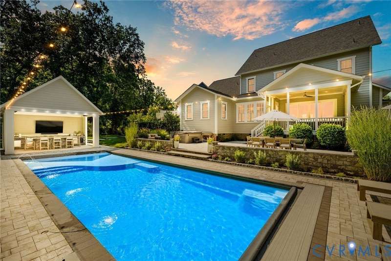 Opportunity knocks! This Hallsley home was custom built with all the bells & whistles! Looks brand new! Very nicely appointed indoor living & spectacular outdoor entertaining, complete with an in-ground pool, screened-in porch, 2-level paver patio, outdoor kitchen with built-in grill, & hot tub. A true private outdoor oasis! The third-floor media room offers the ultimate movie night experience with theater seating, recessed lighting, built-in speakers & double-door closet, also perfect for a playroom, gym, or guest space. The 16x40 in-ground pool has water features and is heated & cooled. A 3 car garage and enlarged driveway! Still time to move in for an end of the summer gathering!